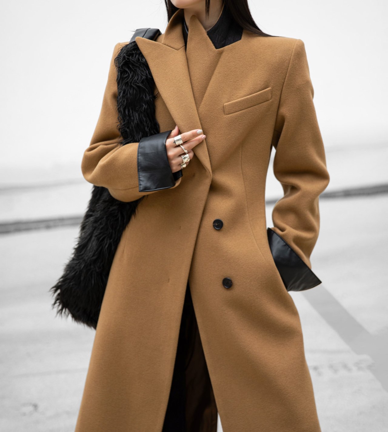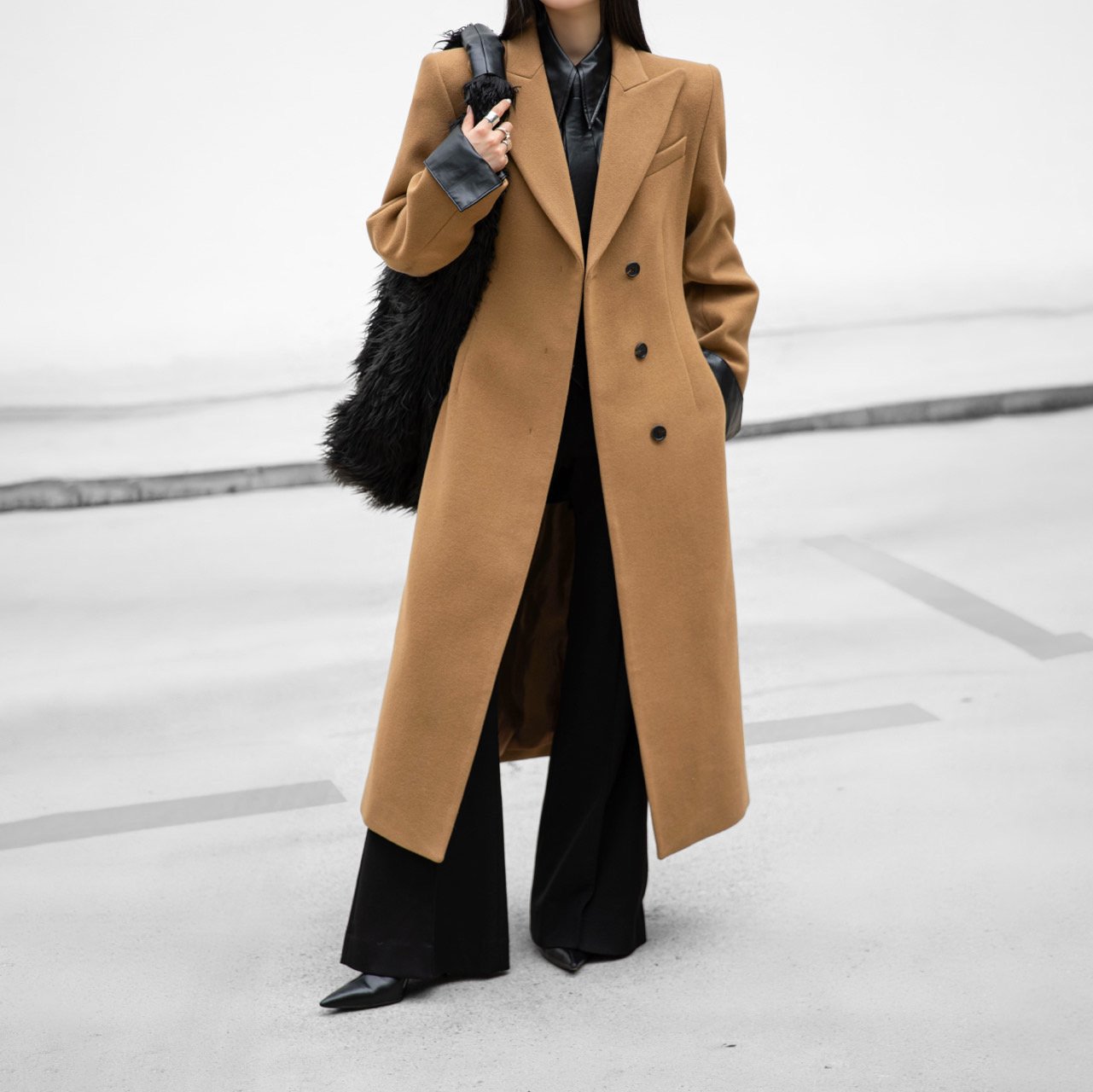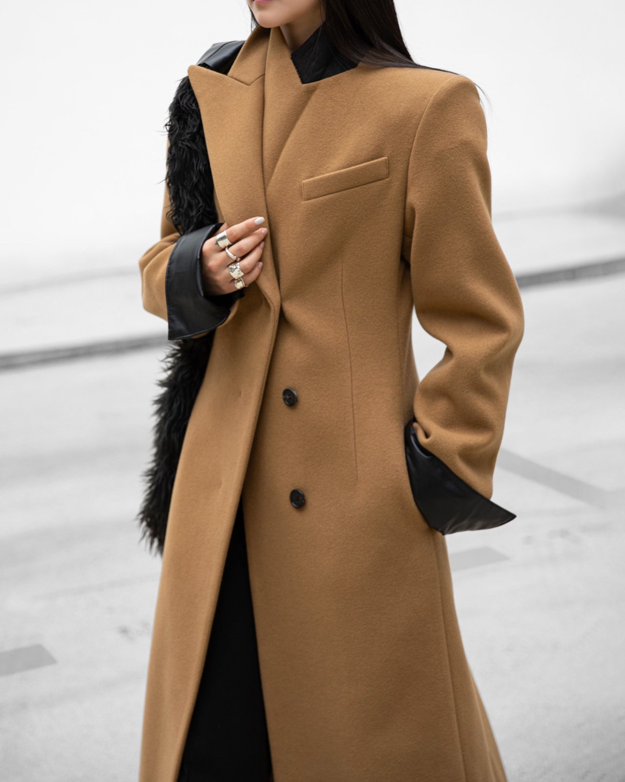 (PAPER MOON) LUX PEAKED LAPEL HIDDEN THREE BUTTON MAXI COAT_CAMEL BEIGE