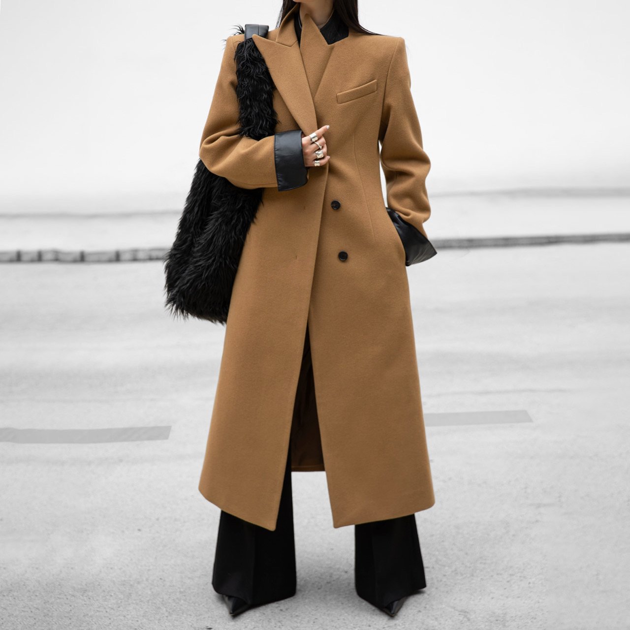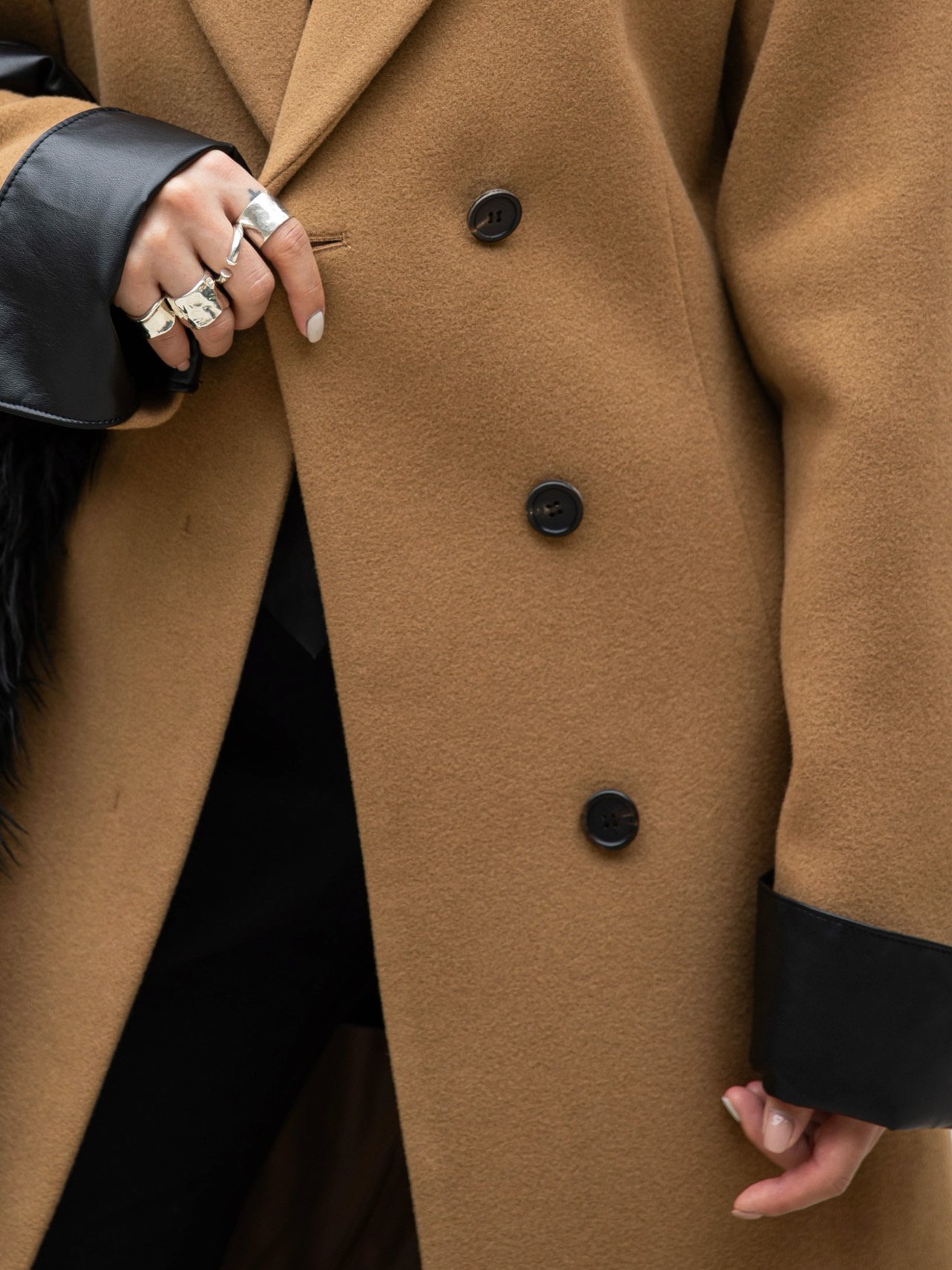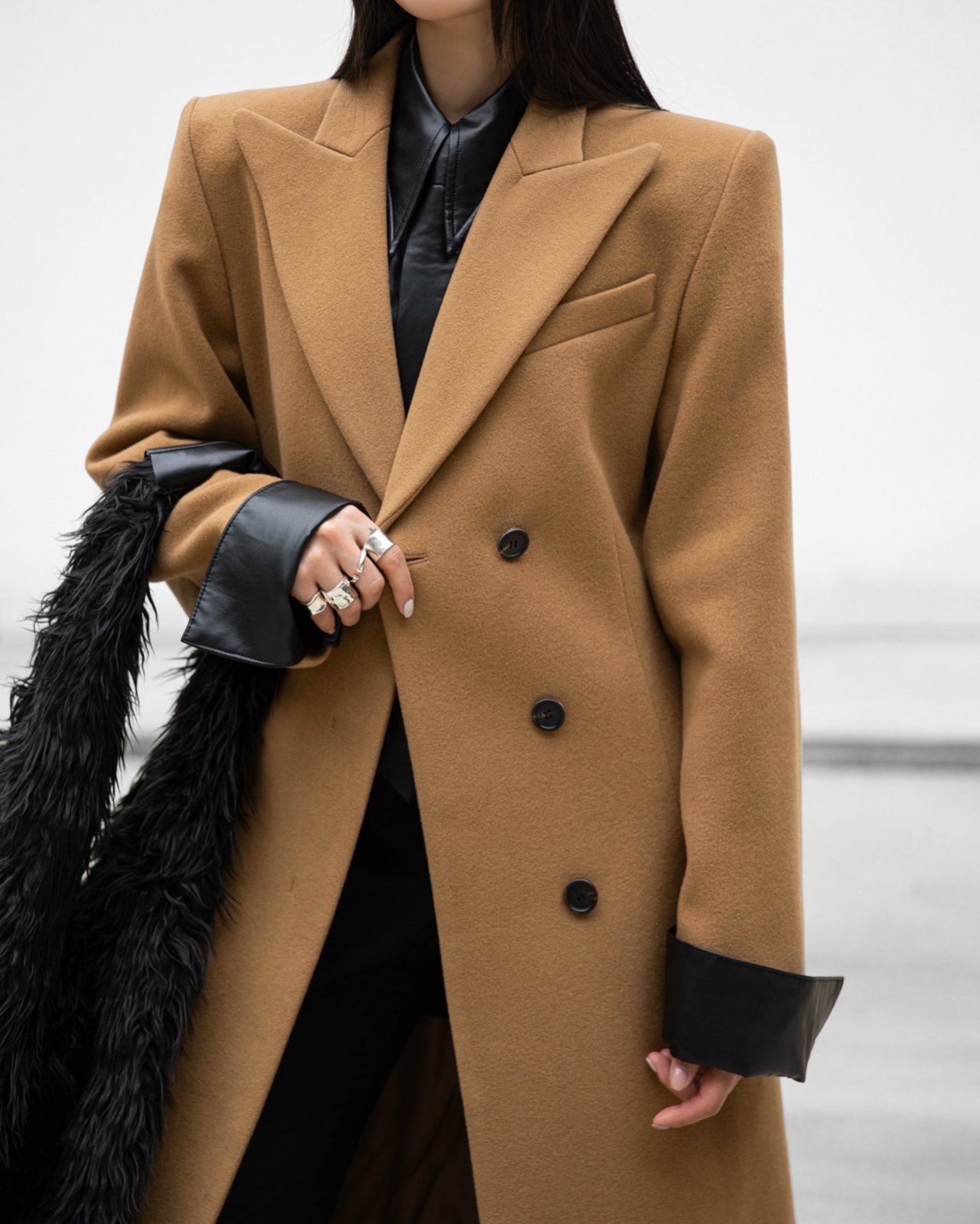 (PAPER MOON) LUX PEAKED LAPEL HIDDEN THREE BUTTON MAXI COAT_CAMEL BEIGE