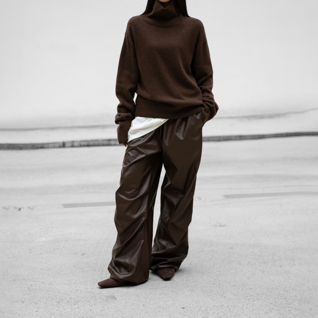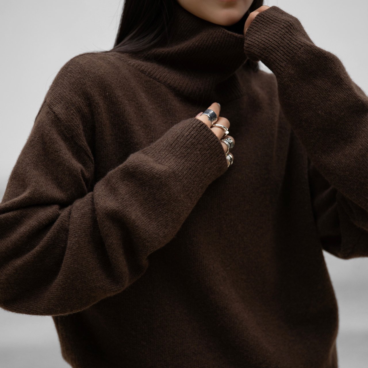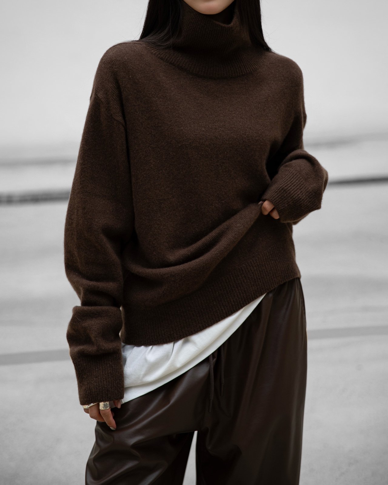 (PAPER MOON) CLASSIC CASHMERE BLENDED WOOL HIGH NECK KNIT TOP_BROWN