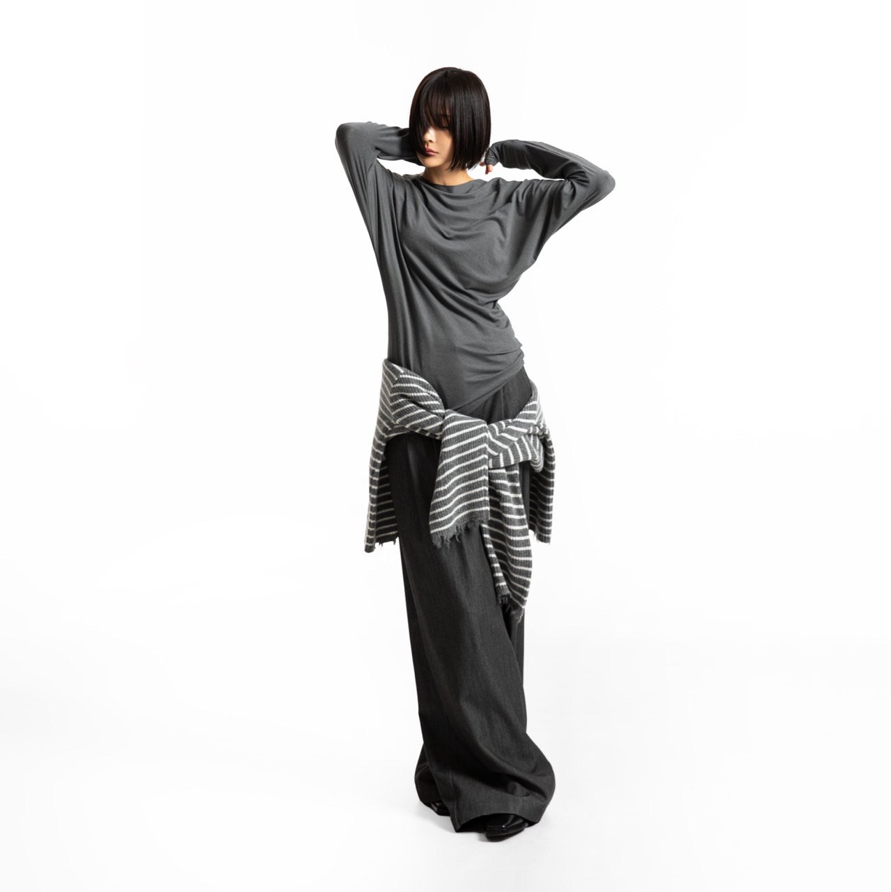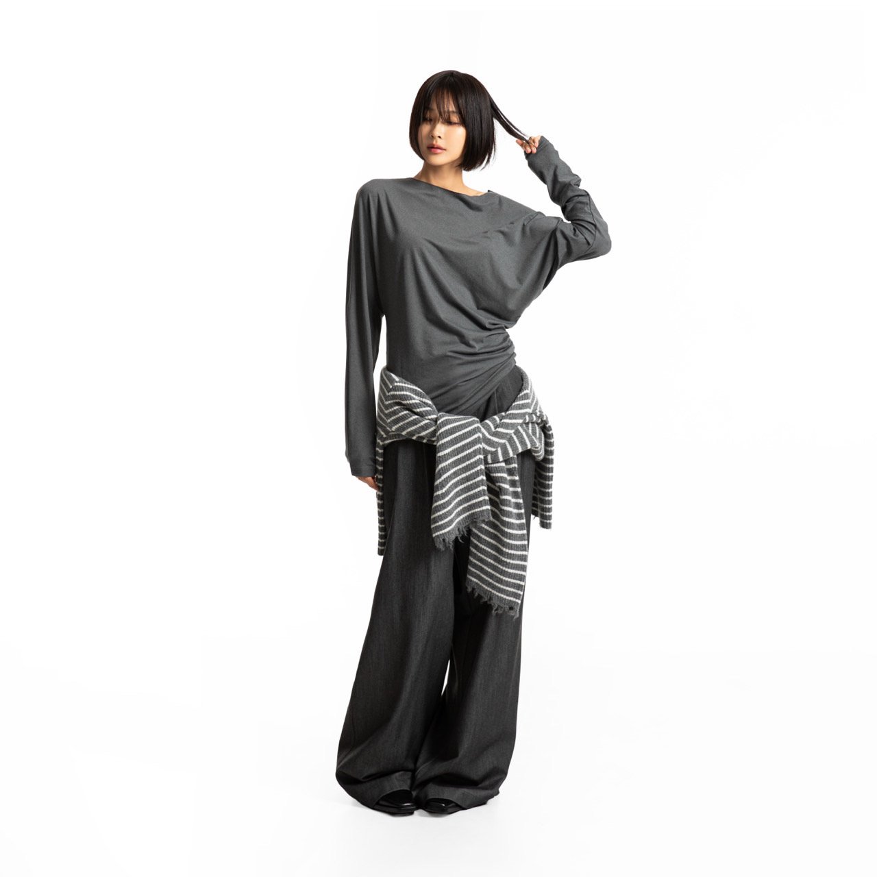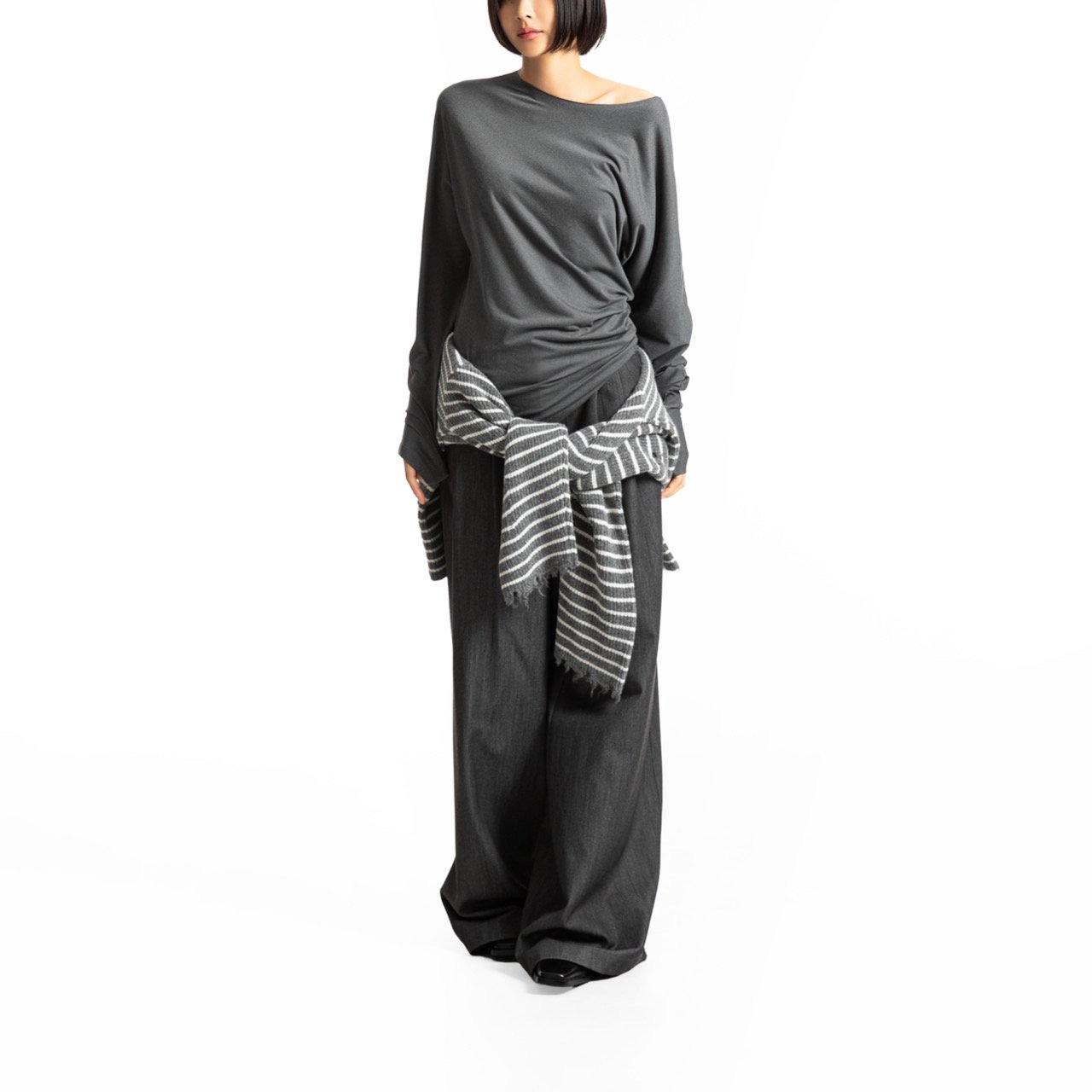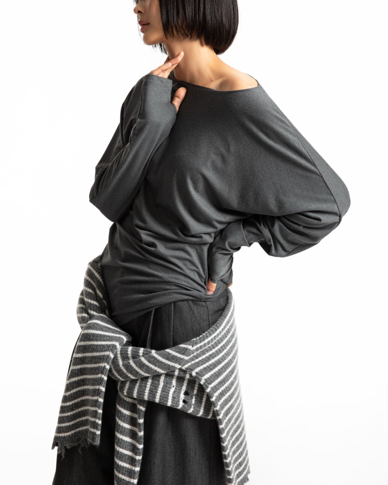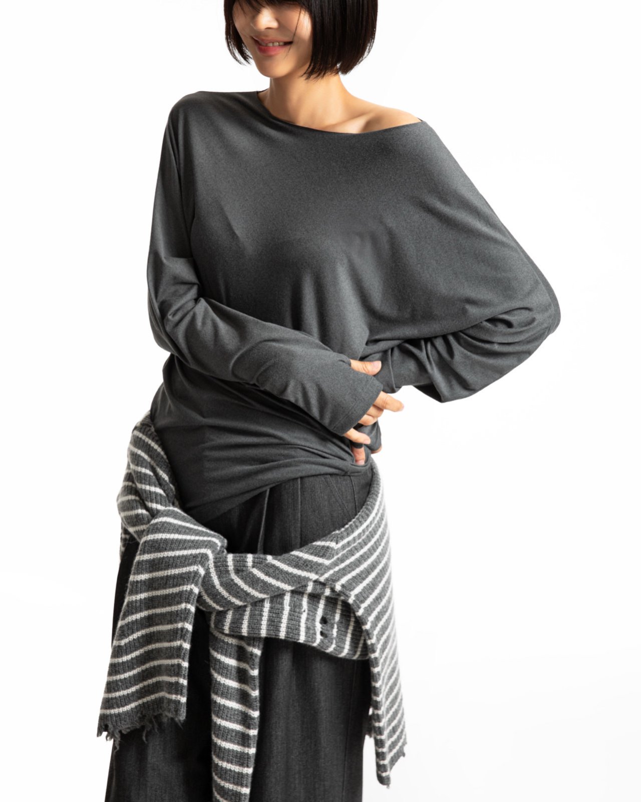 (PAPER MOON) UNBALANCED JERSEY FINGER HALL TEE_CHARCOAL