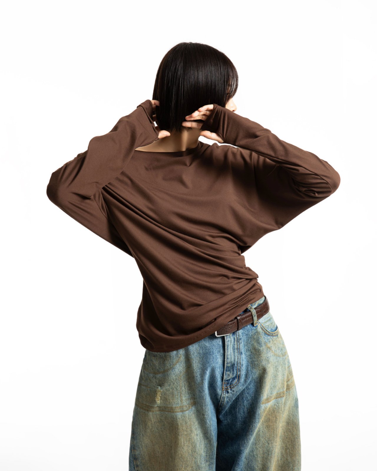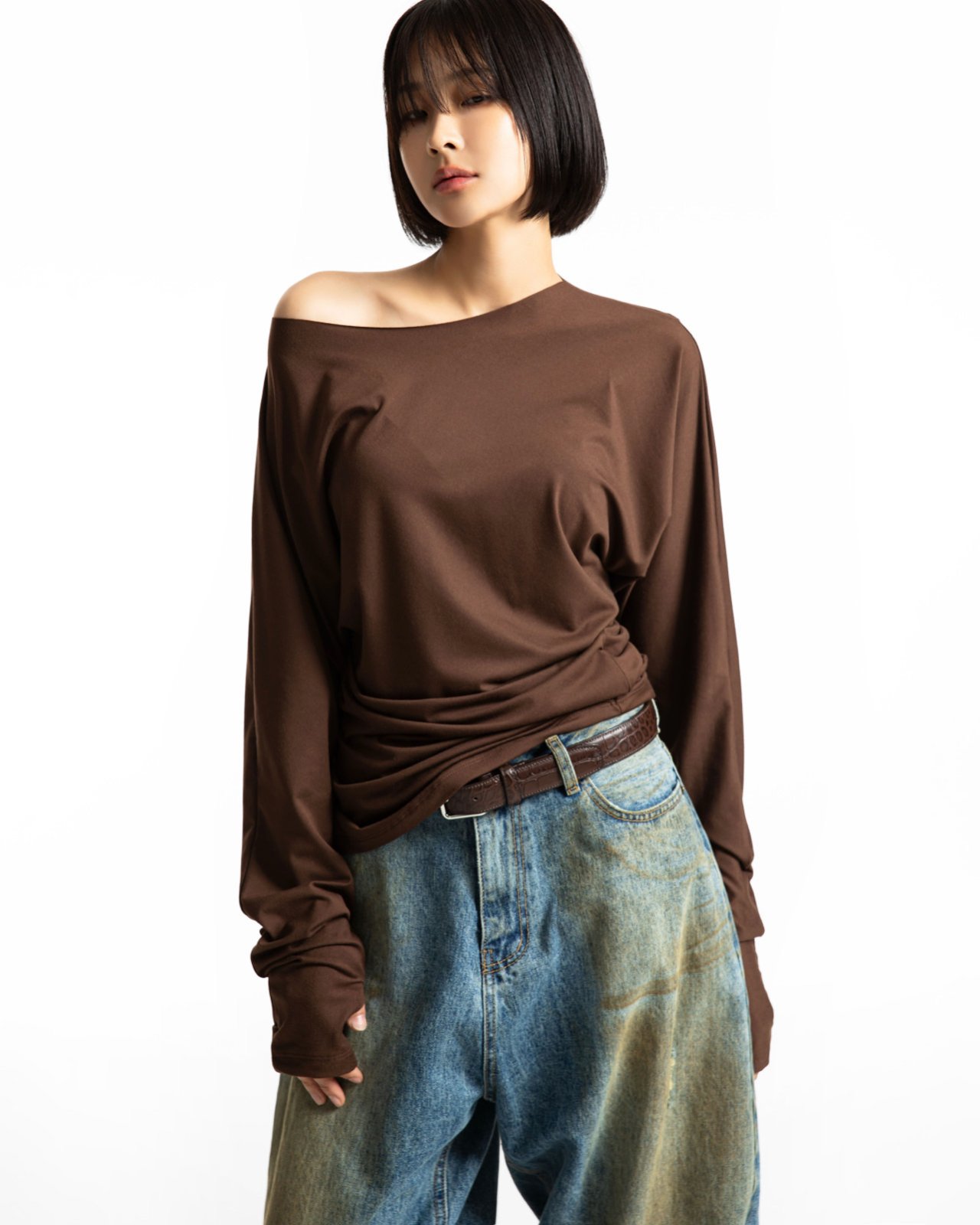 (PAPER MOON) UNBALANCED JERSEY FINGER HALL TEE_BROWN