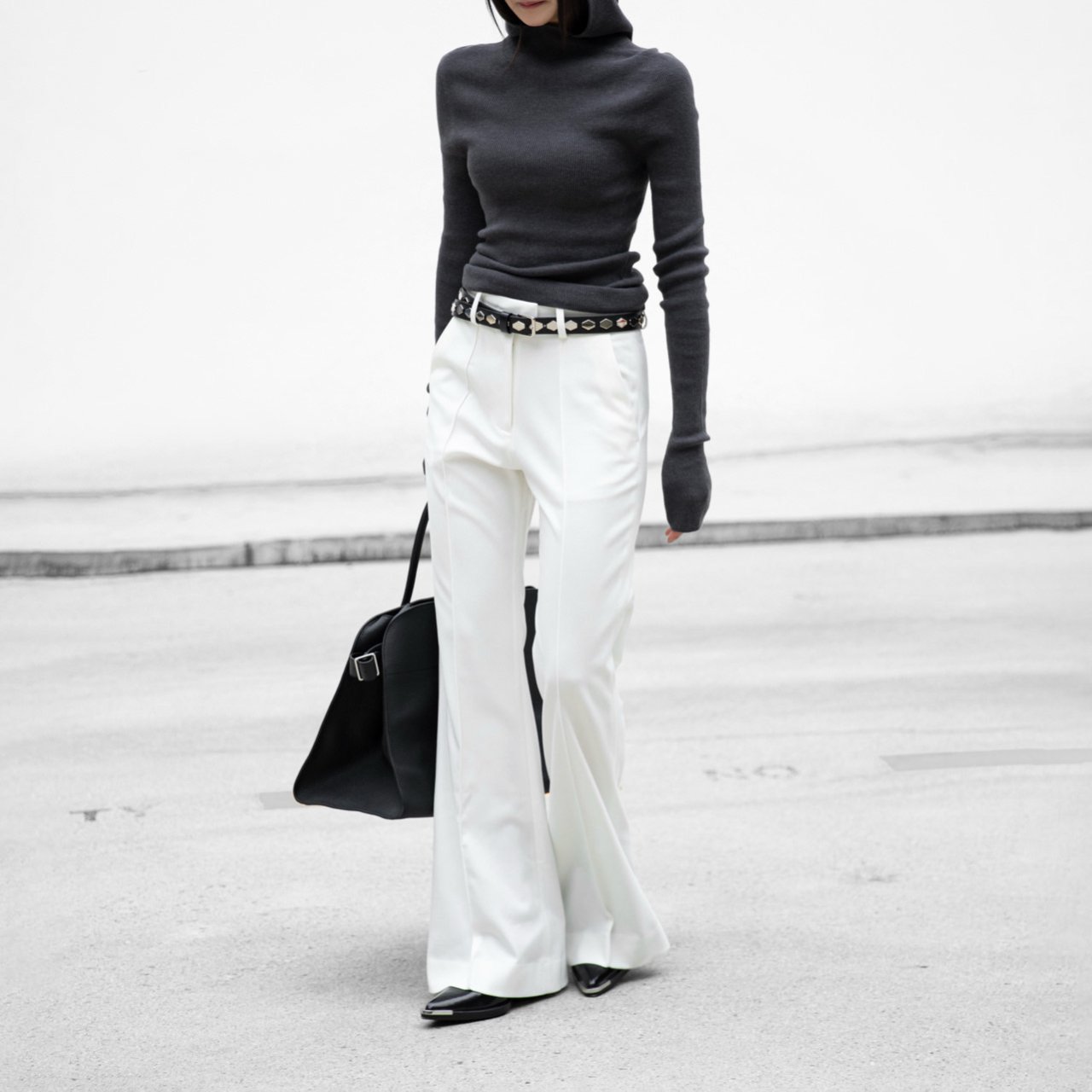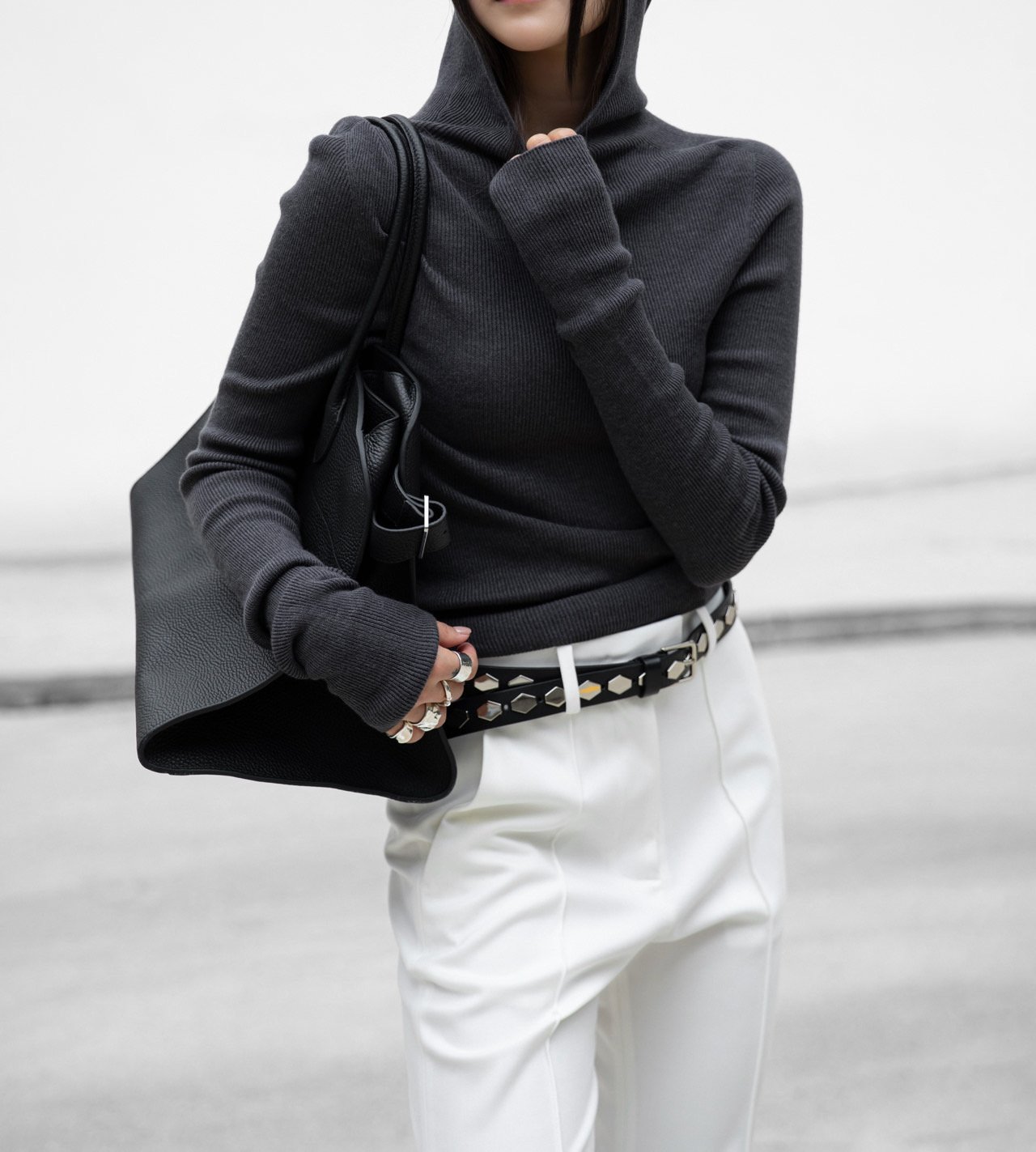 (PAPER MOON) WHOLE GARMENT HOODED KNIT TOP_CHARCOAL