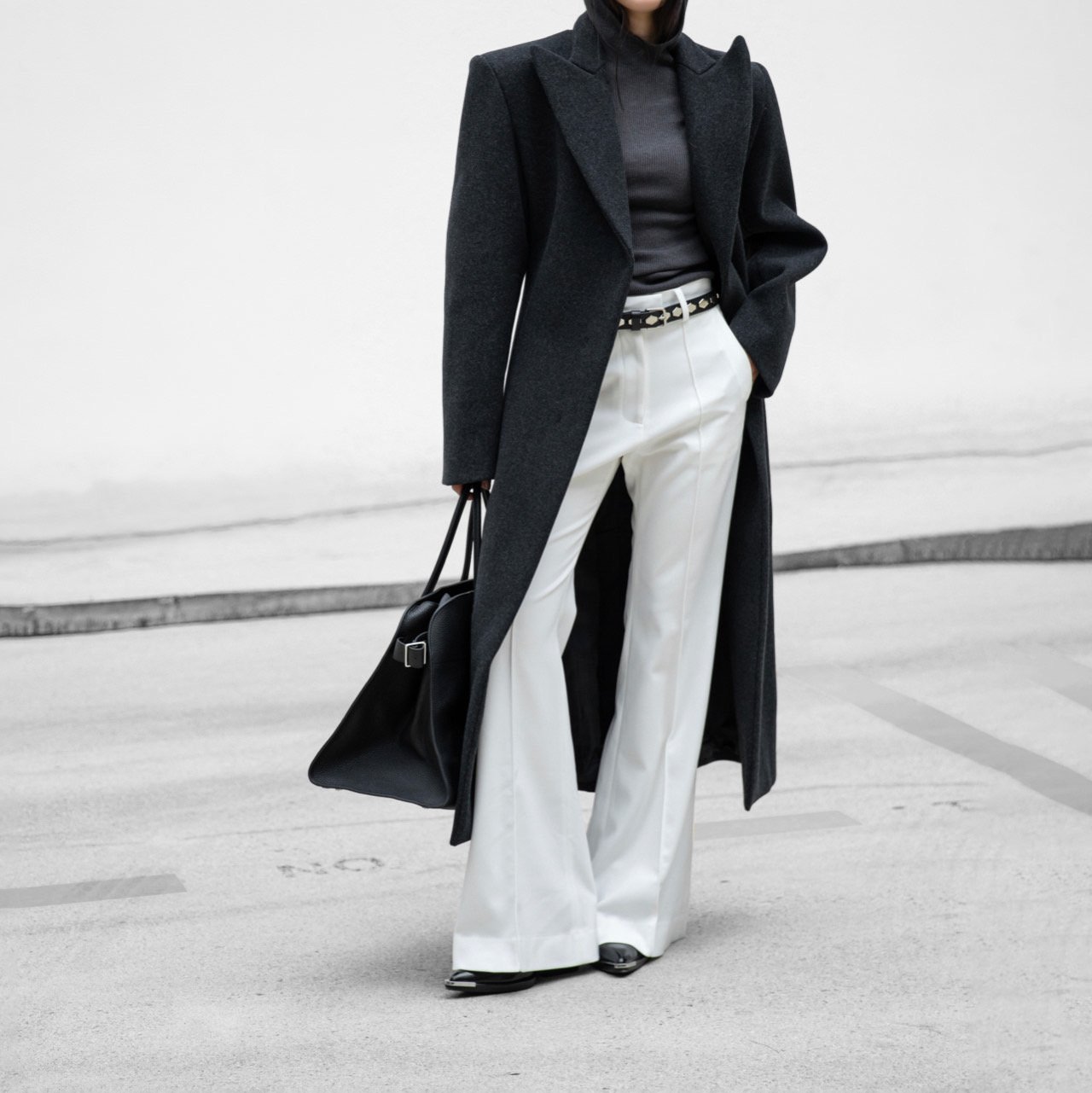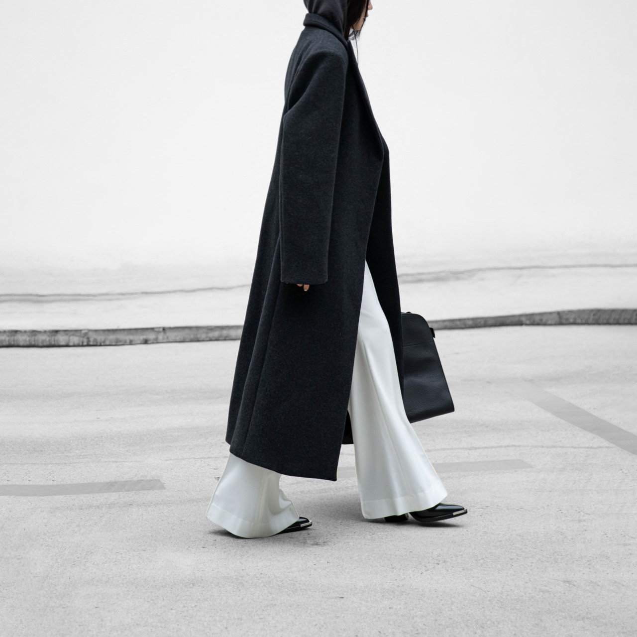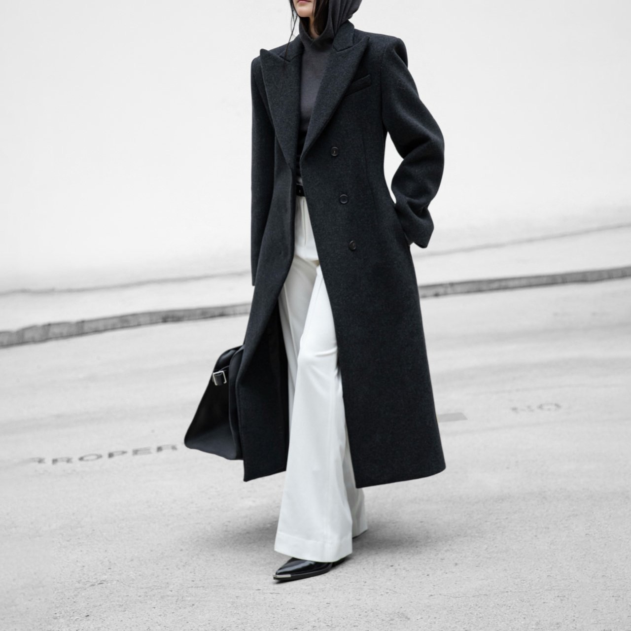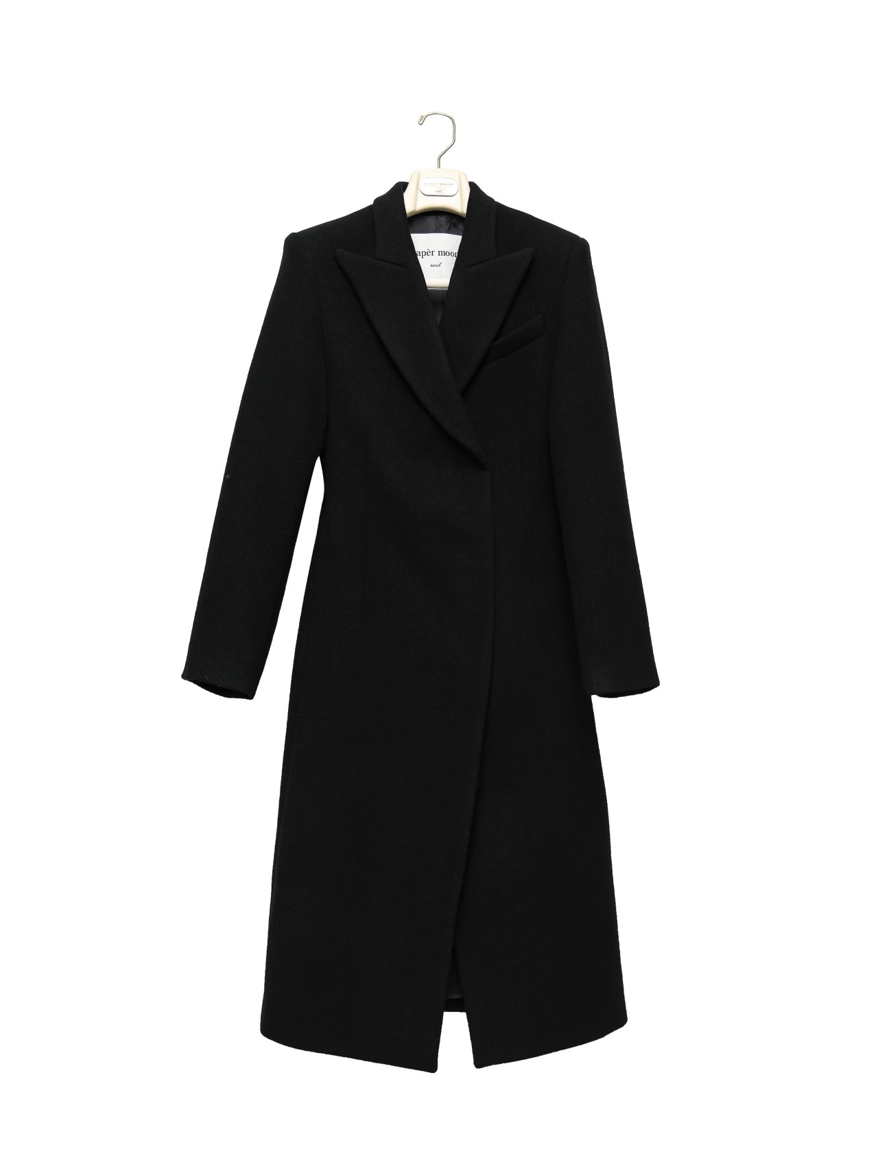 (PAPER MOON) LUX PEAKED LAPEL HIDDEN THREE BUTTON MAXI COAT_BLACK