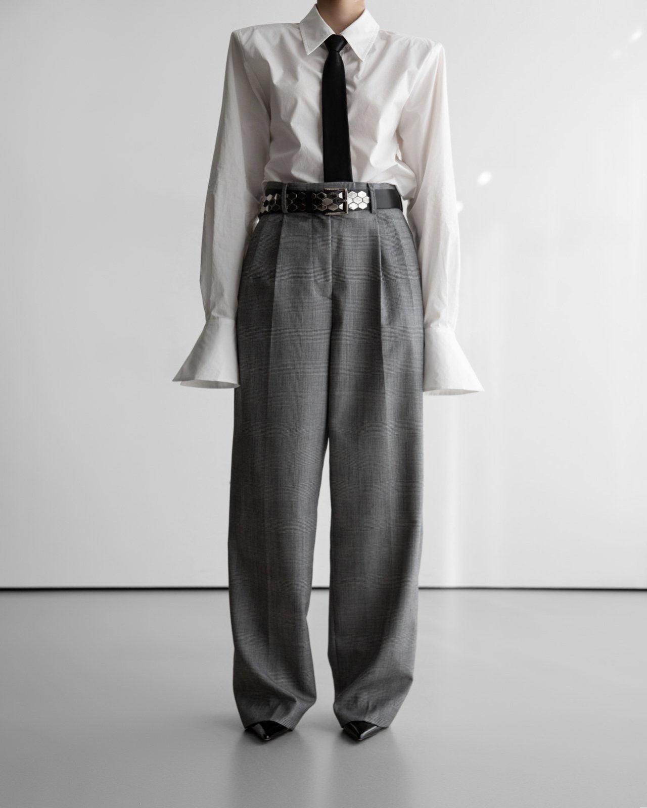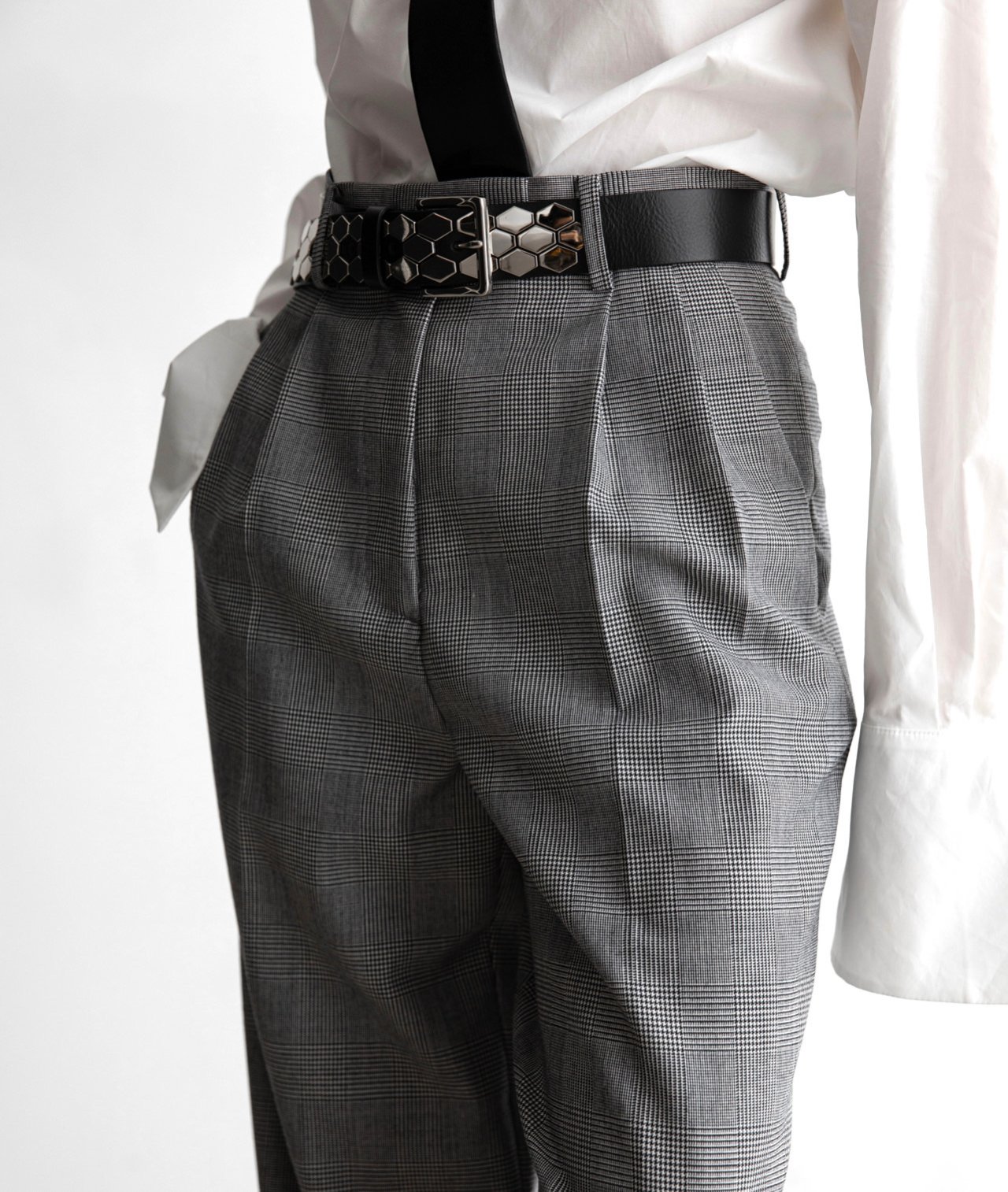 (PAPER MOON) OLD MONEY CHECK SET UP PIN TUCK TROUSERS_BLACK HOUNDSTOOTH CHECK