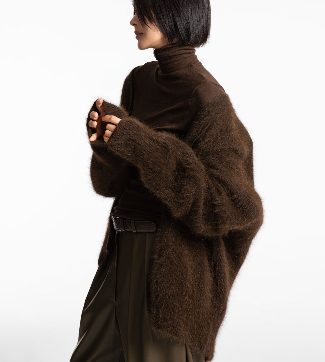 (PAPER MOON) LUX MINK ANGORA OVERSIZED KNIT CARDIGAN_BROWN