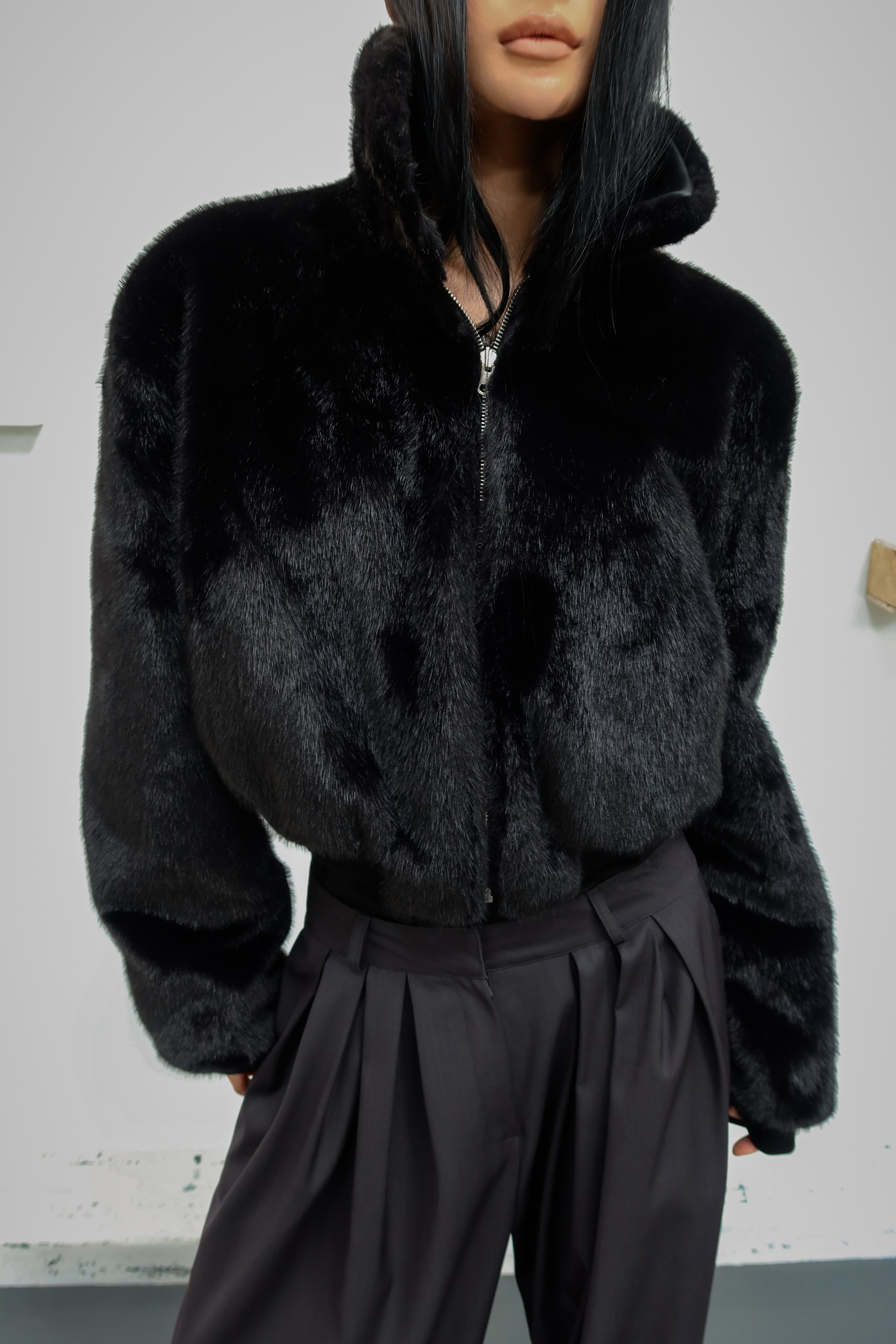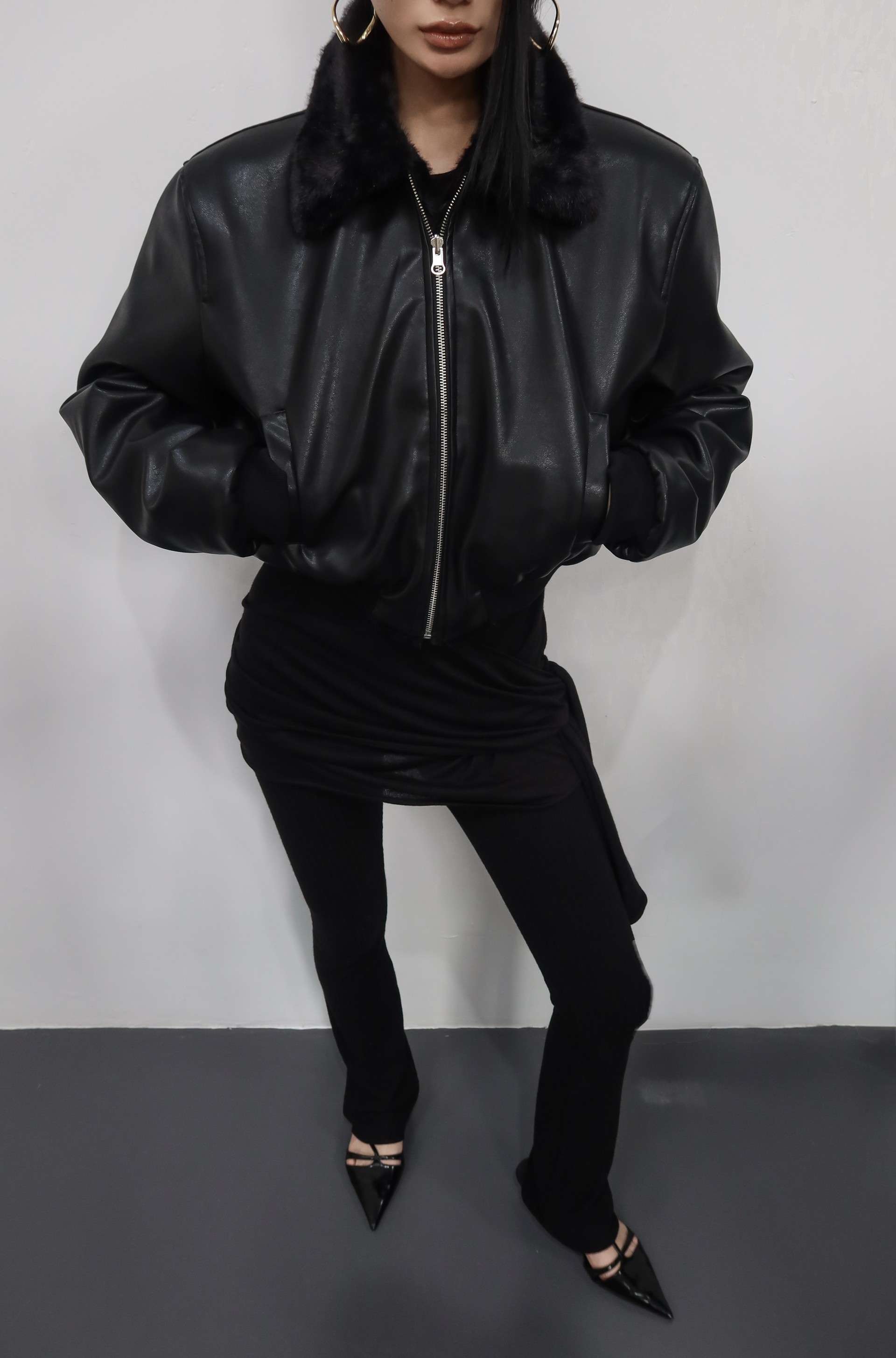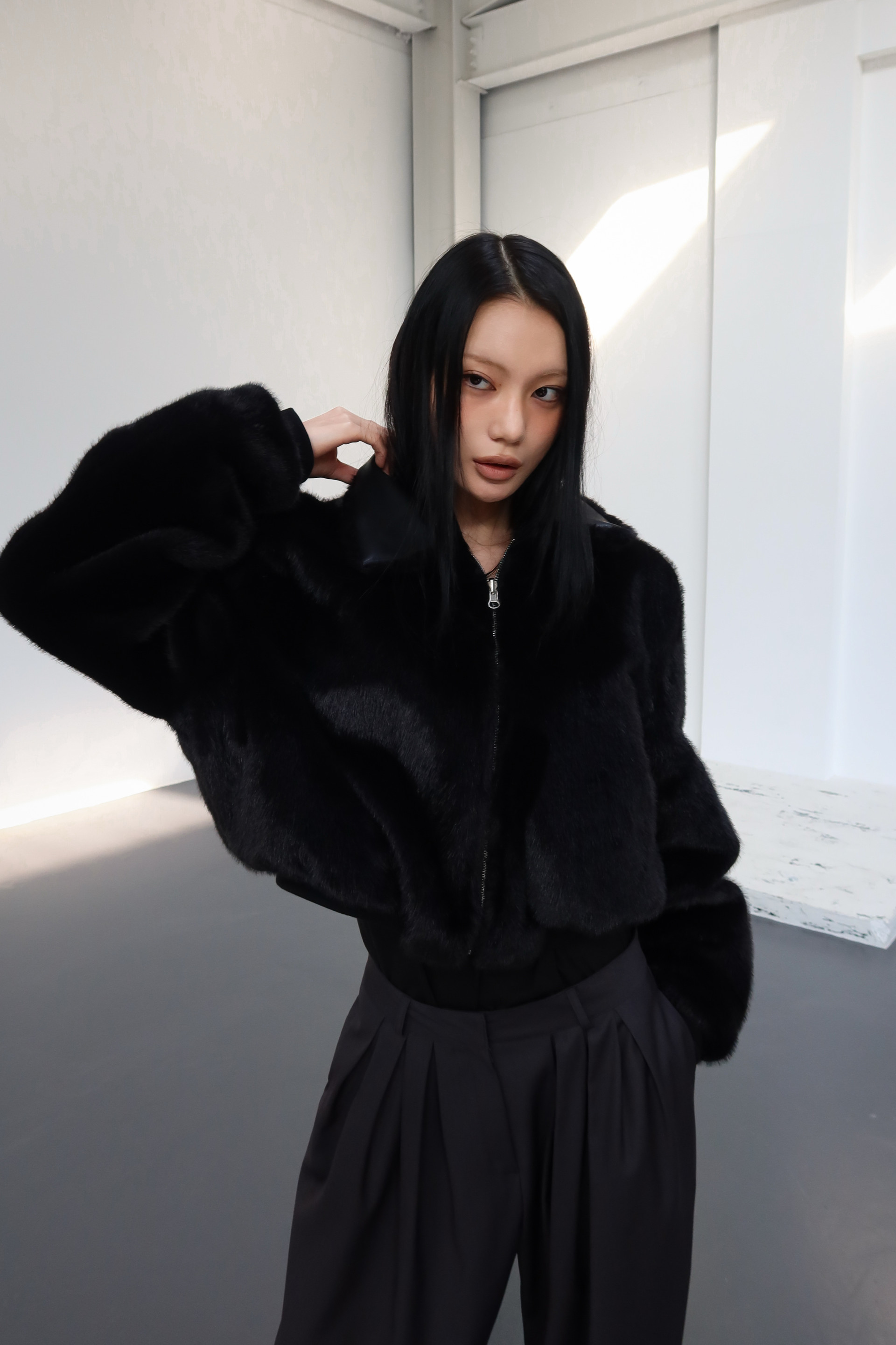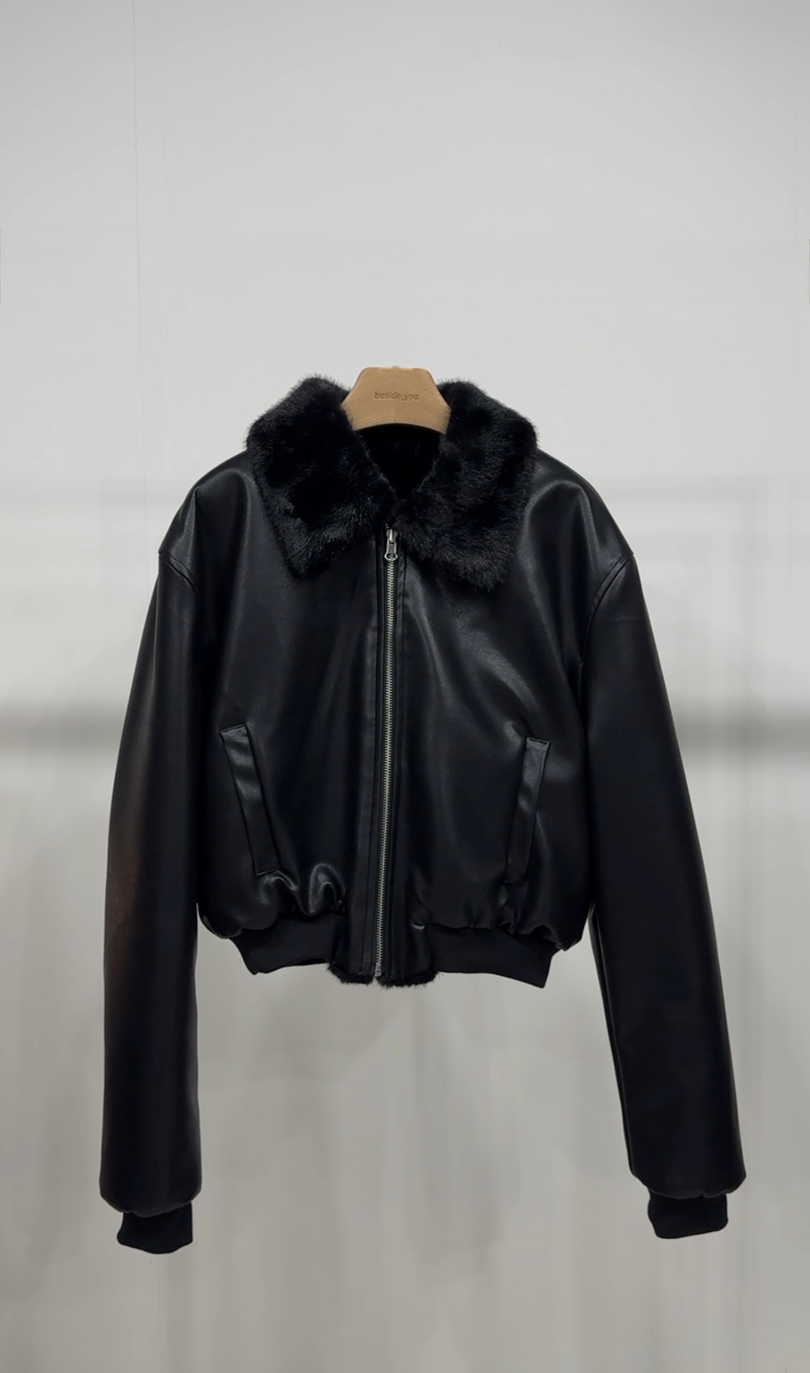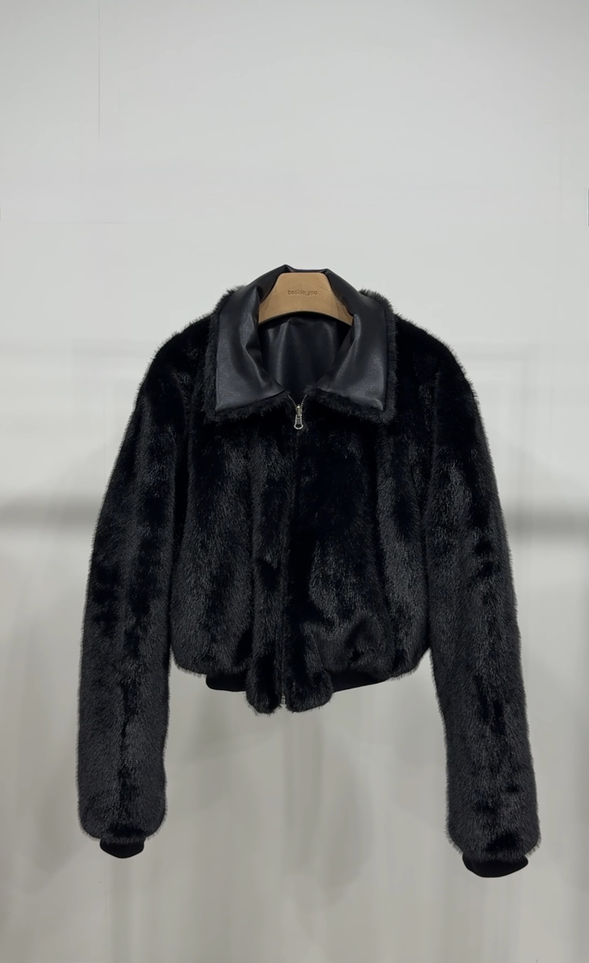 (BESIDE YOU) FUR REVERSIBLE BOMBER JACKET : BLACK