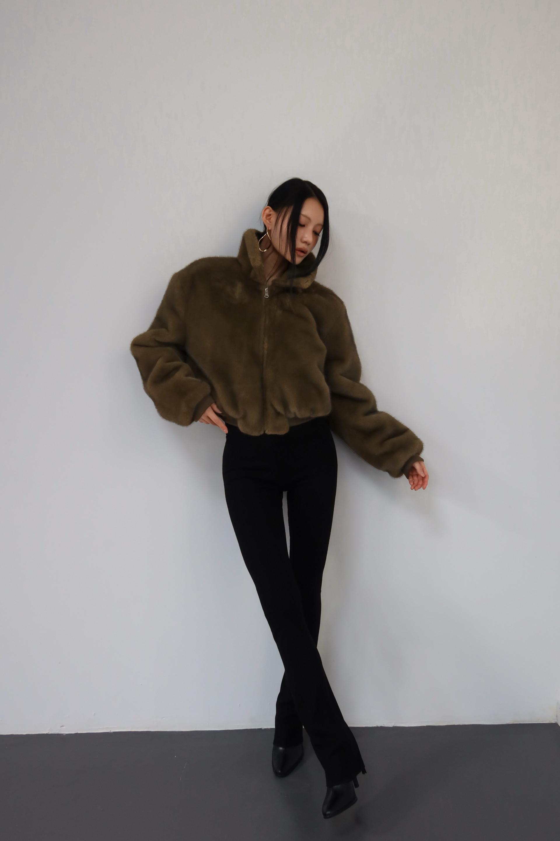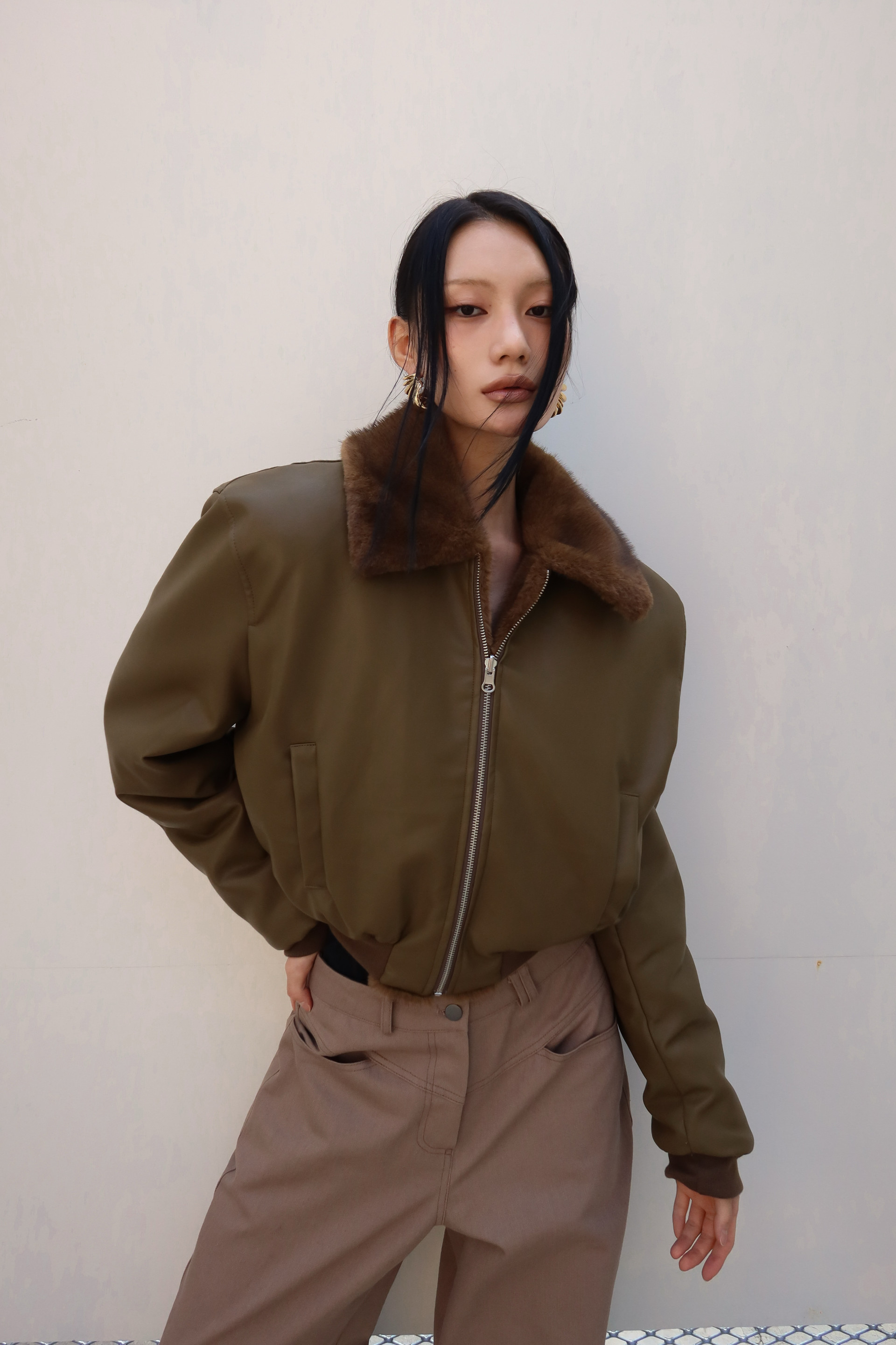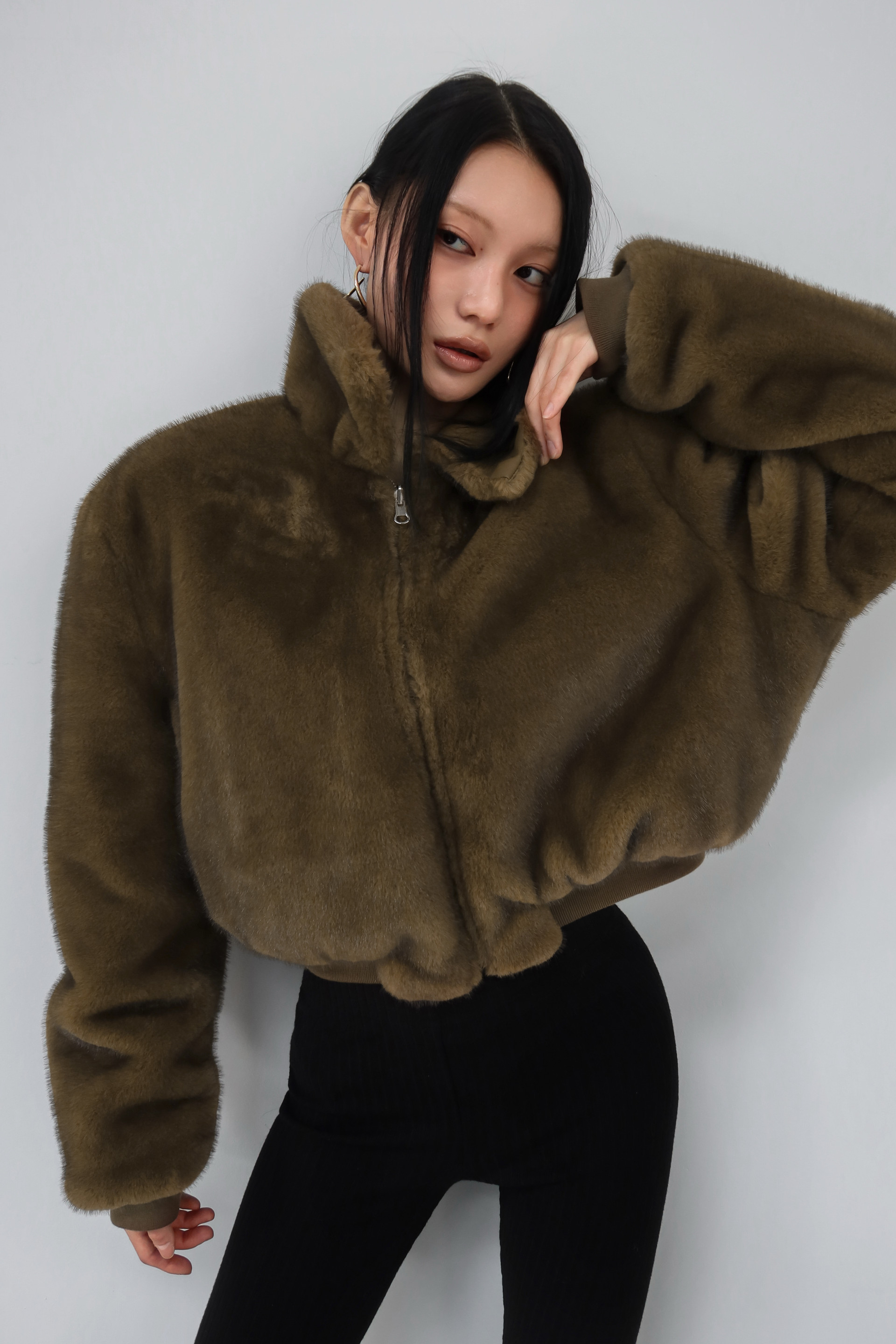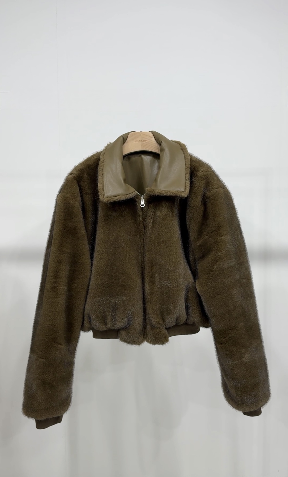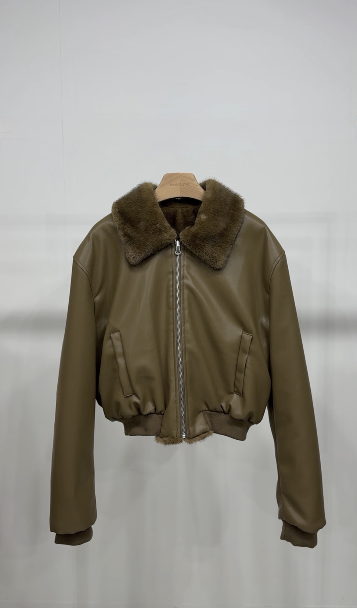 (BESIDE YOU) FUR REVERSIBLE BOMBER JACKET : OLIVE KHAKI