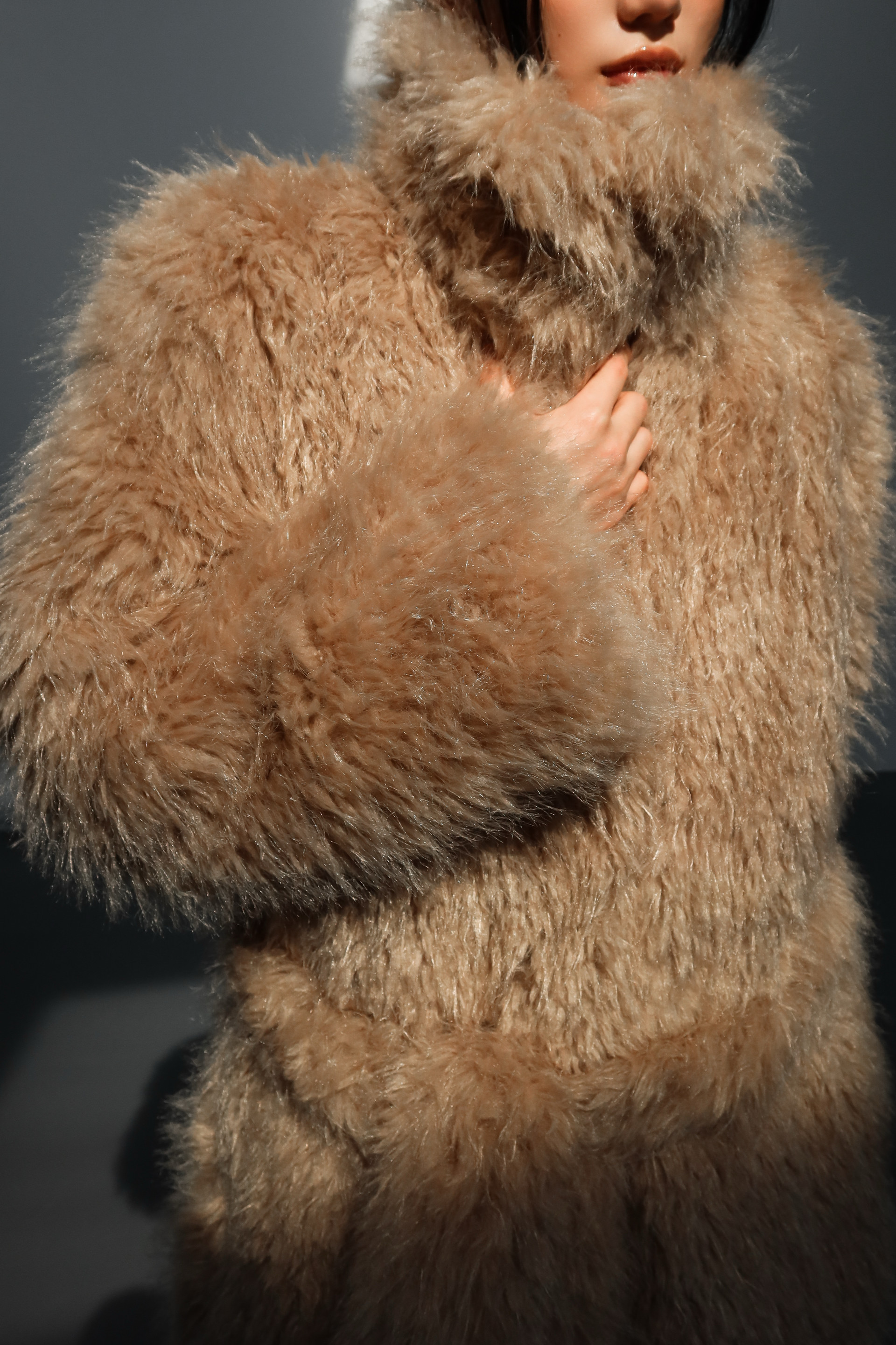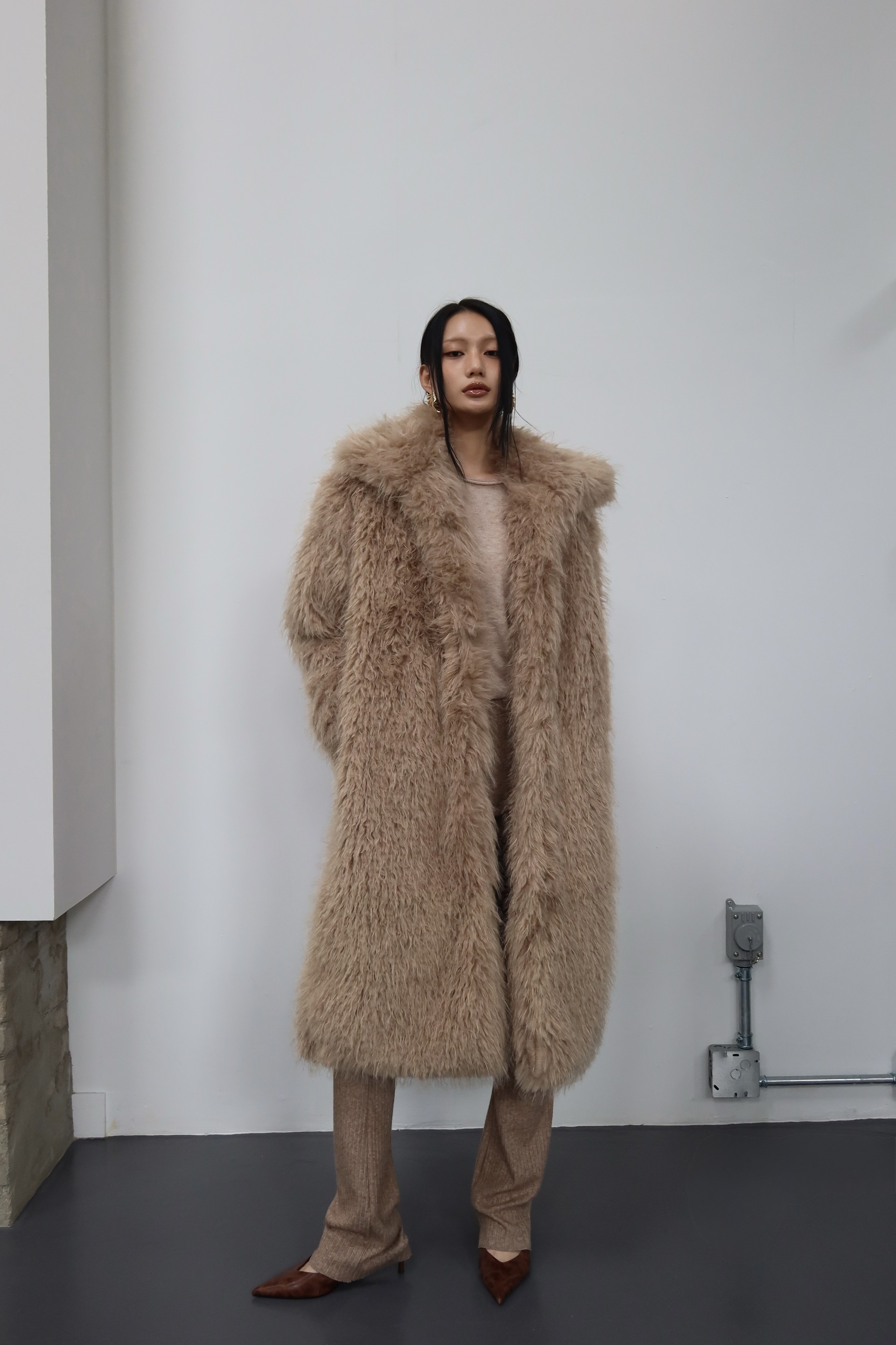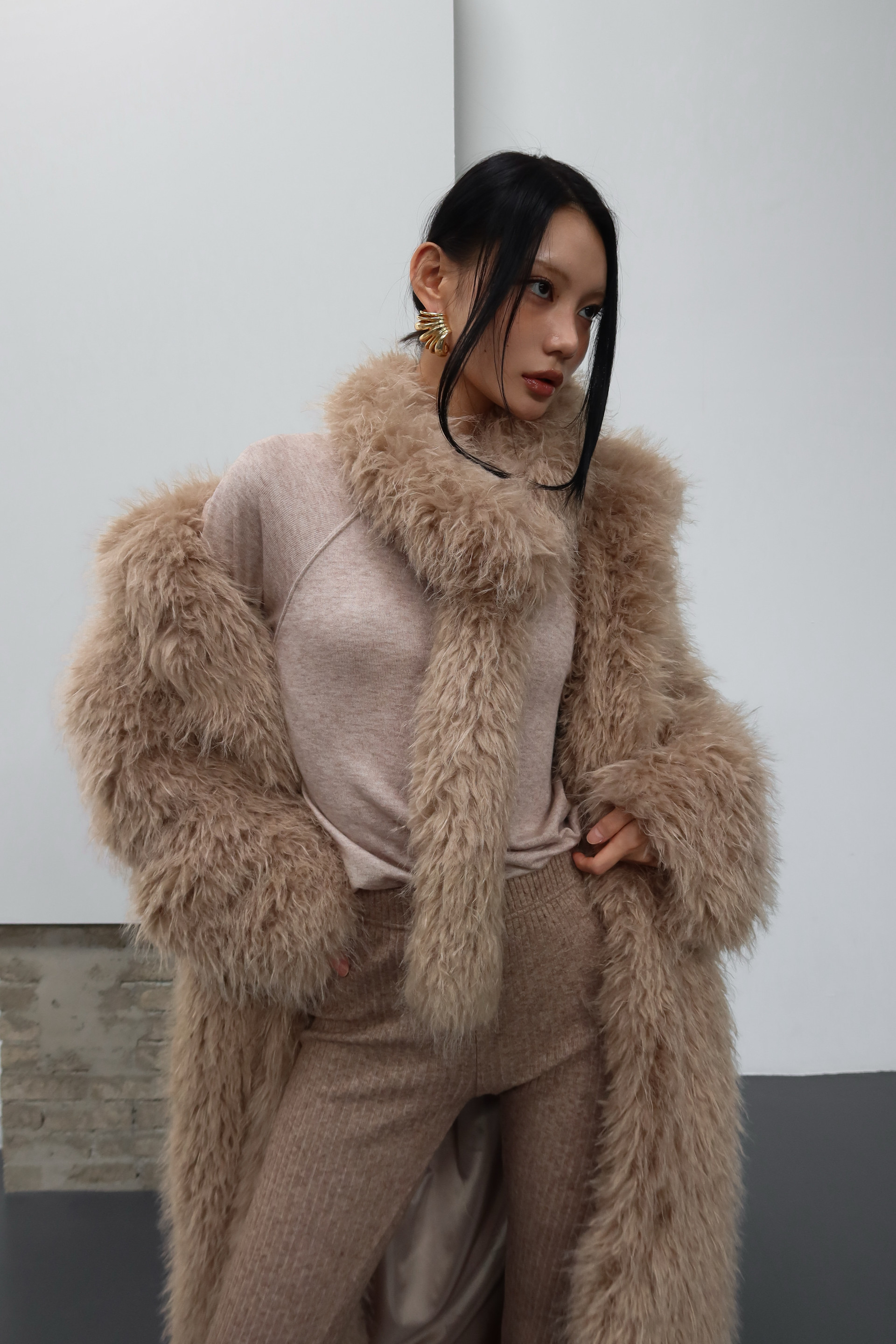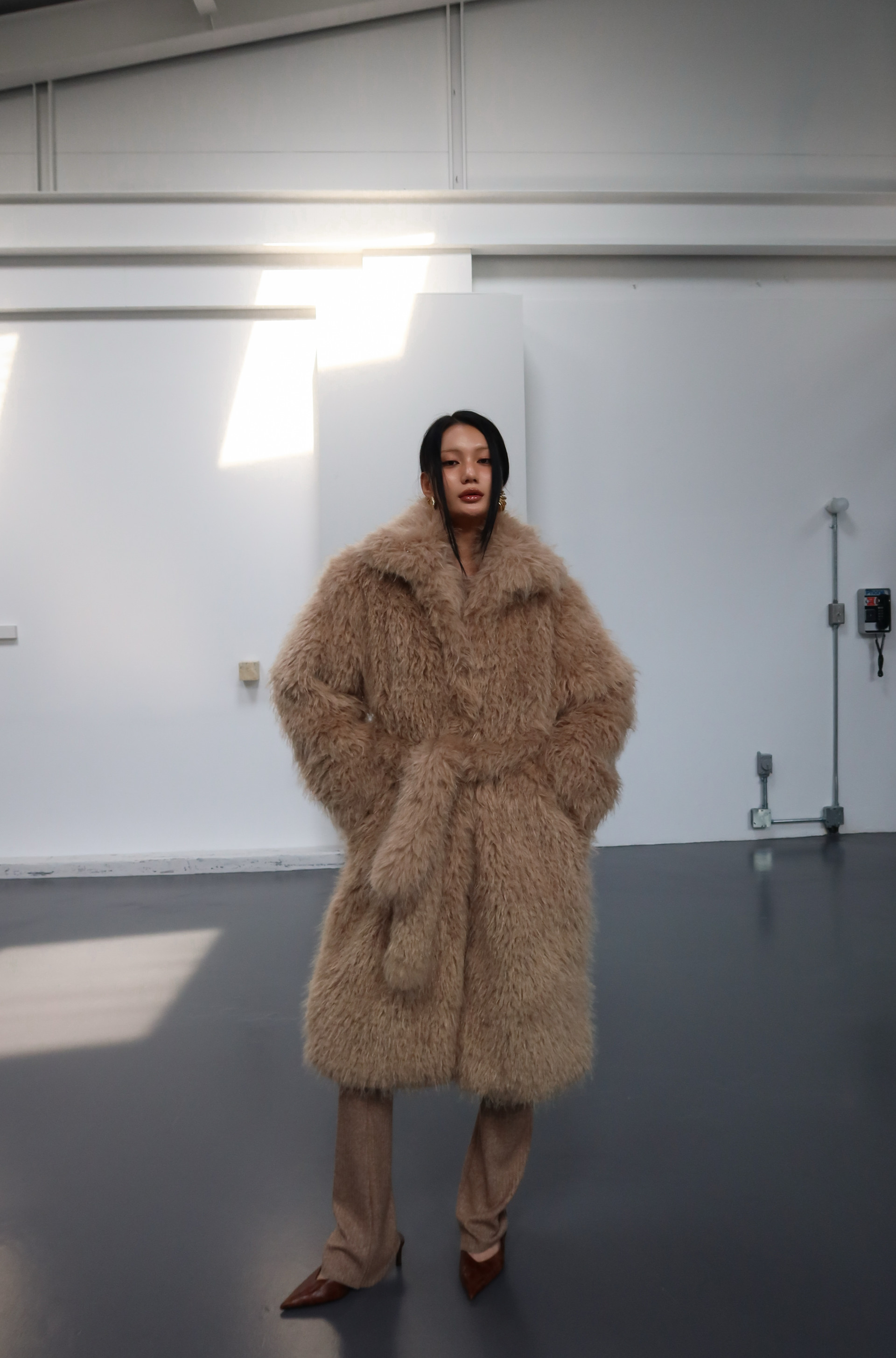 (BESIDE YOU) SHEARING BELTED COAT : BEIGE
