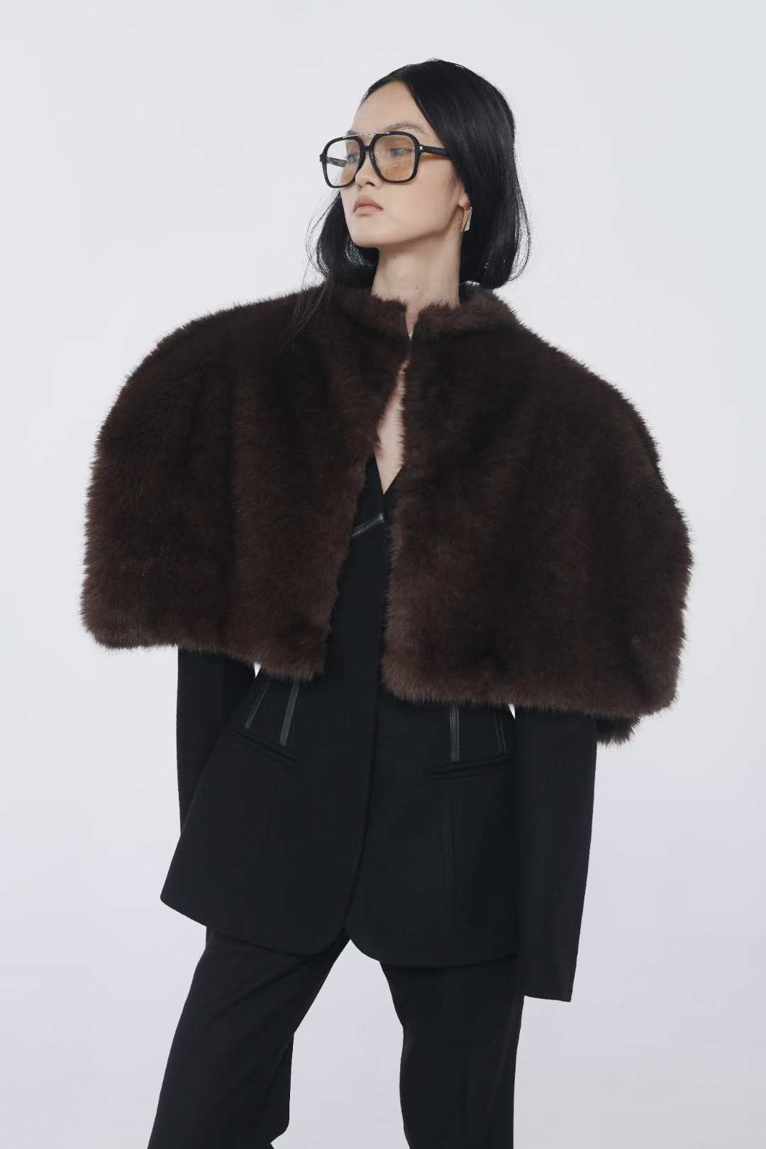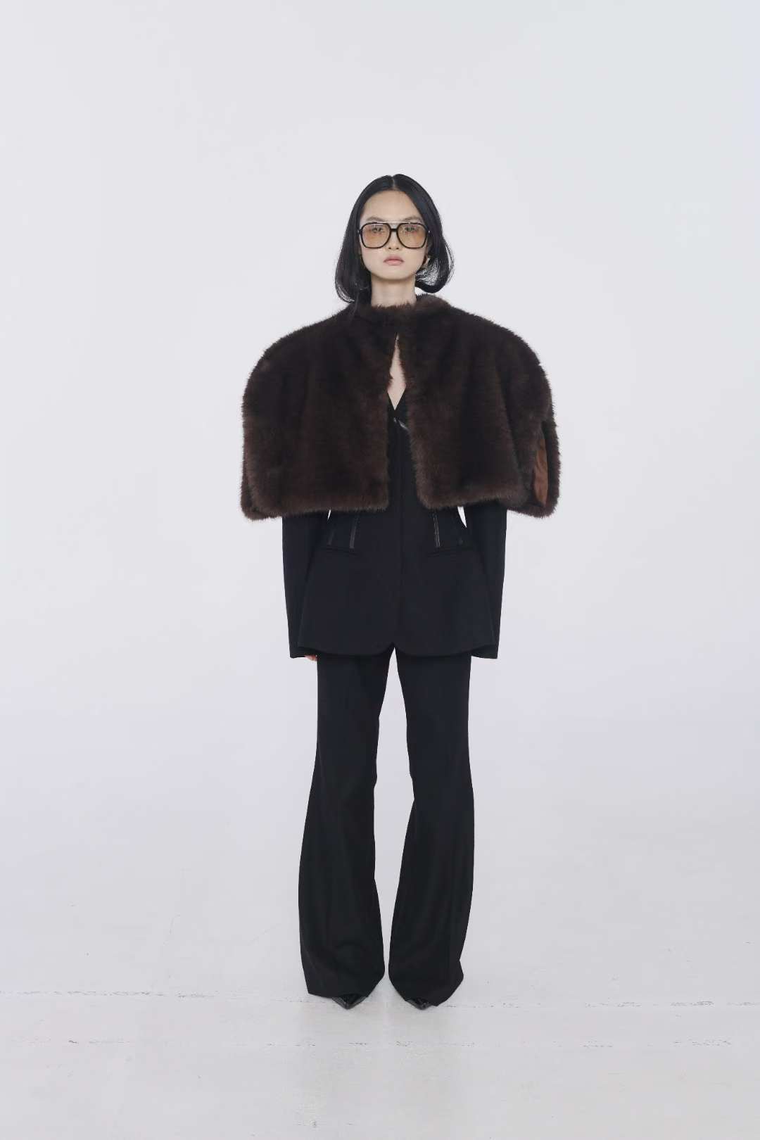 (ONE BY TWO) 25FW-3-5 FUR SHORT CAPE : BROWN