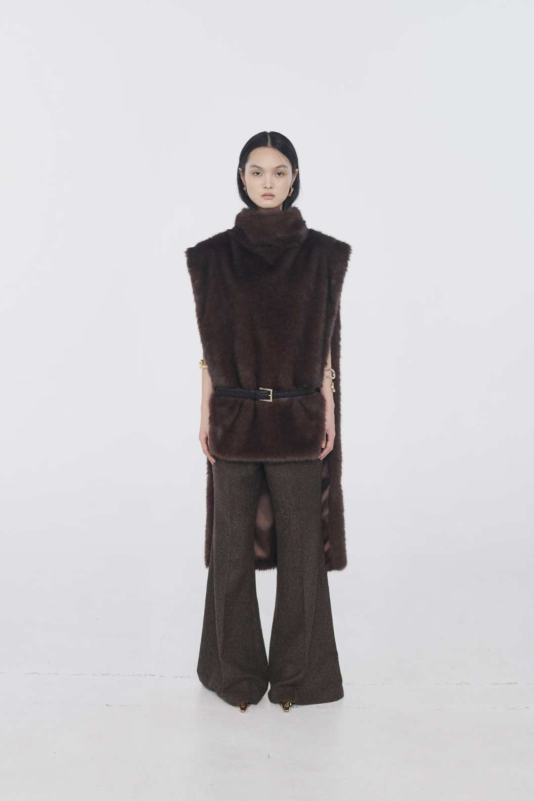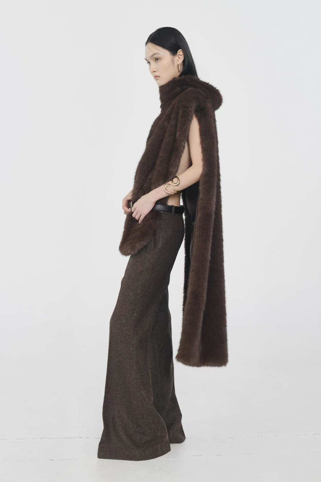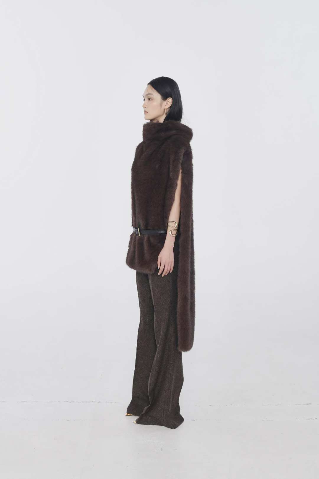(ONE BY TWO) 25FW-3-9 FUR LONG CAPE : DARK BROWN