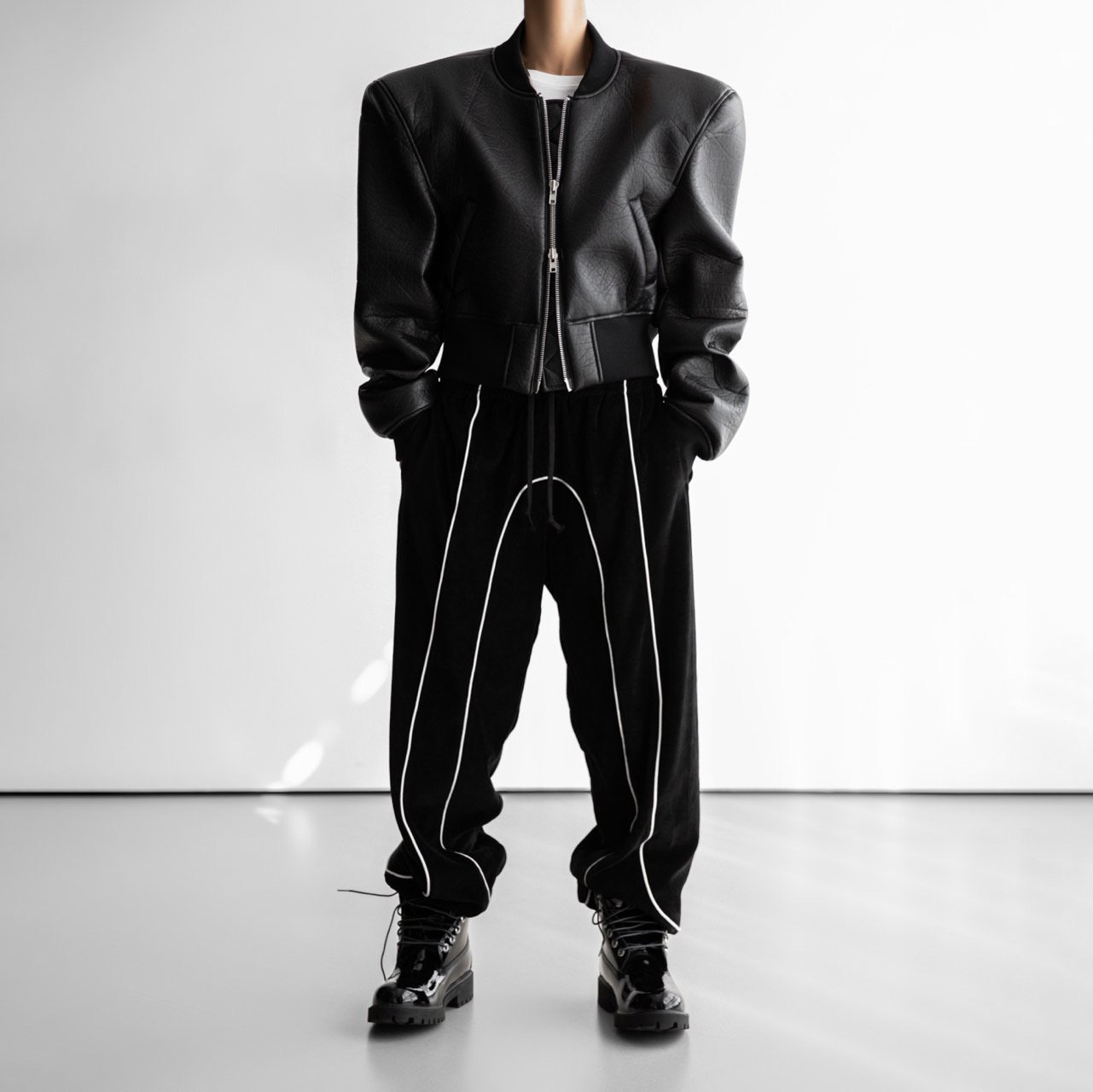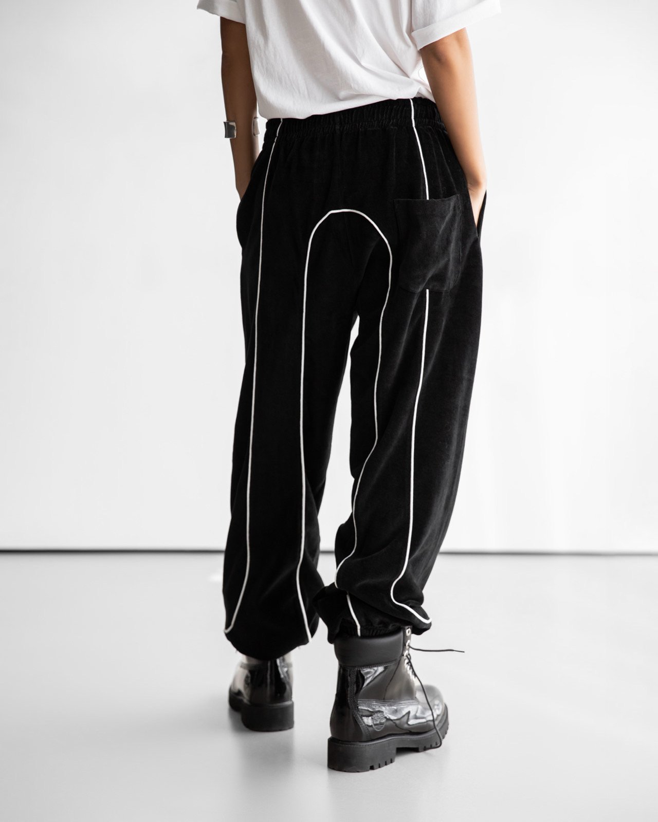 (PAPER MOON) VELVET TRIMMED DETAIL JOGGER TROUSERS : BLACK