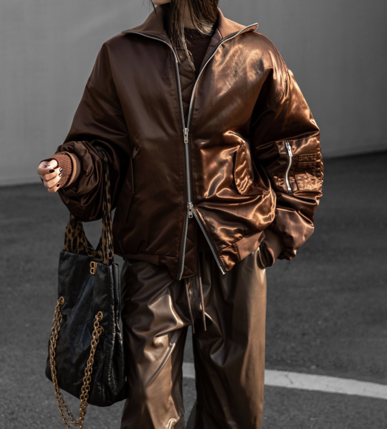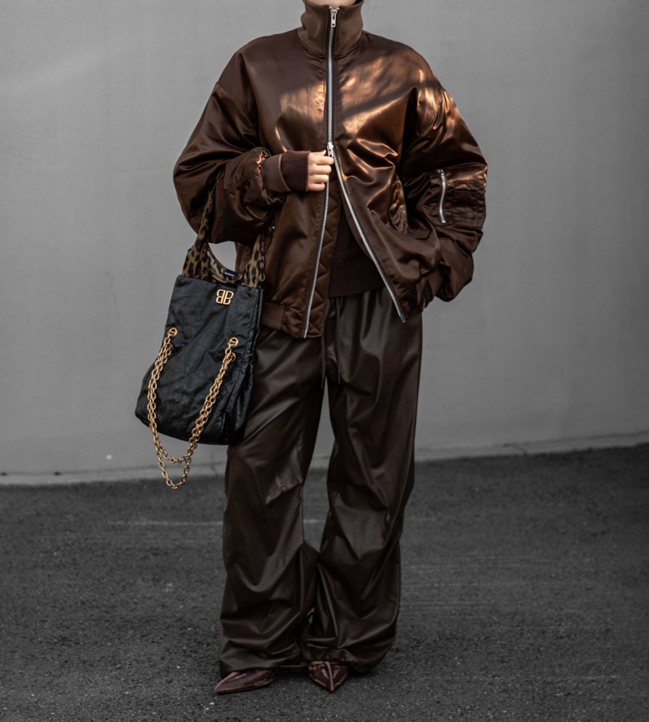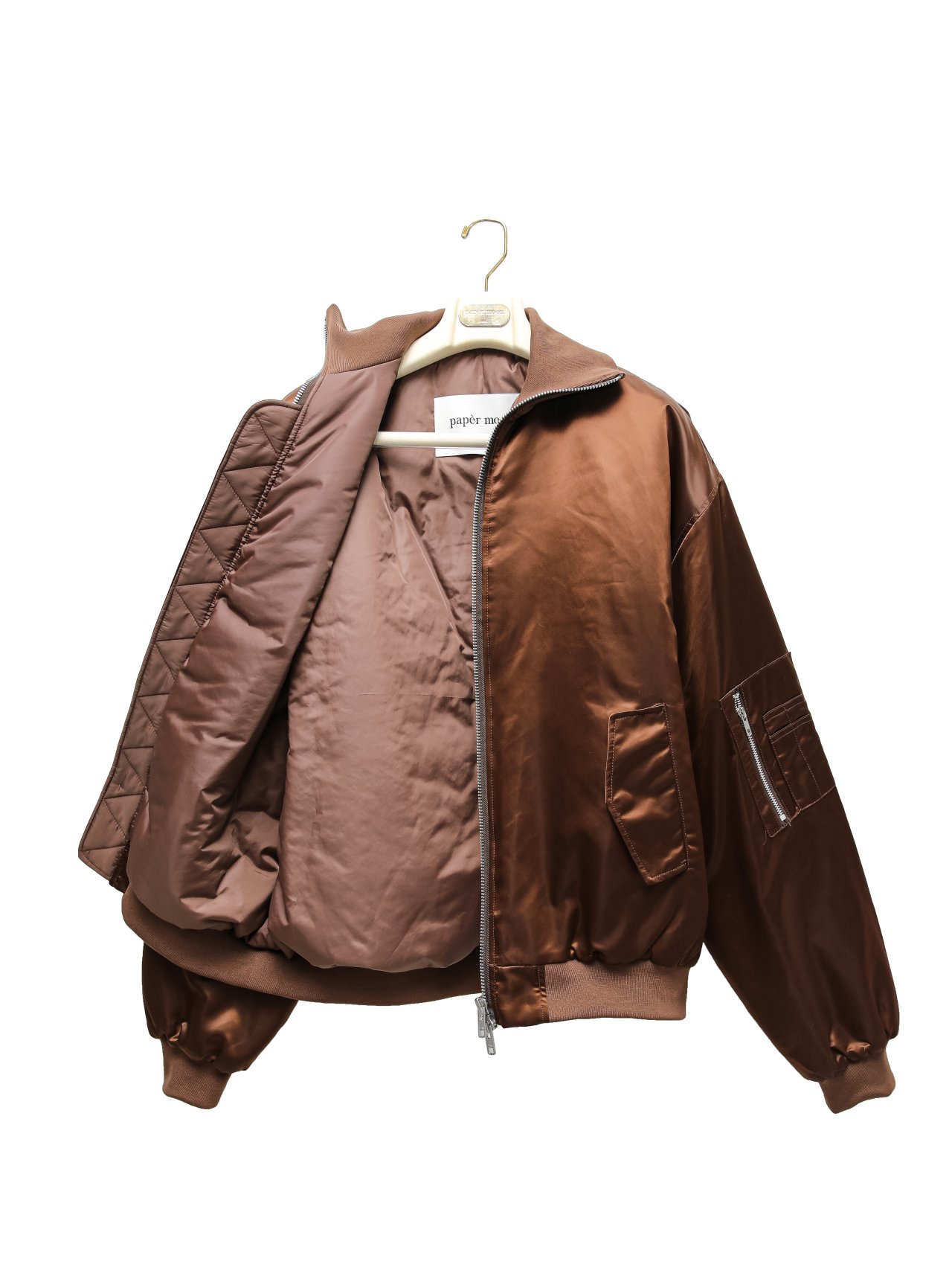 (PAPER MOON) OVERSIZED HIGH NECK PADDED BOMBER MA - 1 JACKET : BROWN