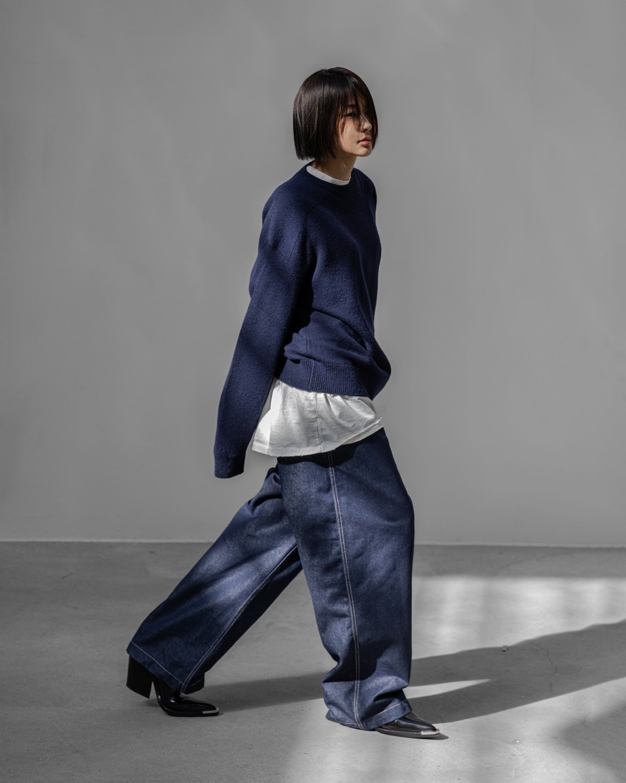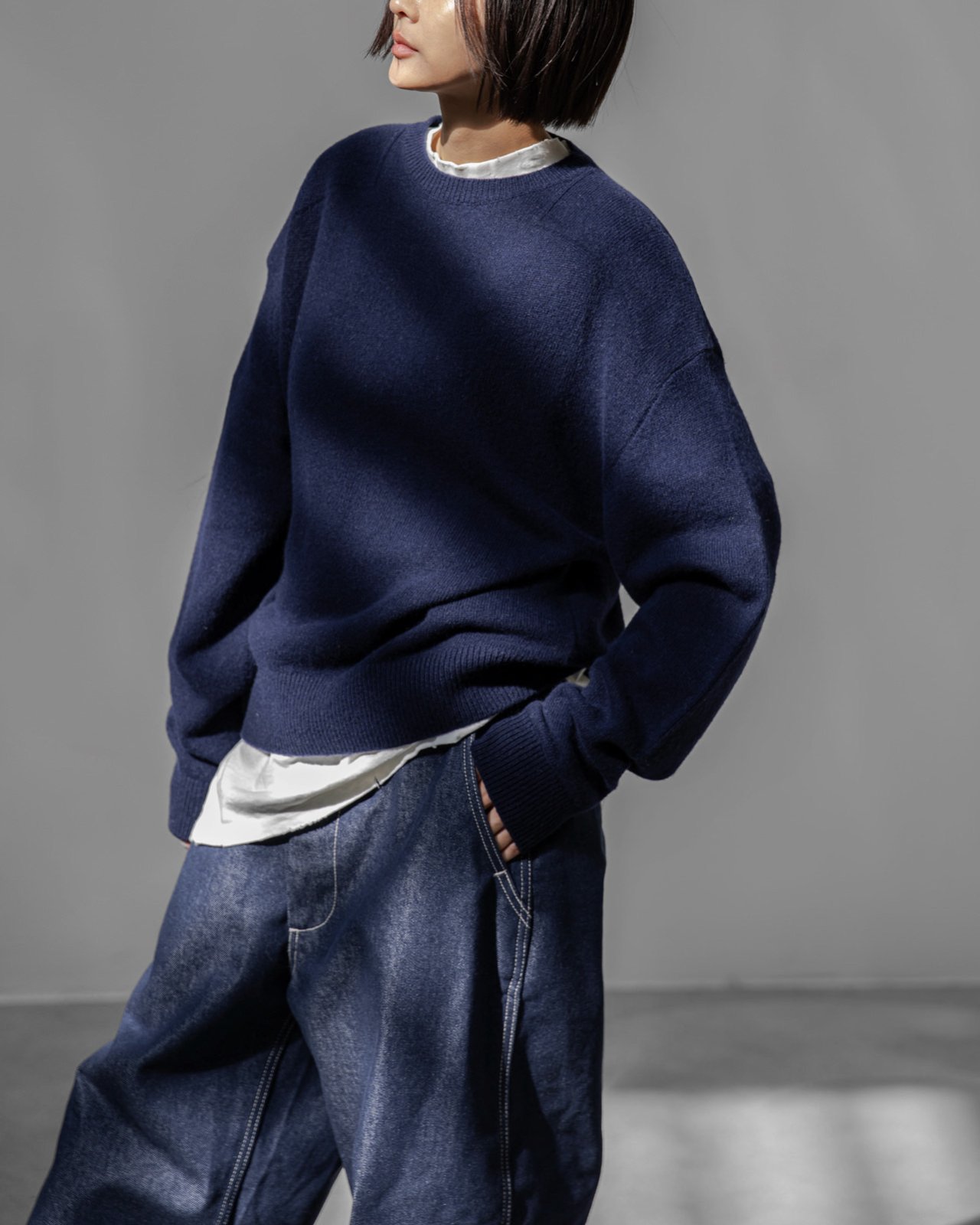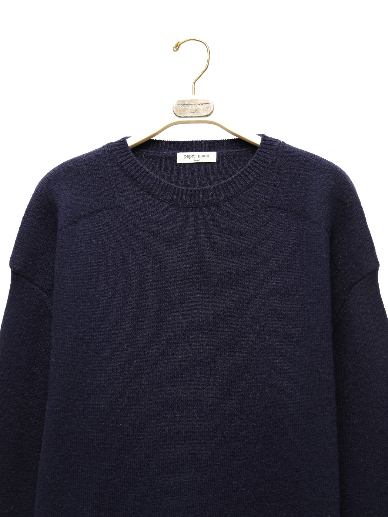 (PAPER MOON) DOUBLE KNITTING SHOULDER DETAIL ROUND NECK KNIT : NAVY
