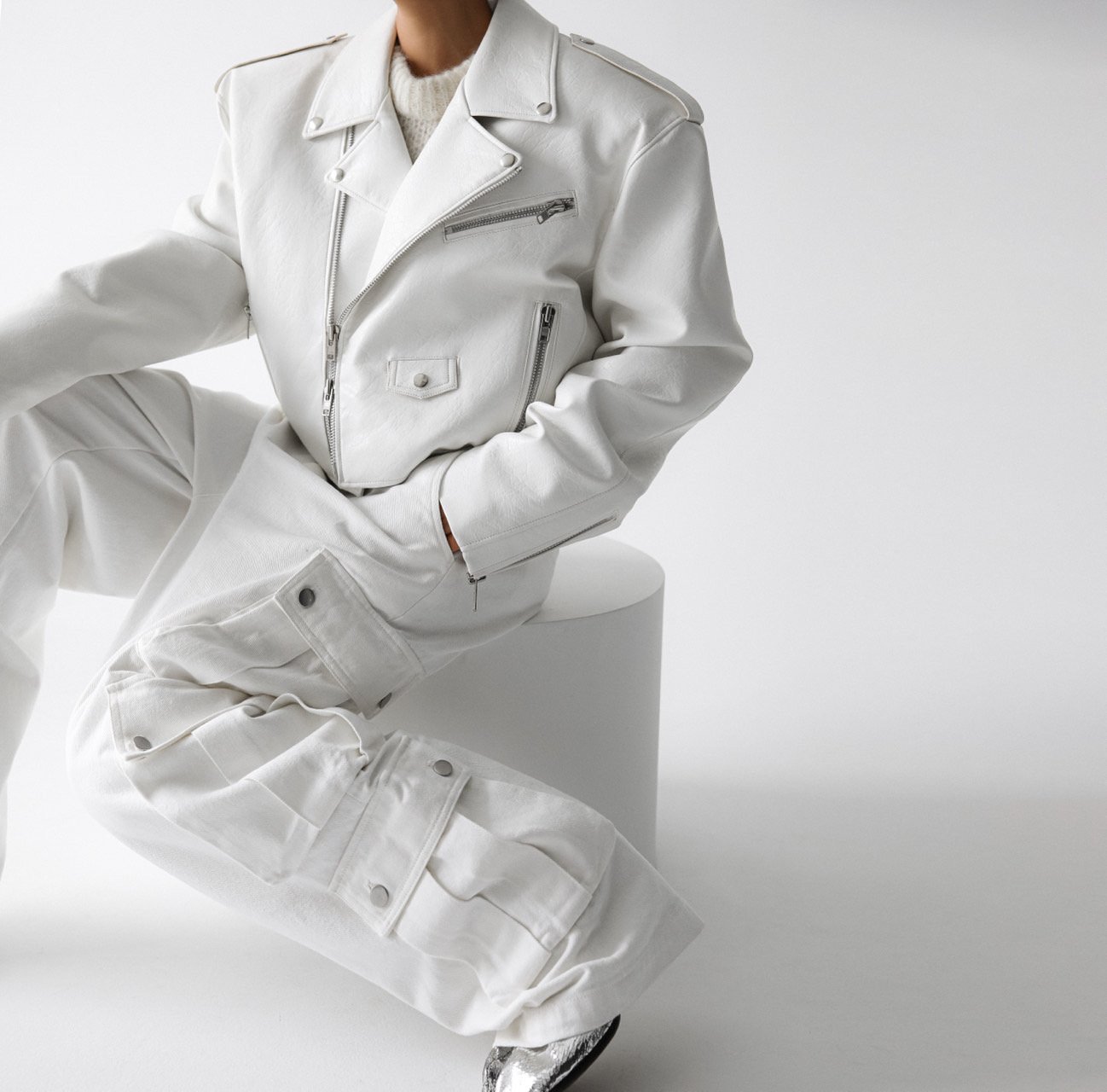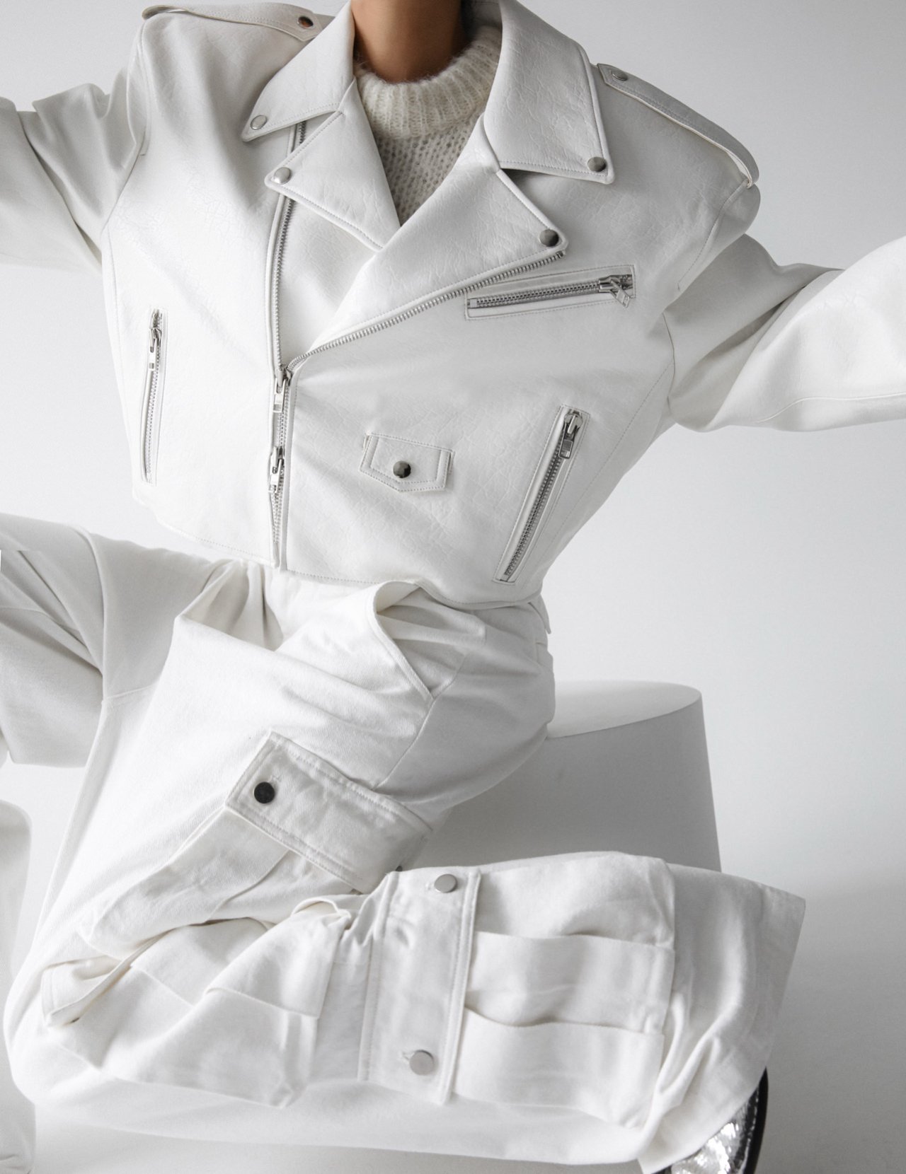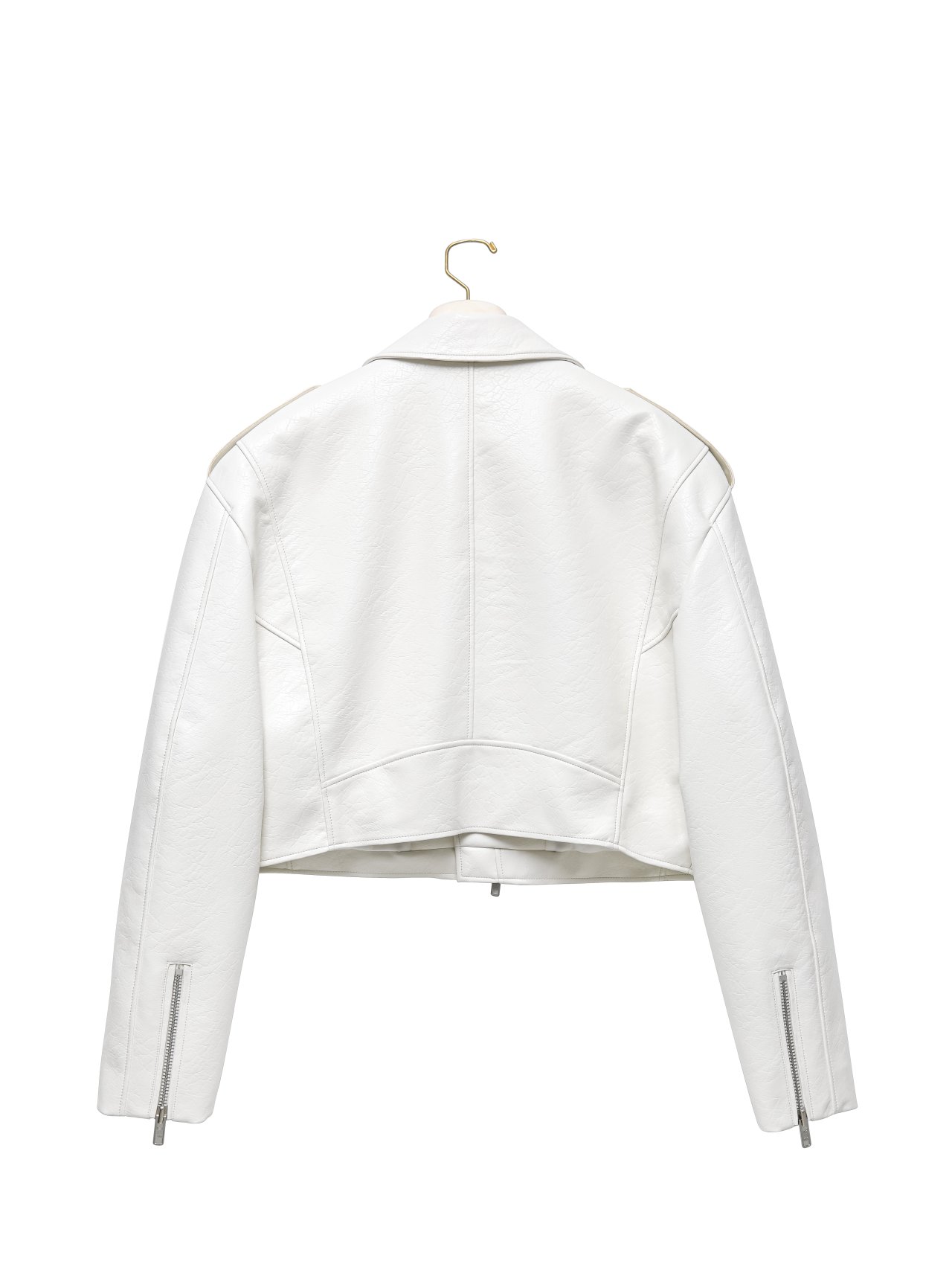 (PAPER MOON) OVERSIZED VEGAN LEATHER CROPPED CHUNKY BIKER JACKET : CREAM