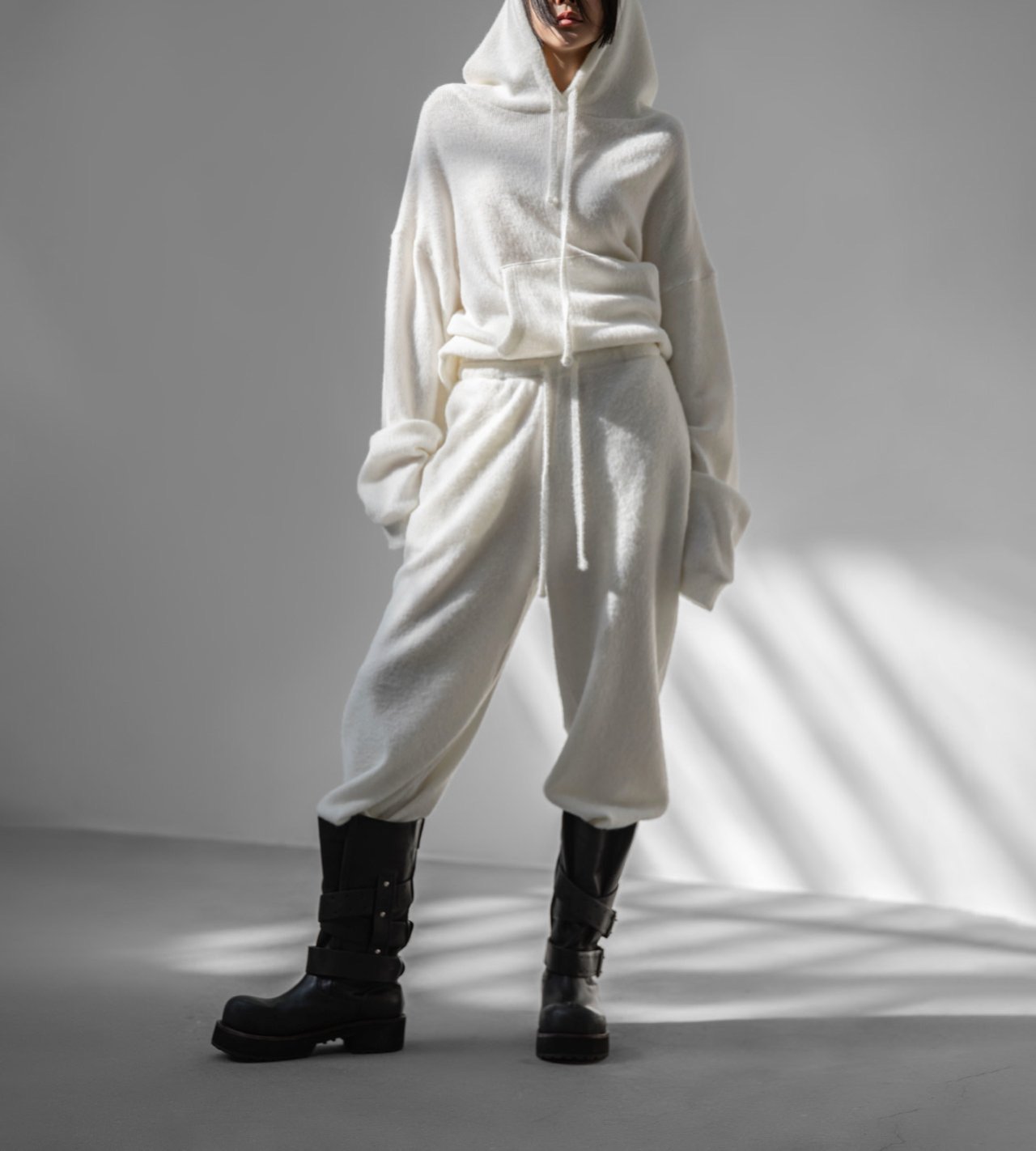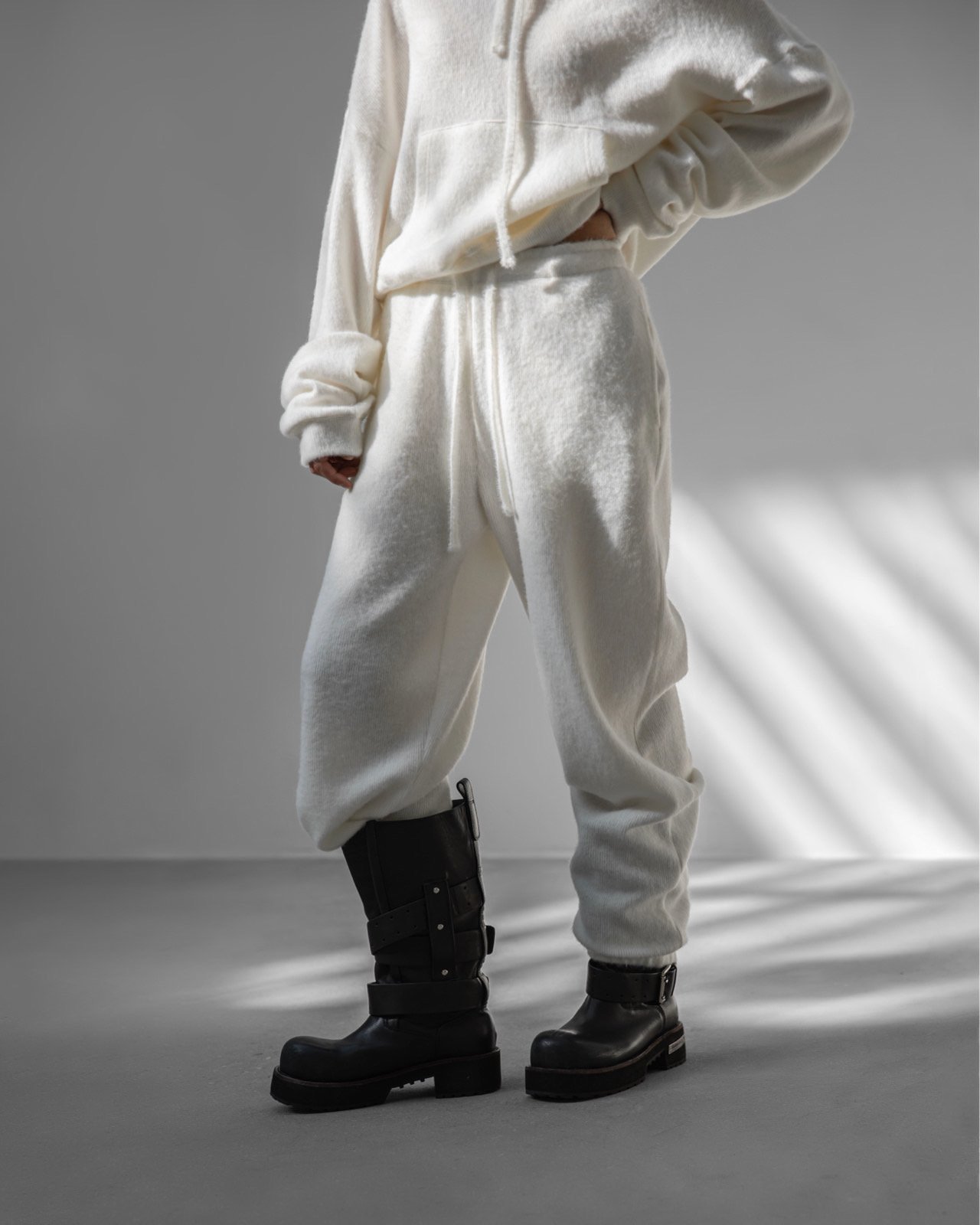 (PAPER MOON) HAIRY TEXTURE COZY JOGGER PANTS : CREAM