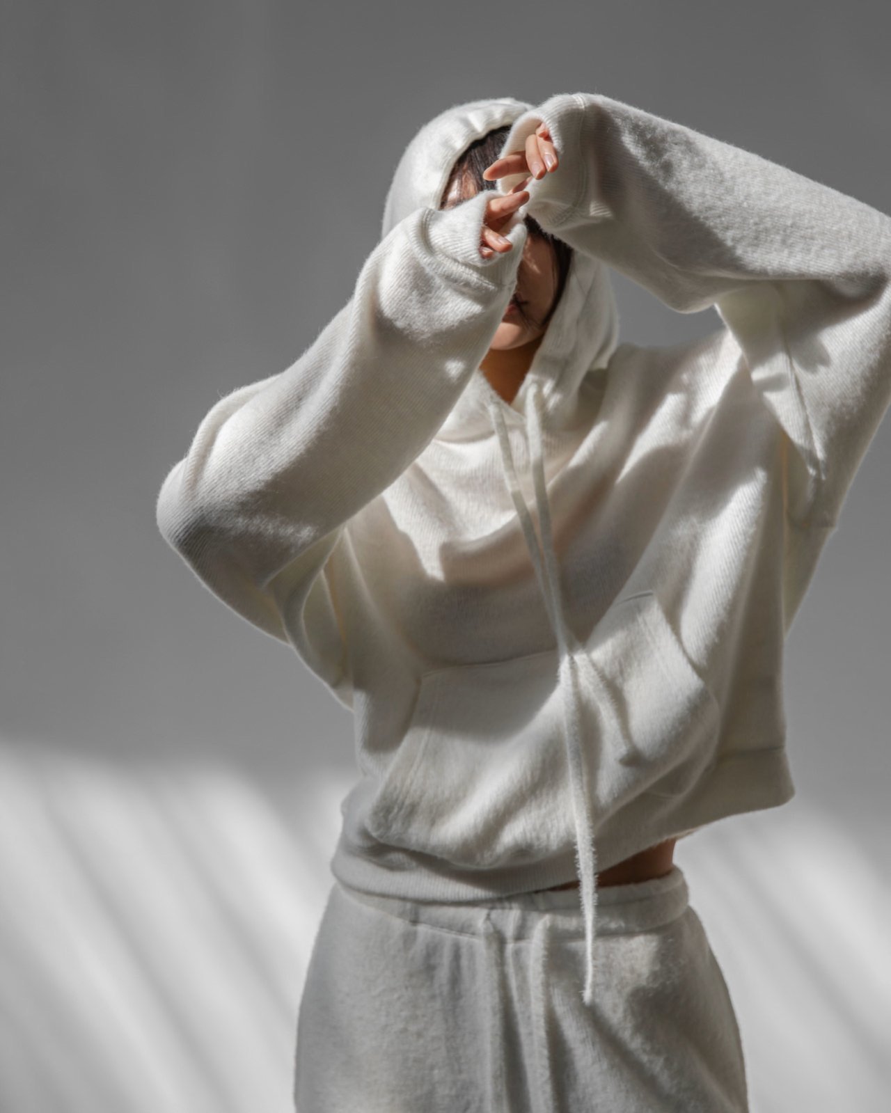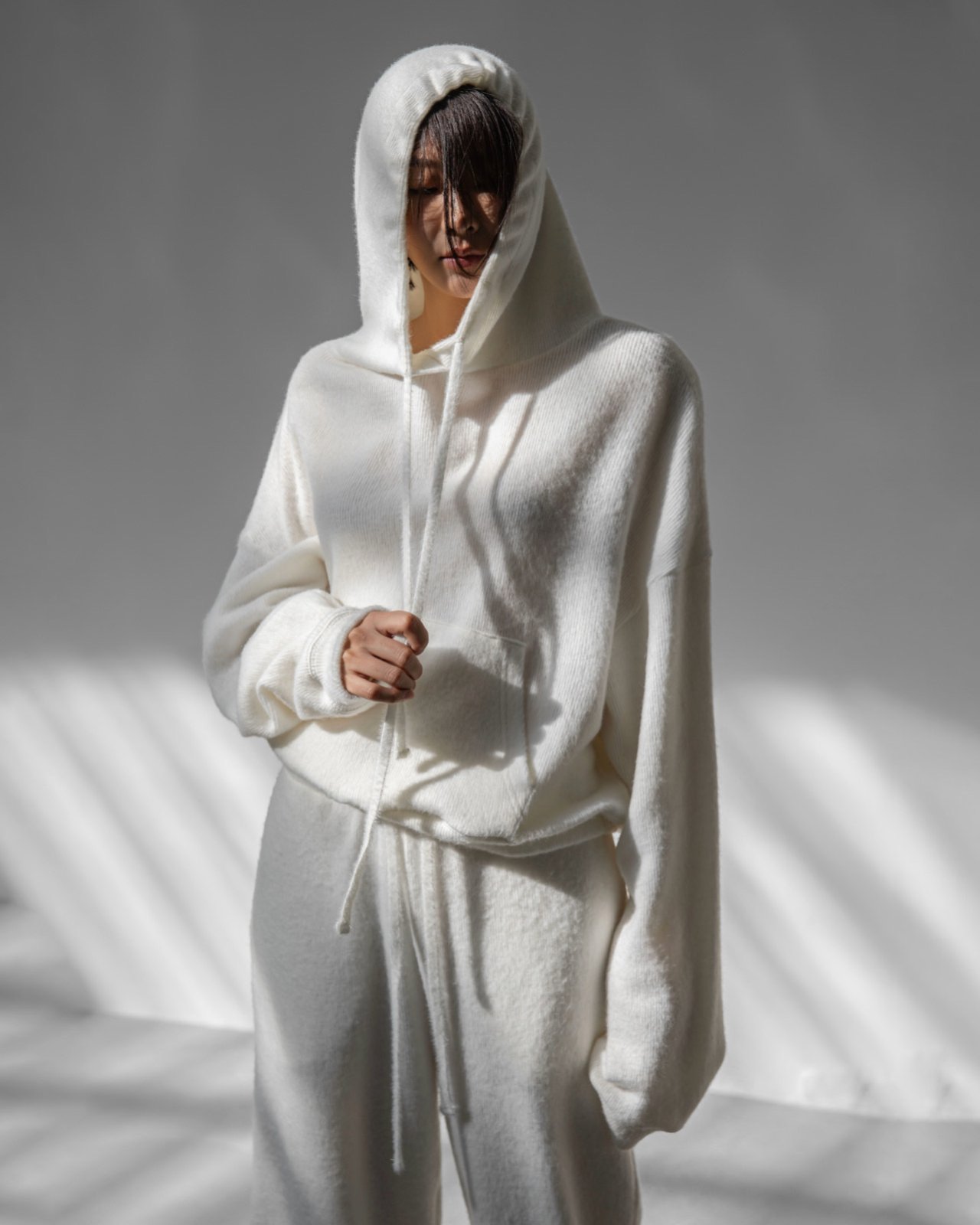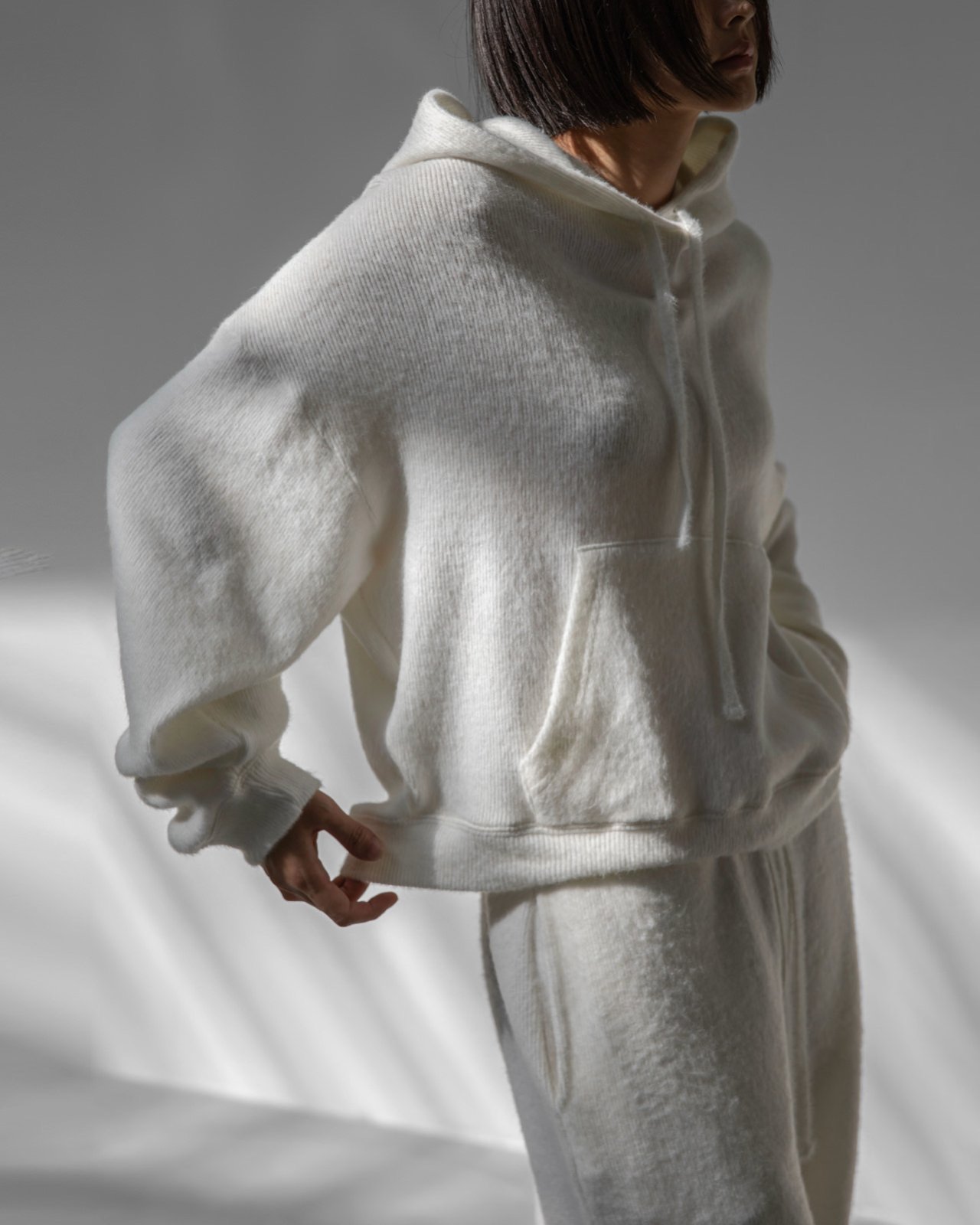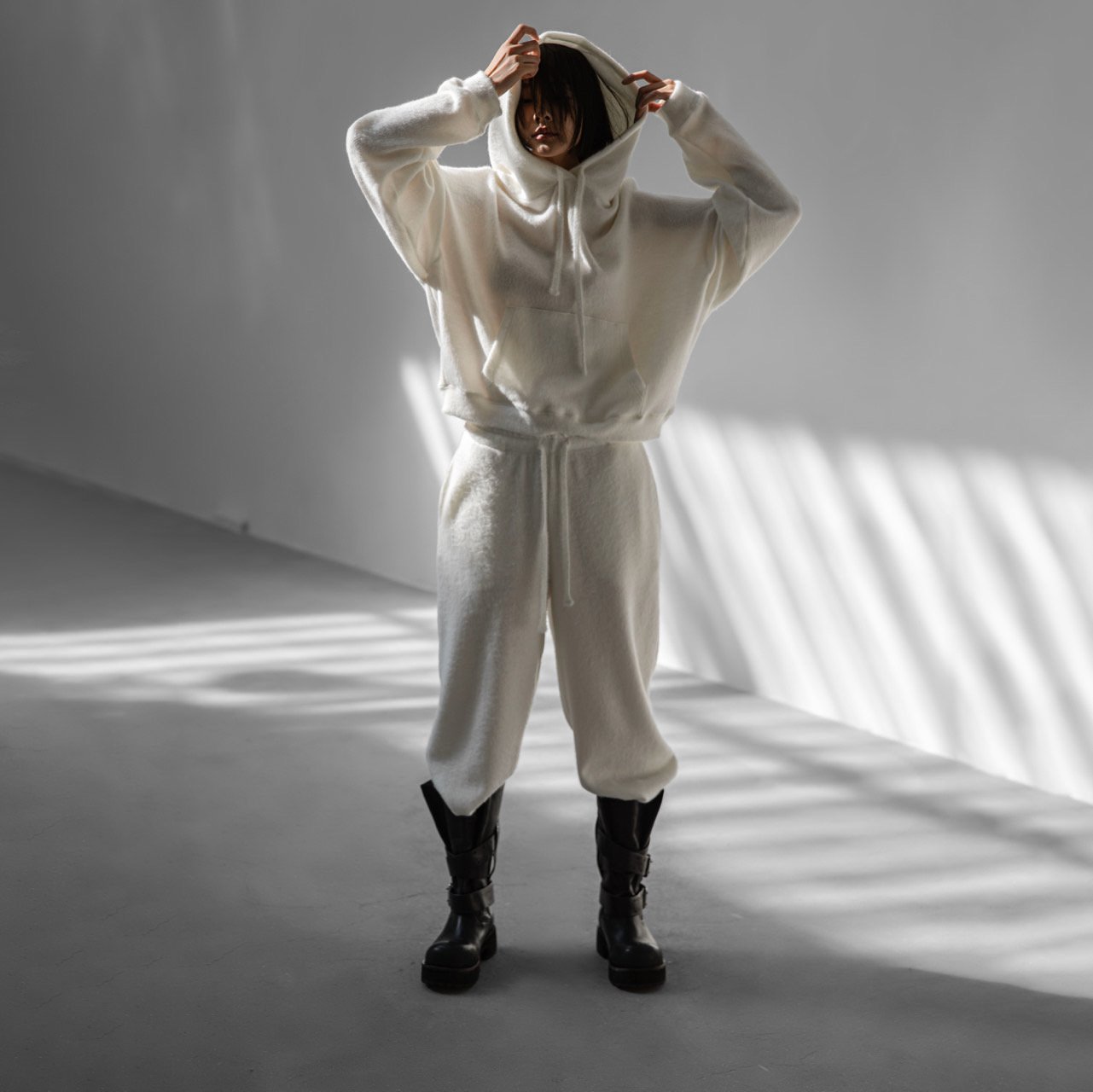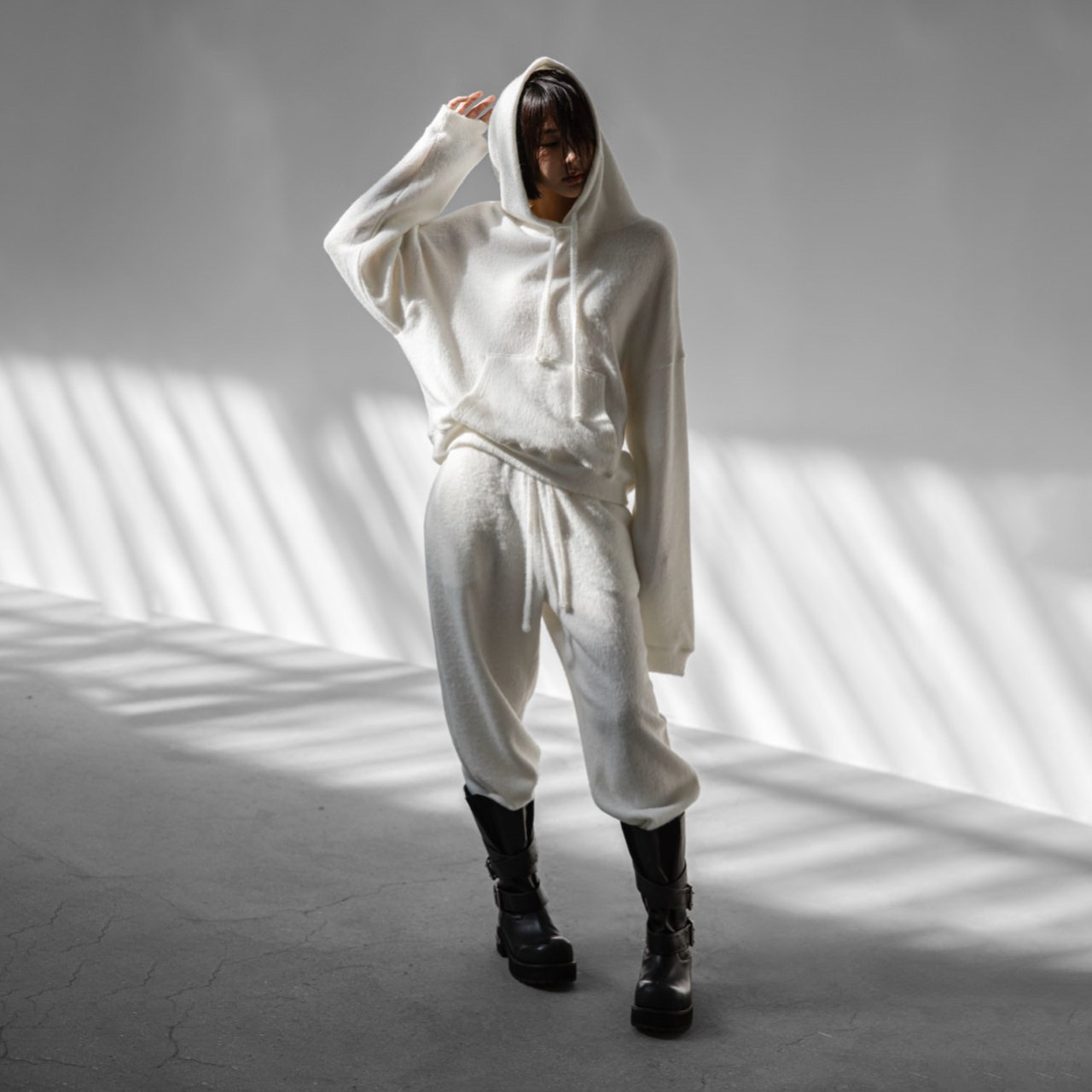 (PAPER MOON) HAIRY TEXTURE COZY HOODED TOP : CREAM