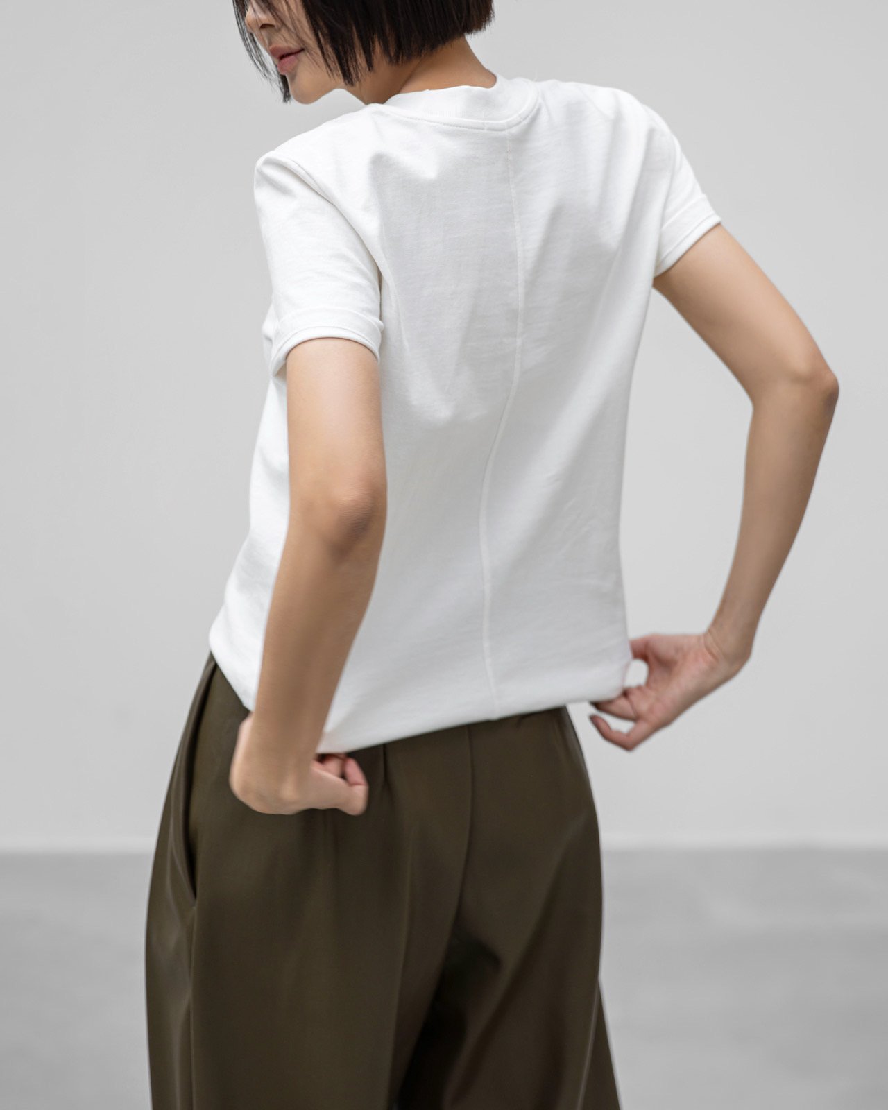 (PAPER MOON) CREW NECK ROUND SLIM TEE : WHITE