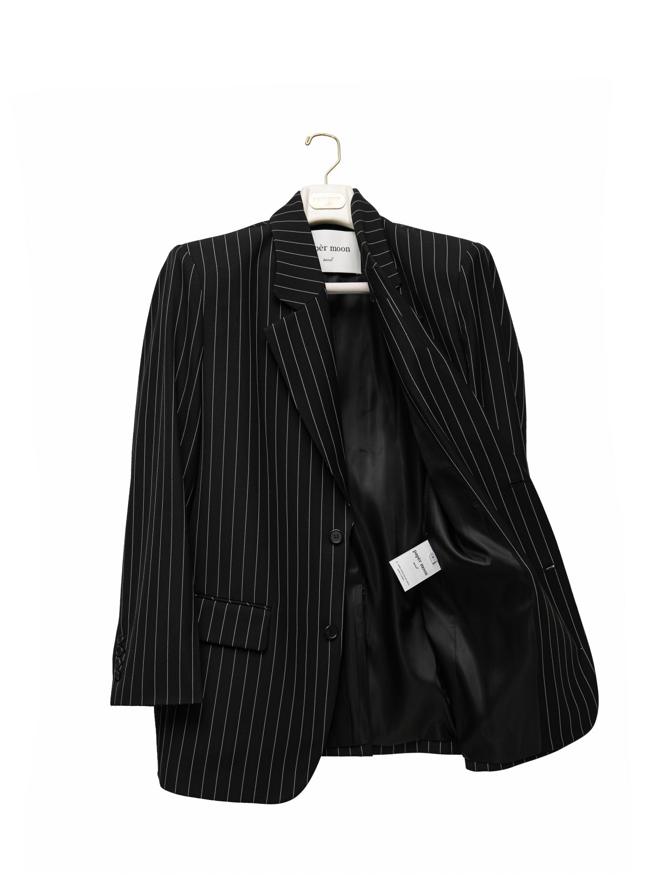 (PAPER MOON) WIDE PIN STRIPE SET UP SUIT SINGLE BLAZER : BLACK PIN STRIPE