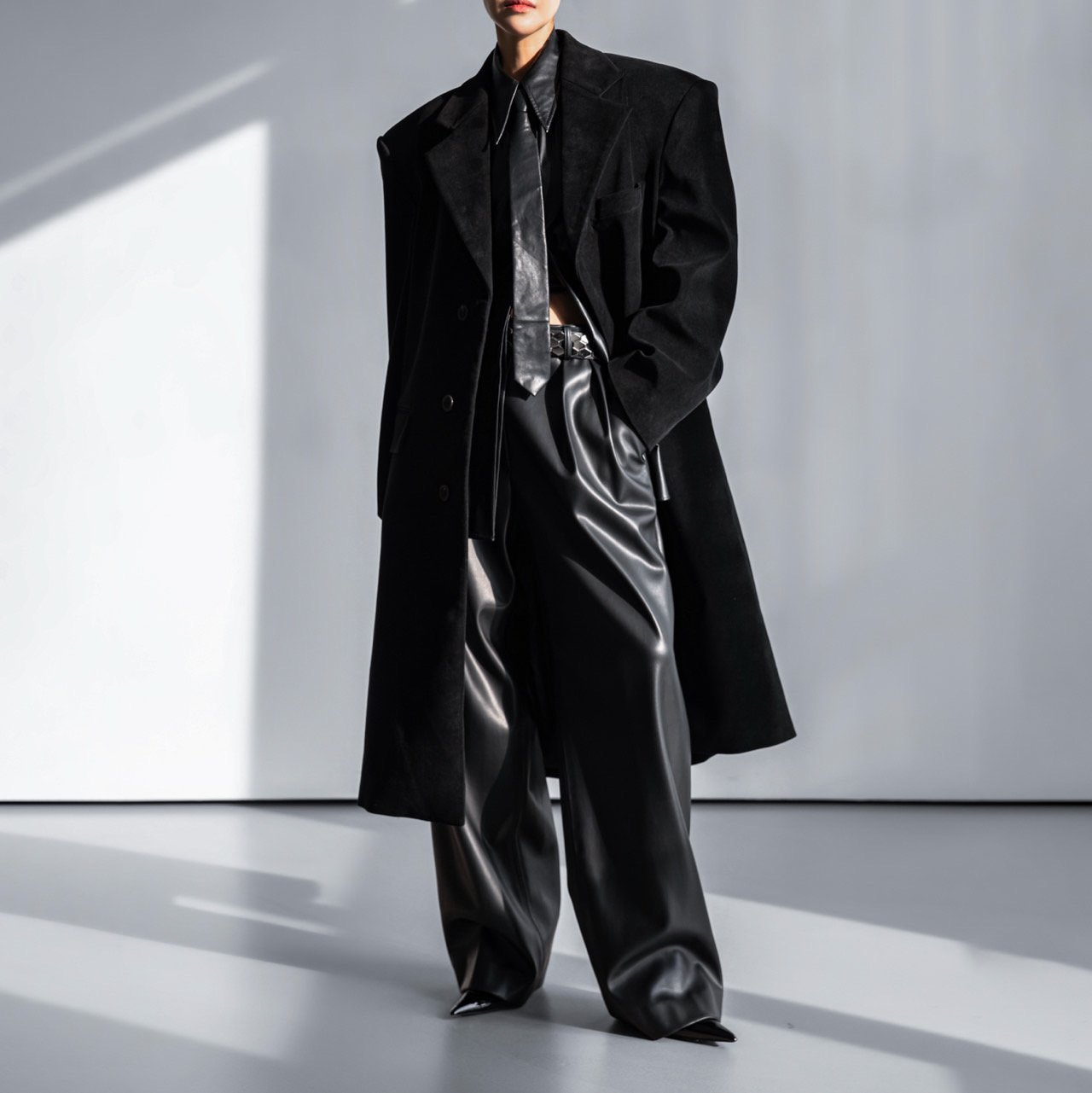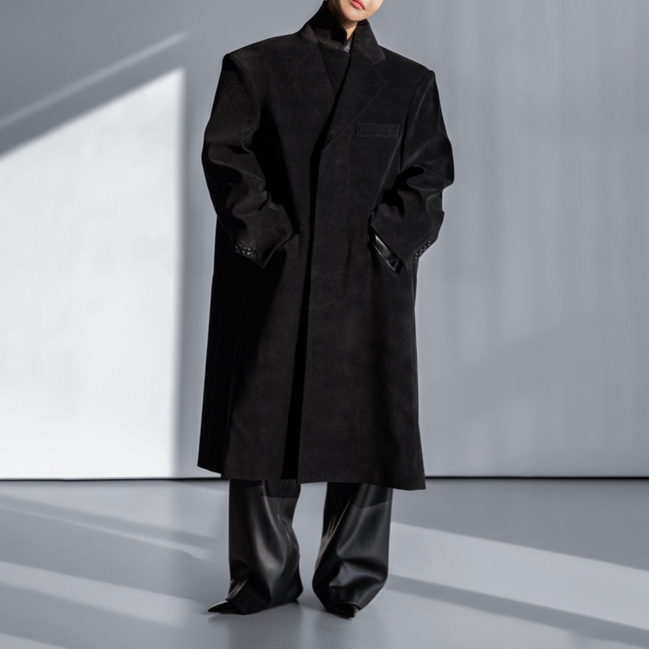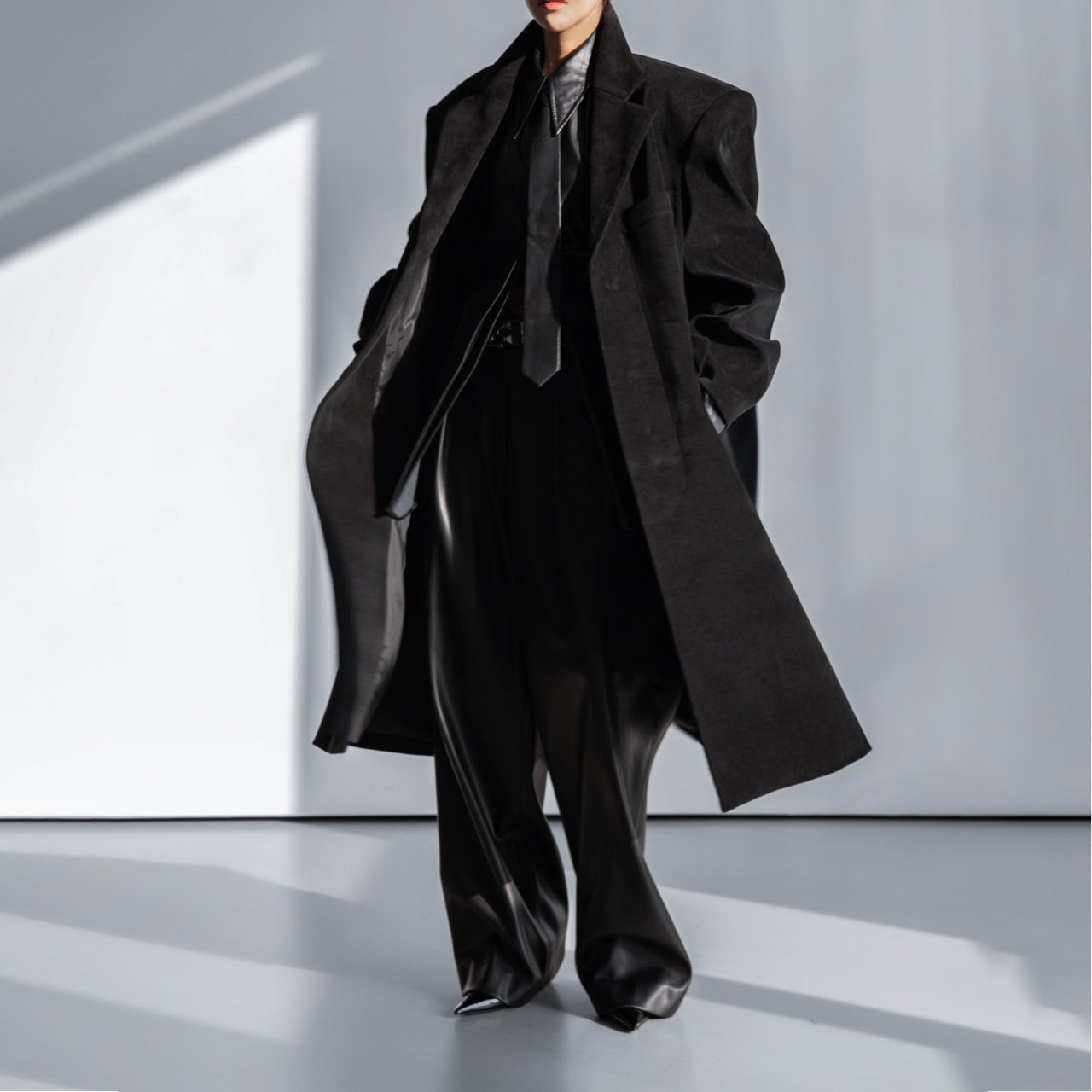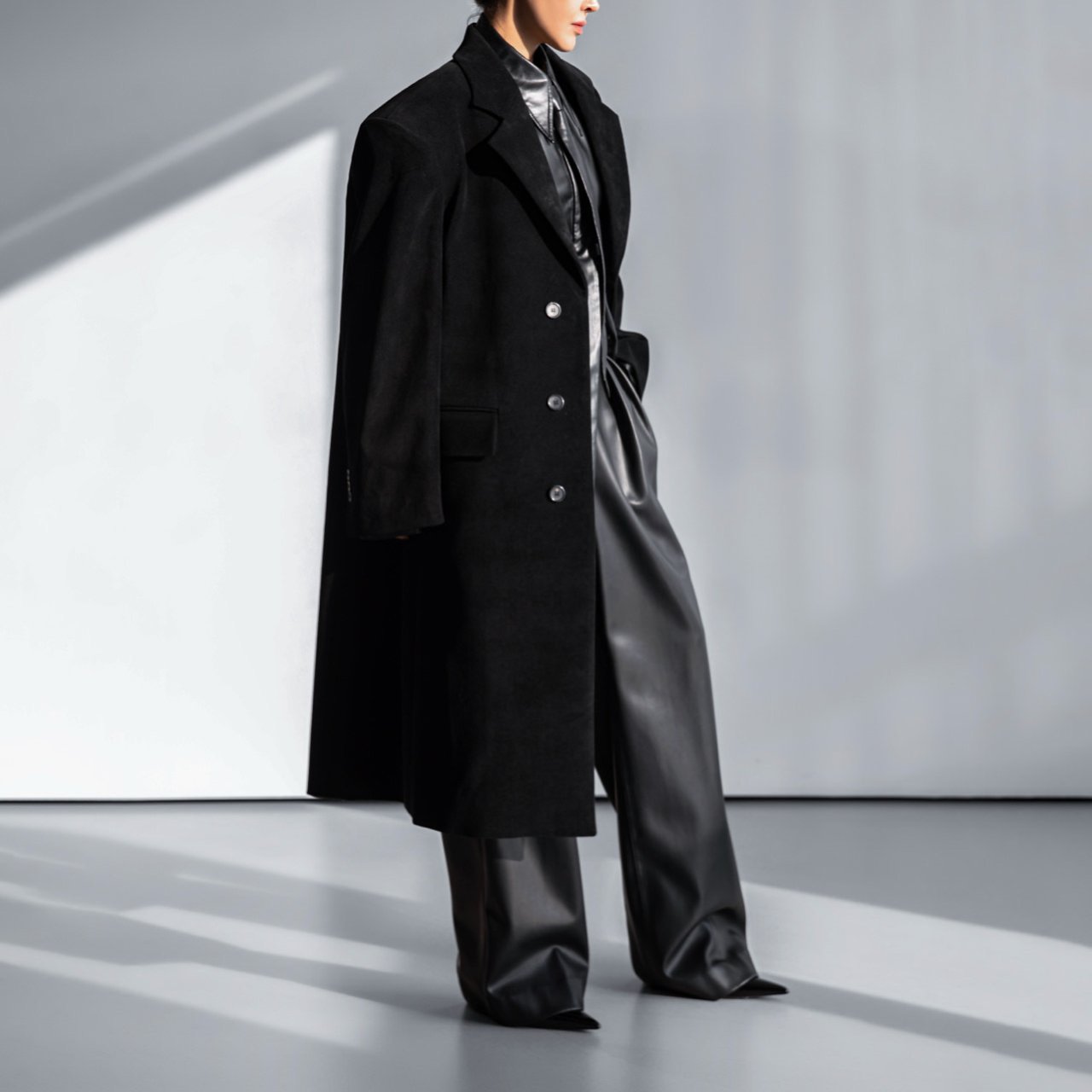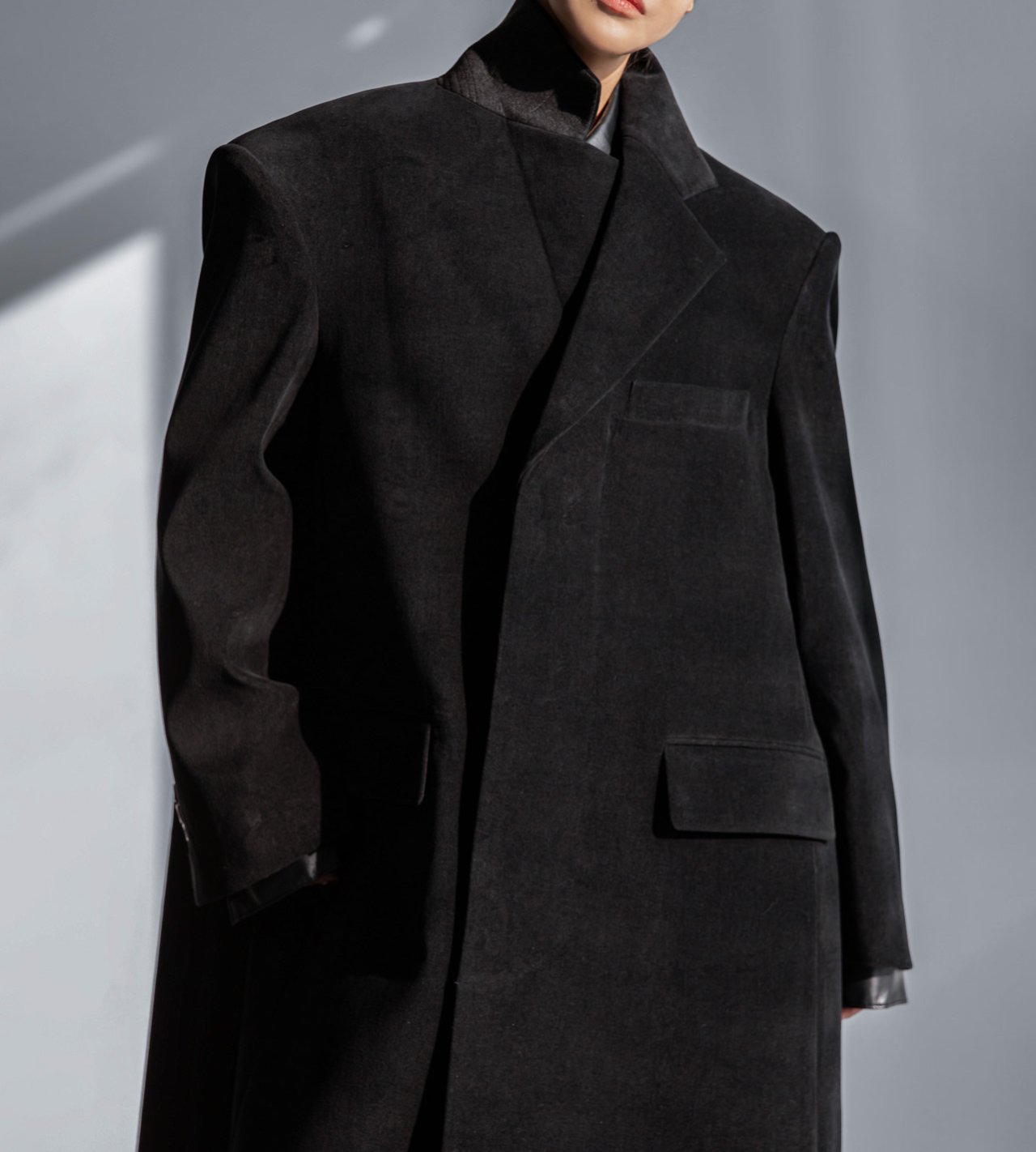(PAPER MOON) OVERSIZED HIDDEN BUTTON SINGLE DOBBY COAT : BLACK