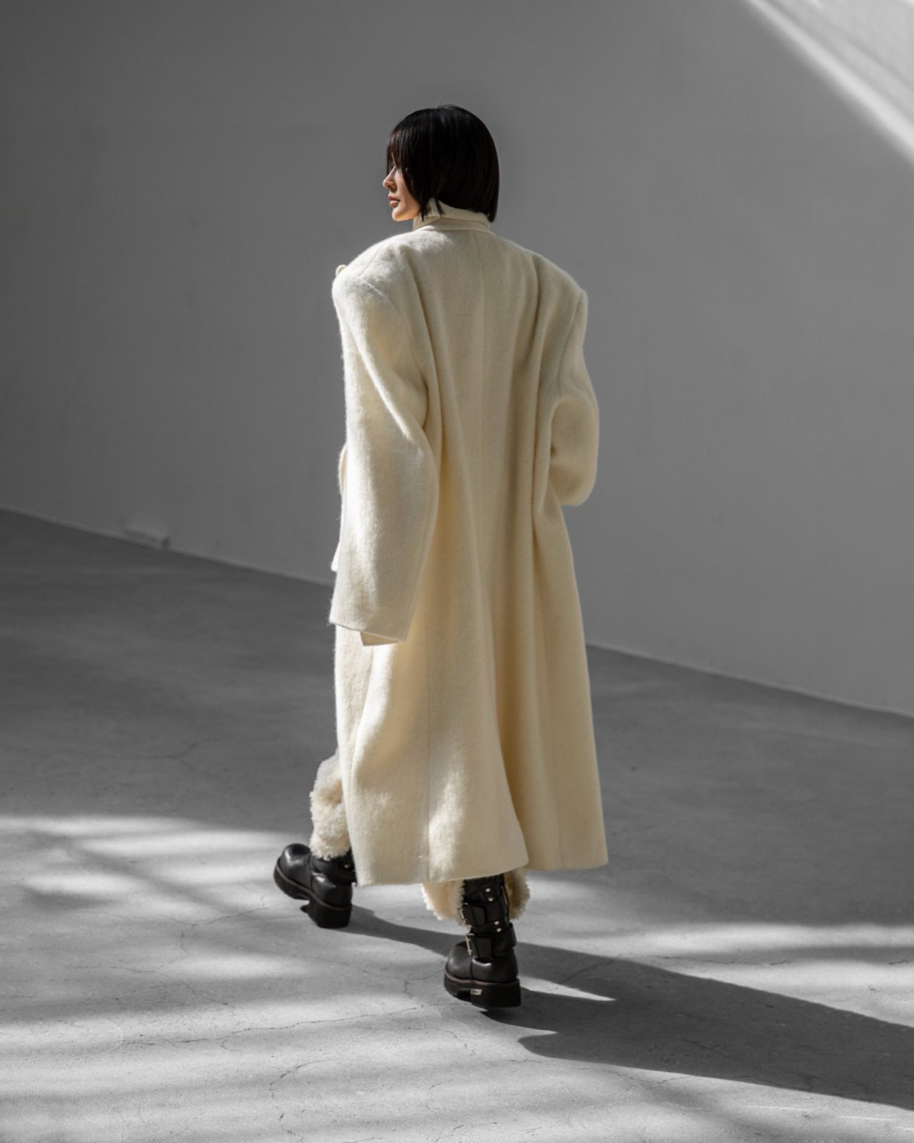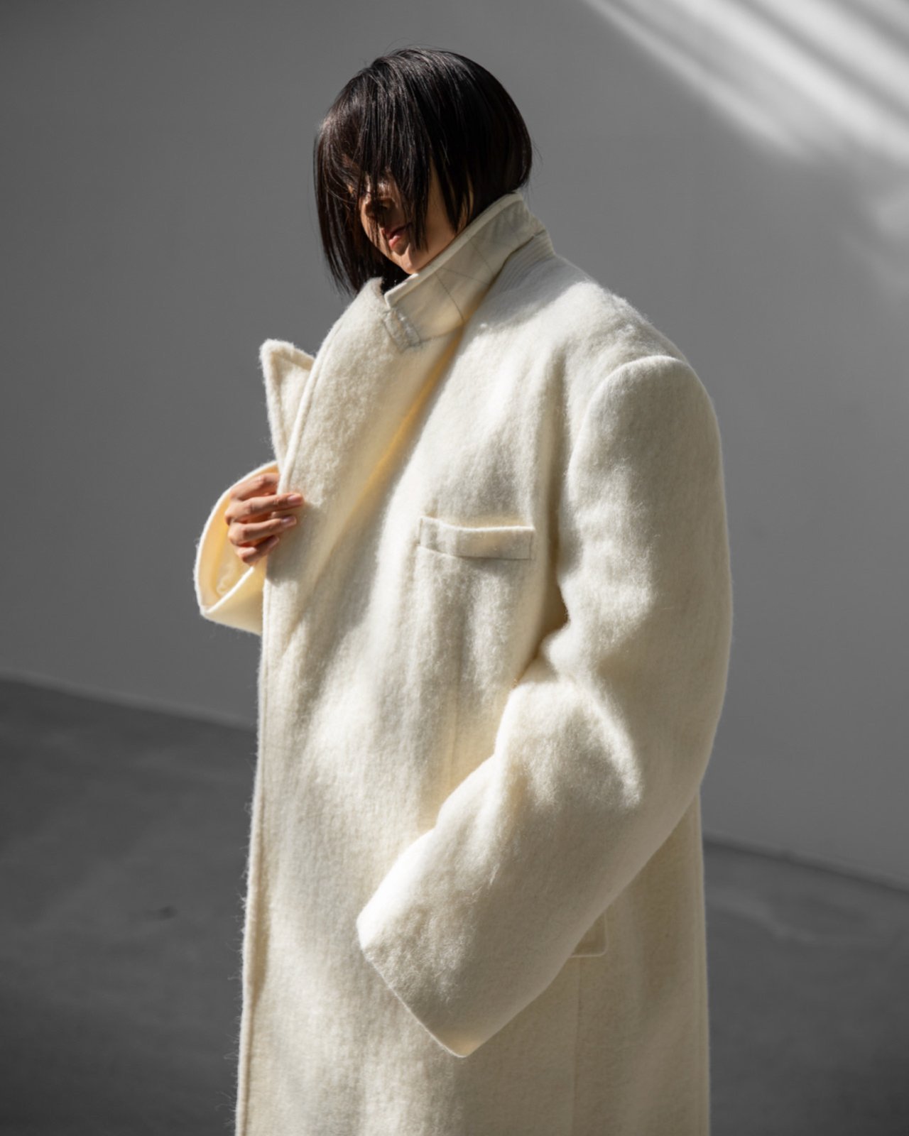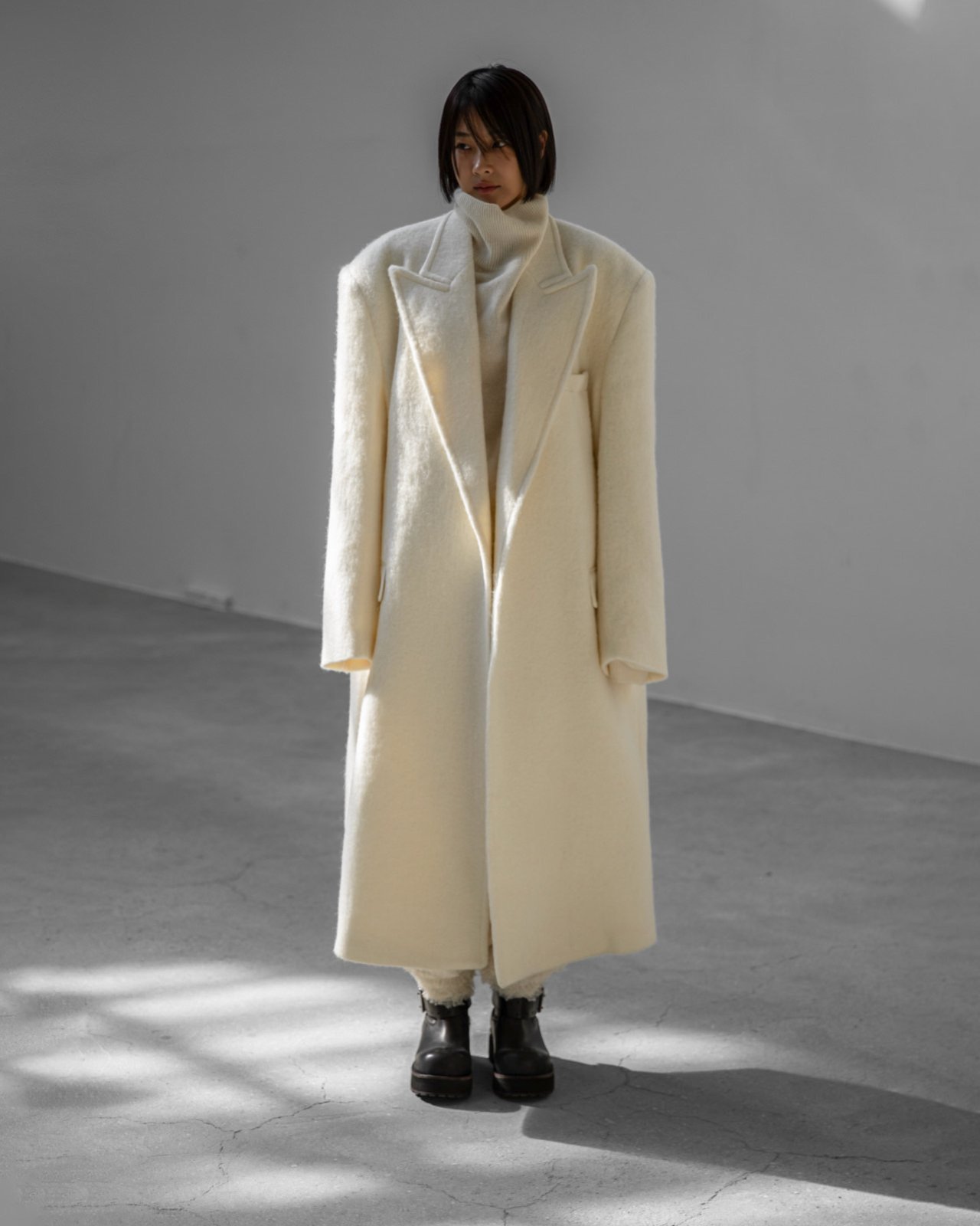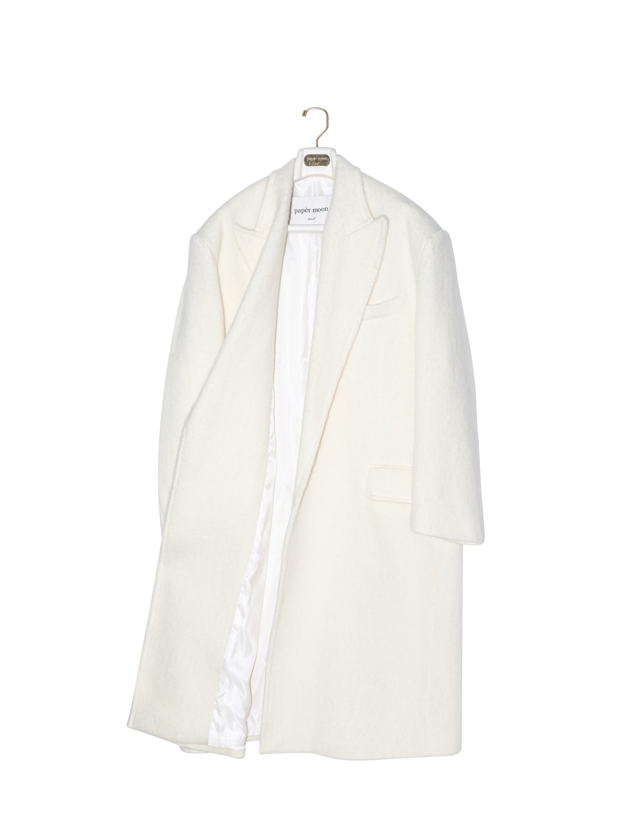 (PAPER MOON) PEAKED LAPEL DETAIL MOHAIR MAXI OVERSIZED COAT : CREAM