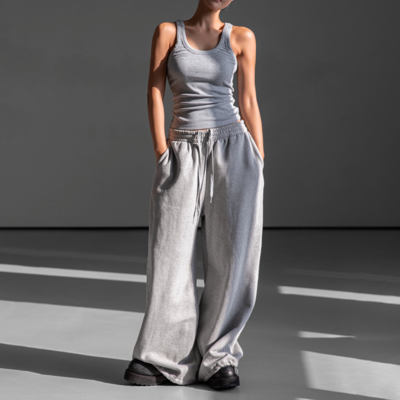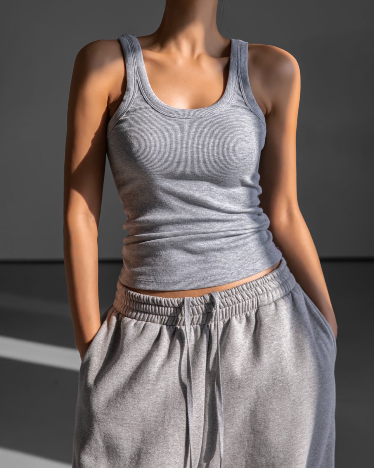 (PAPER MOON) SLEEVELESS RIB JERSEY TANK TOP : HEATHER GREY