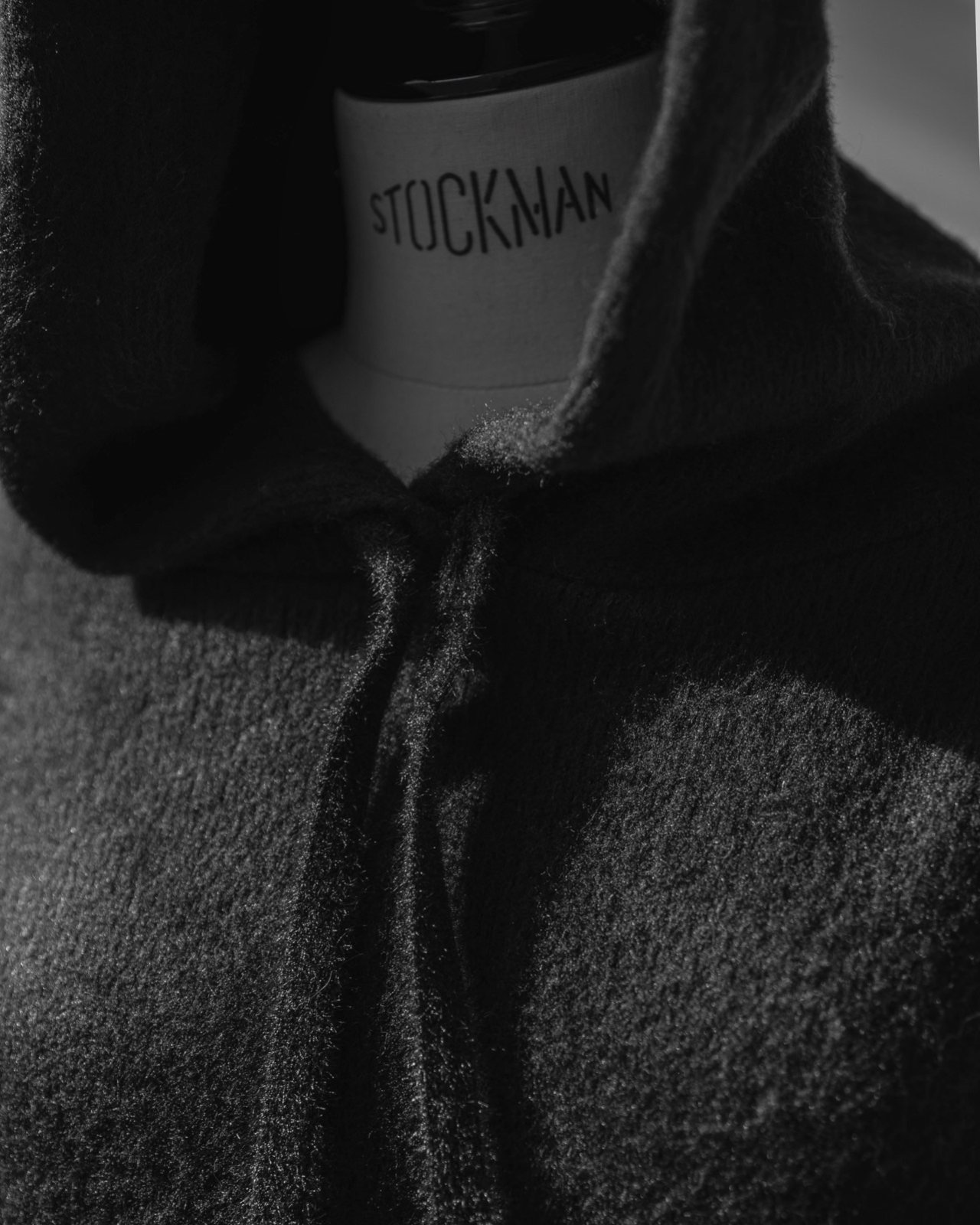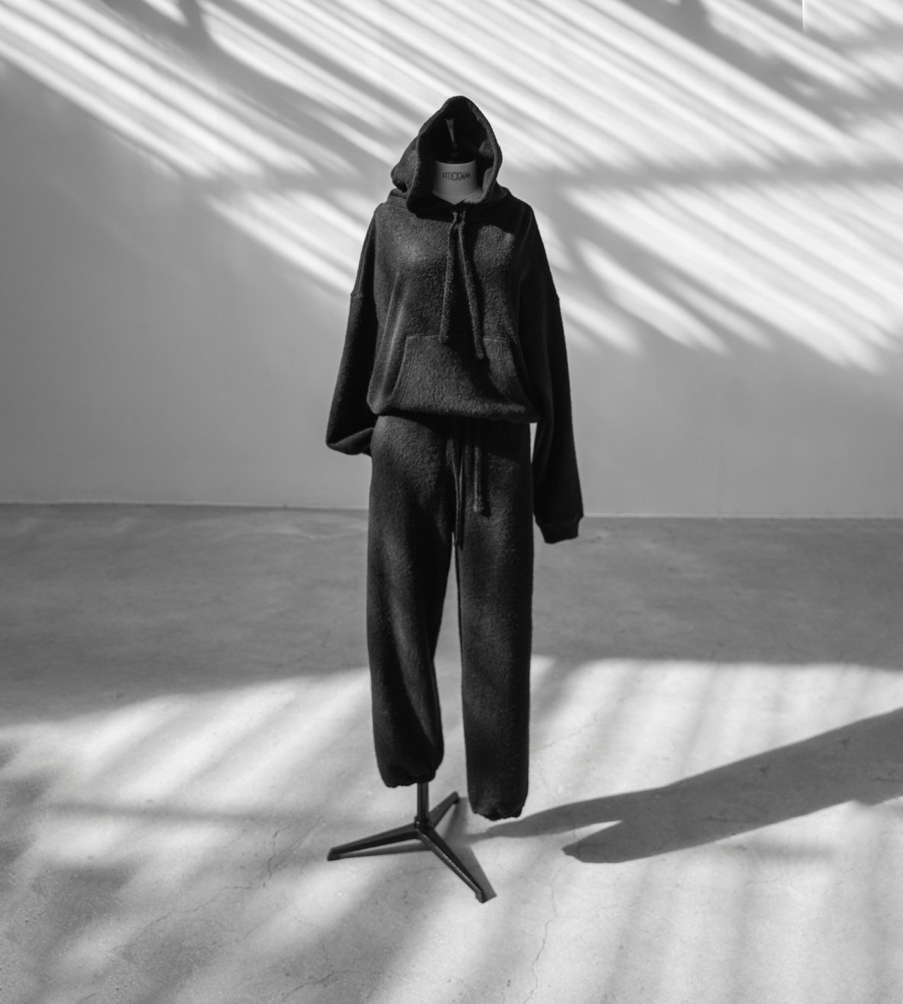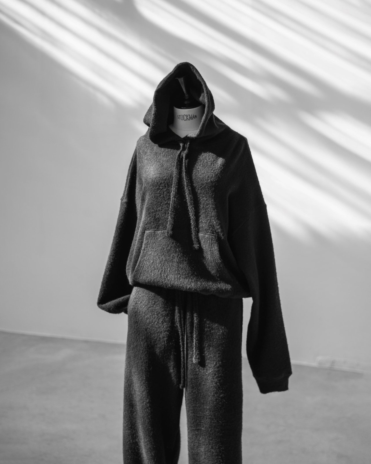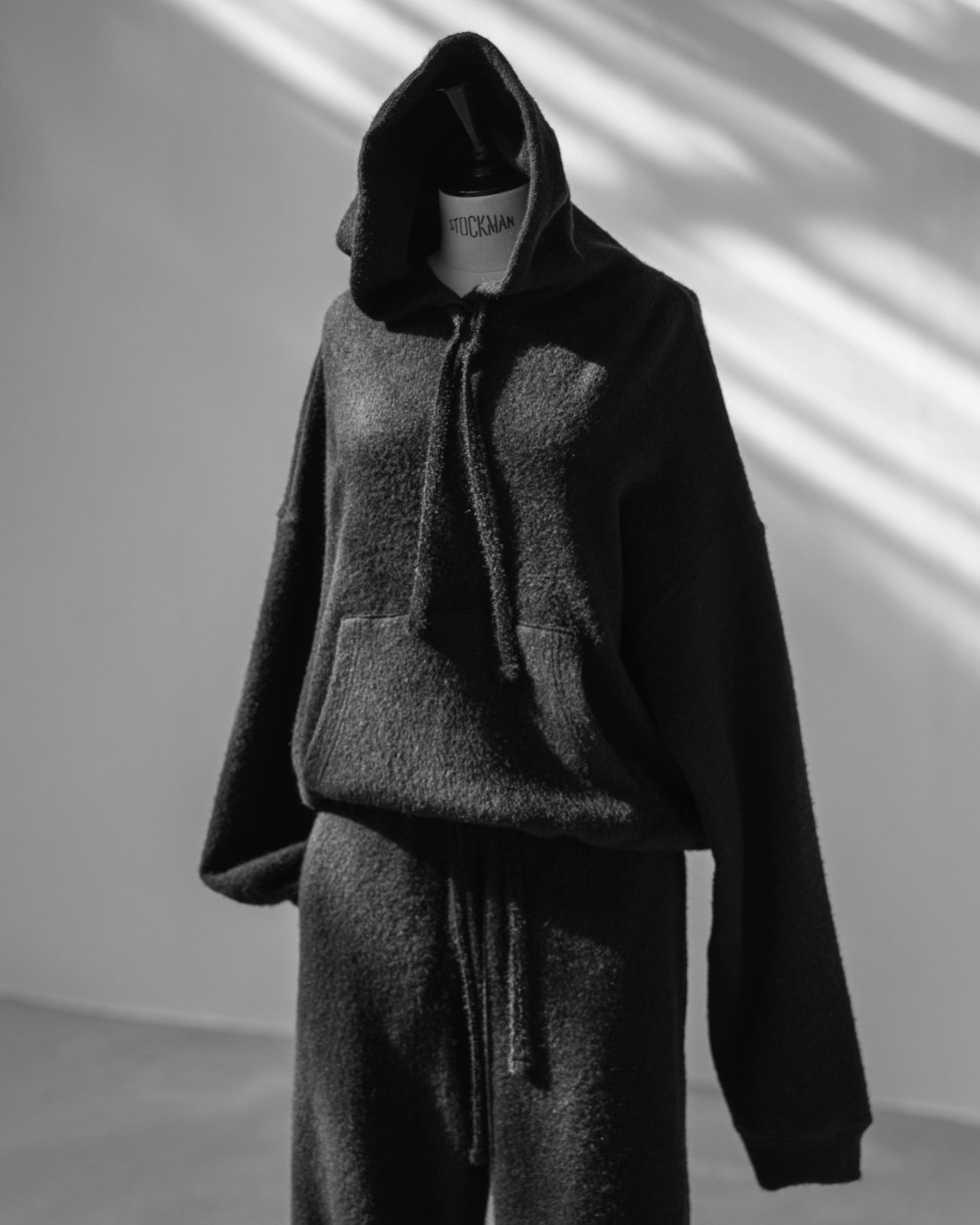 (PAPER MOON) HAIRY TEXTURE COZY HOODED TOP : BLACK