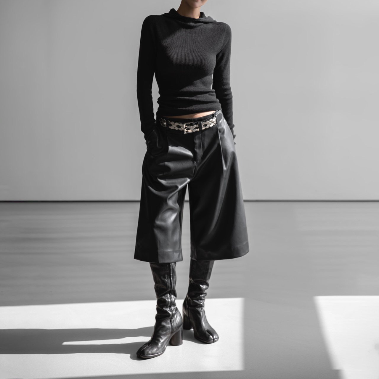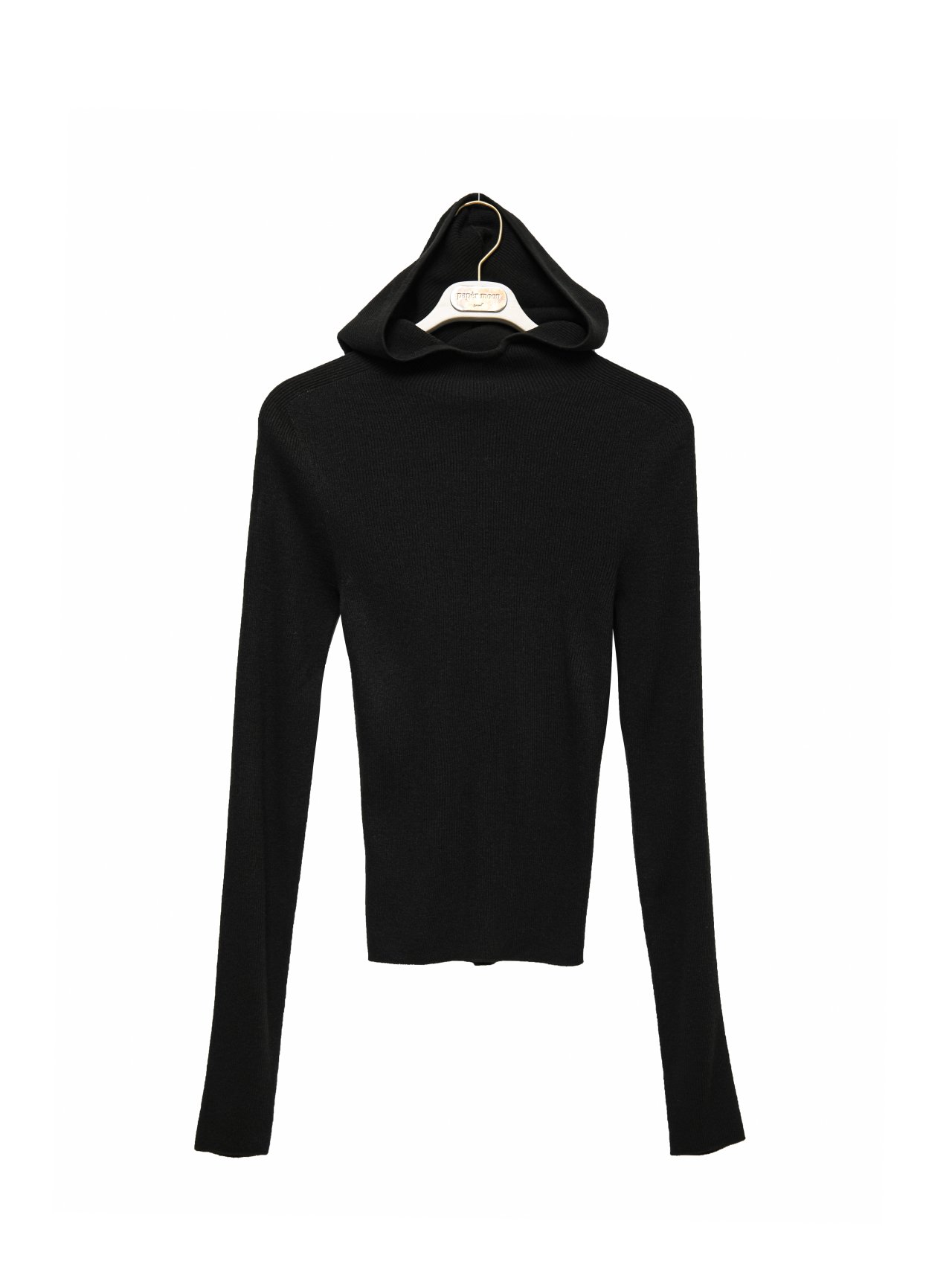 (PAPER MOON) WHOLE GARMENT HOODED KNIT TOP : BLACK