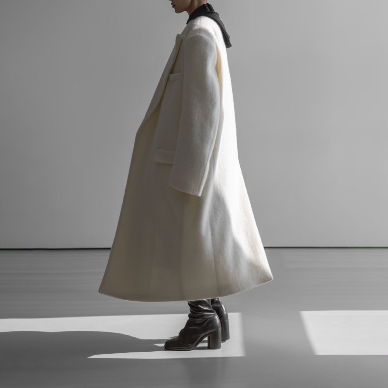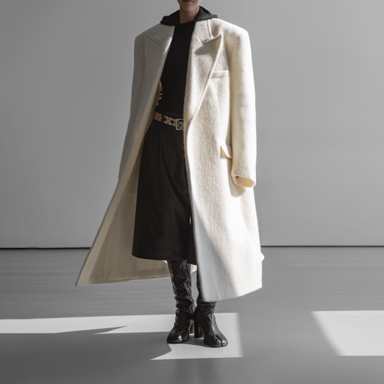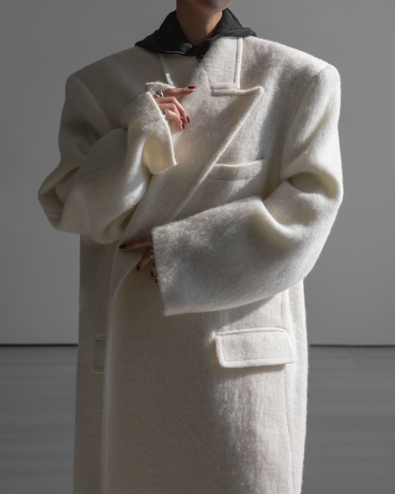 (PAPER MOON) PEAKED LAPEL DETAIL MOHAIR MAXI OVERSIZED COAT : CREAM