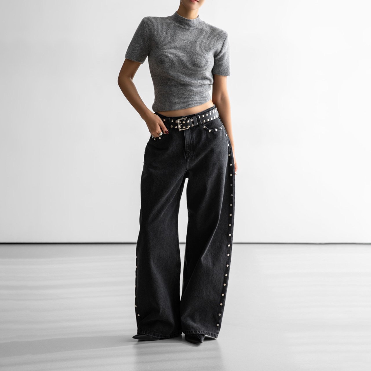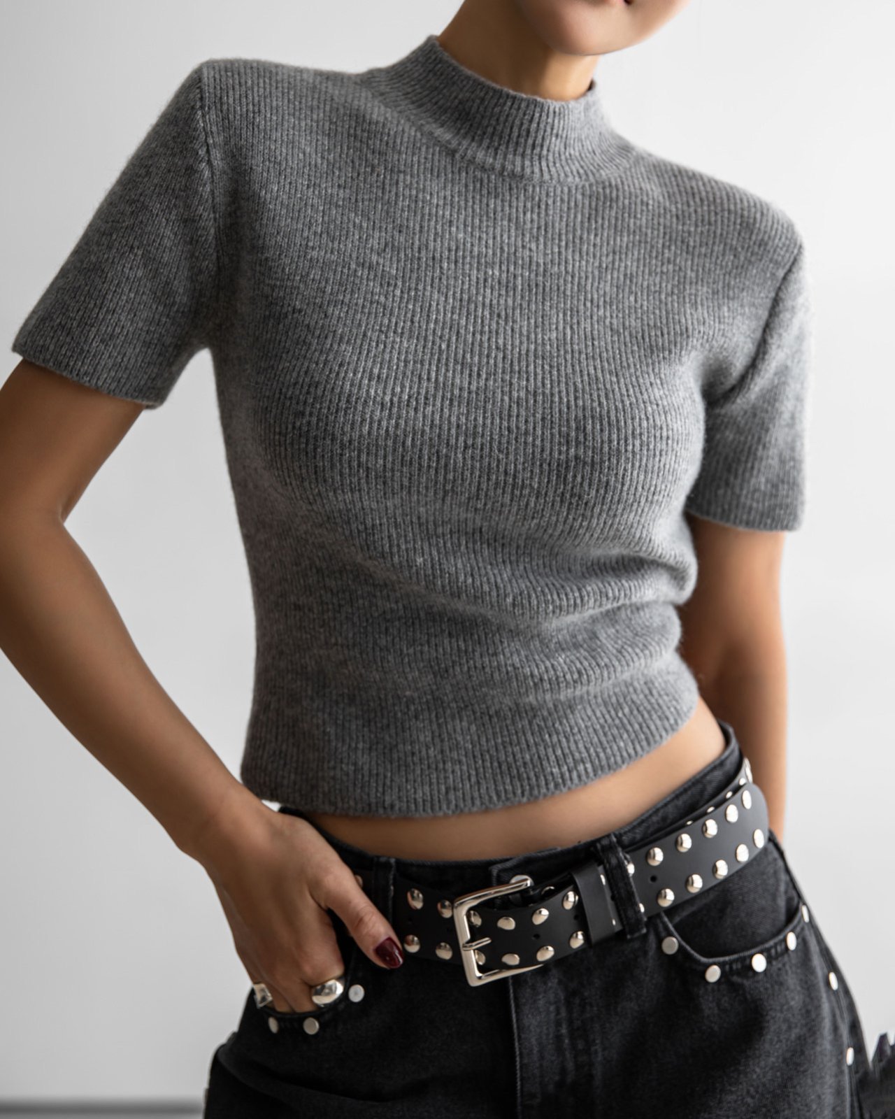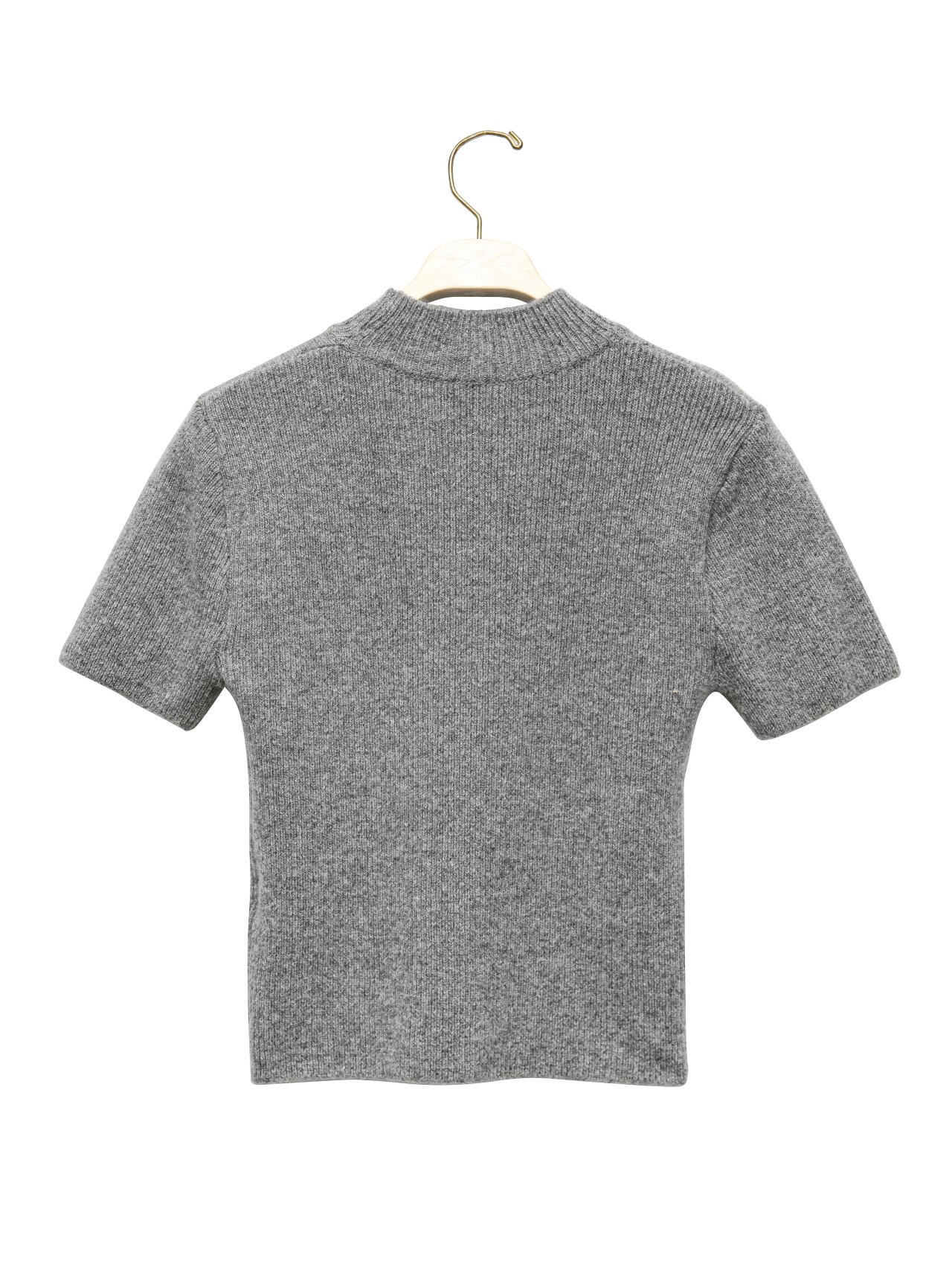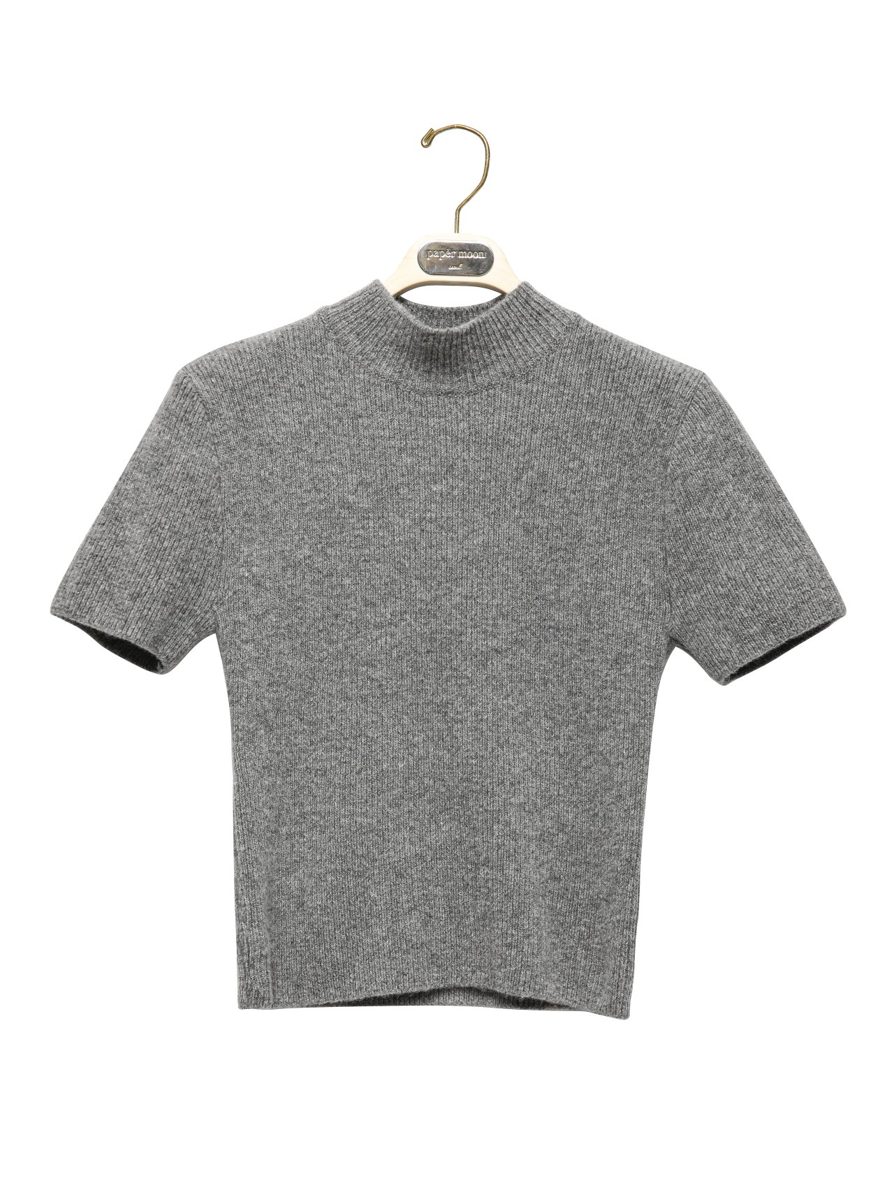 (PAPER MOON) CASHMERE WOOL HALF TURTLE NECK CROPPED KNIT TOP : GREY
