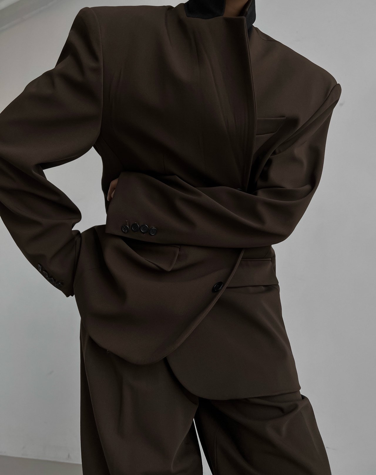 (PAPER MOON) OVERSIZED THREE BUTTON SINGLE BLAZER : BROWN