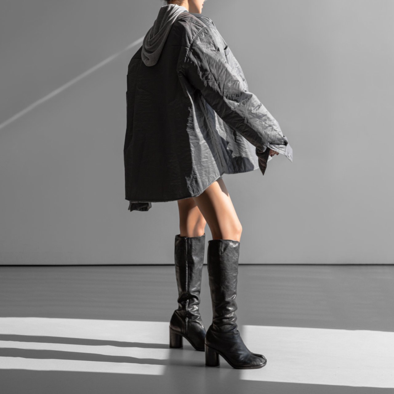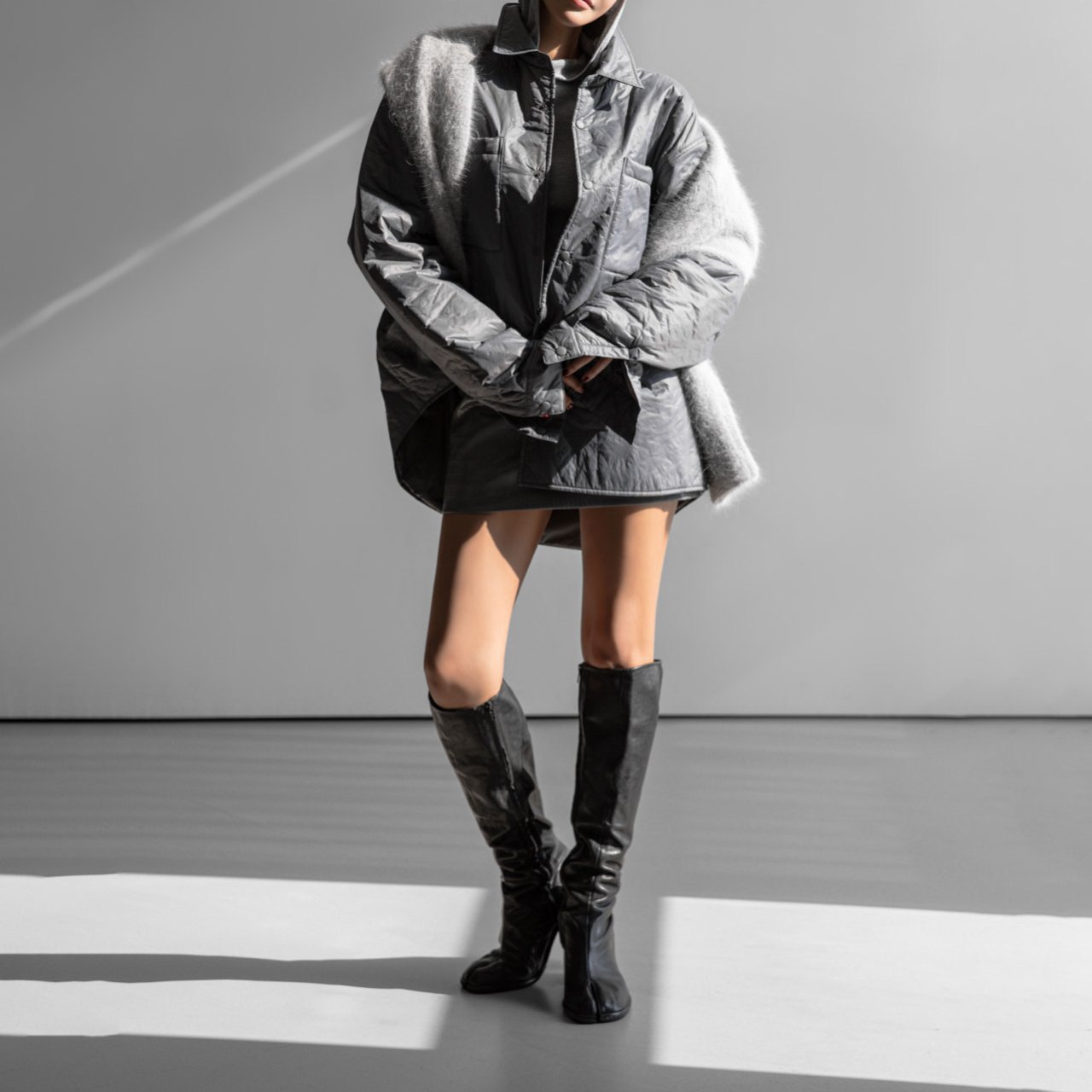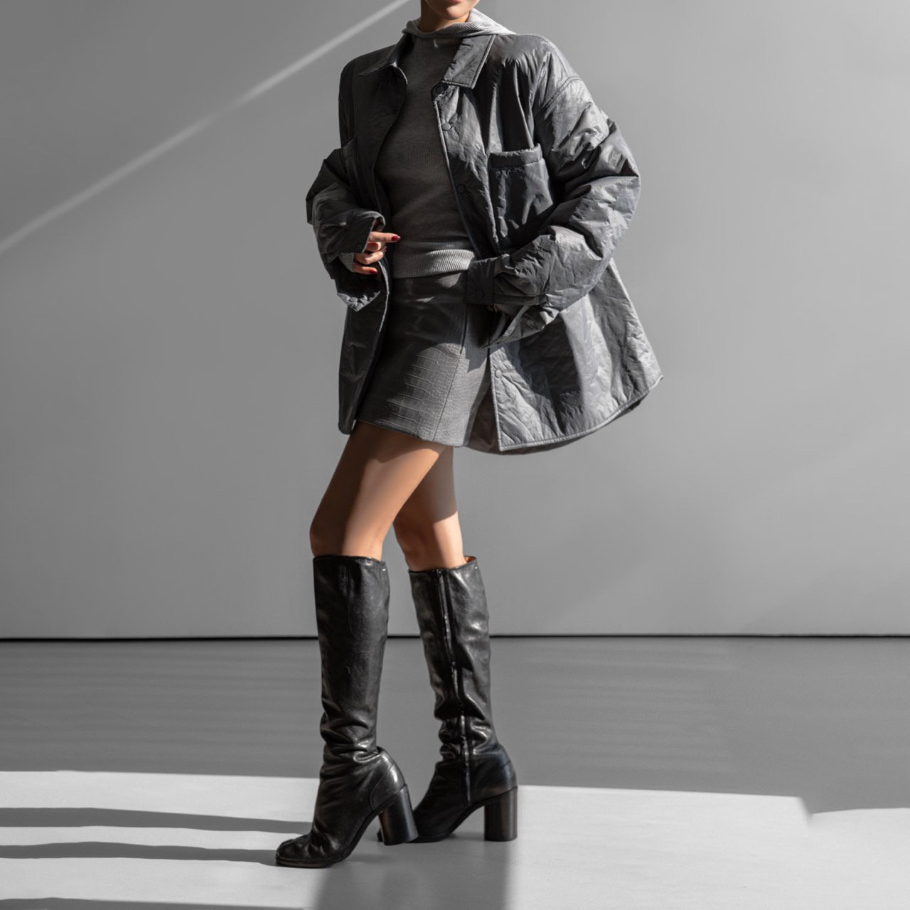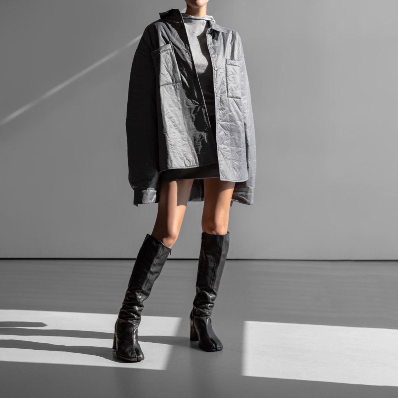 (PAPER MOON) OVERSIZED VIVID LIGHT PADDED BUTTON DOWN SHIRT : GREY