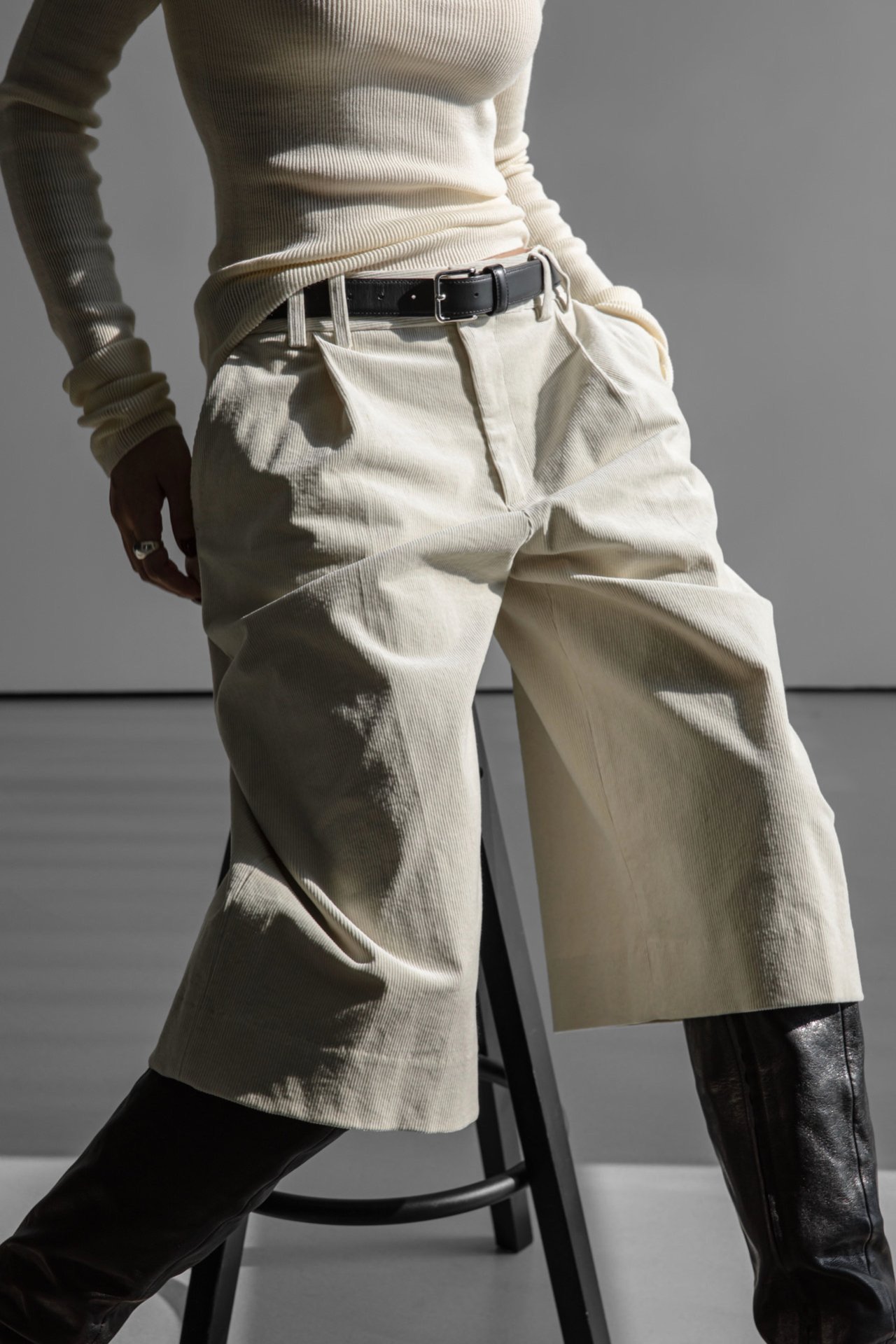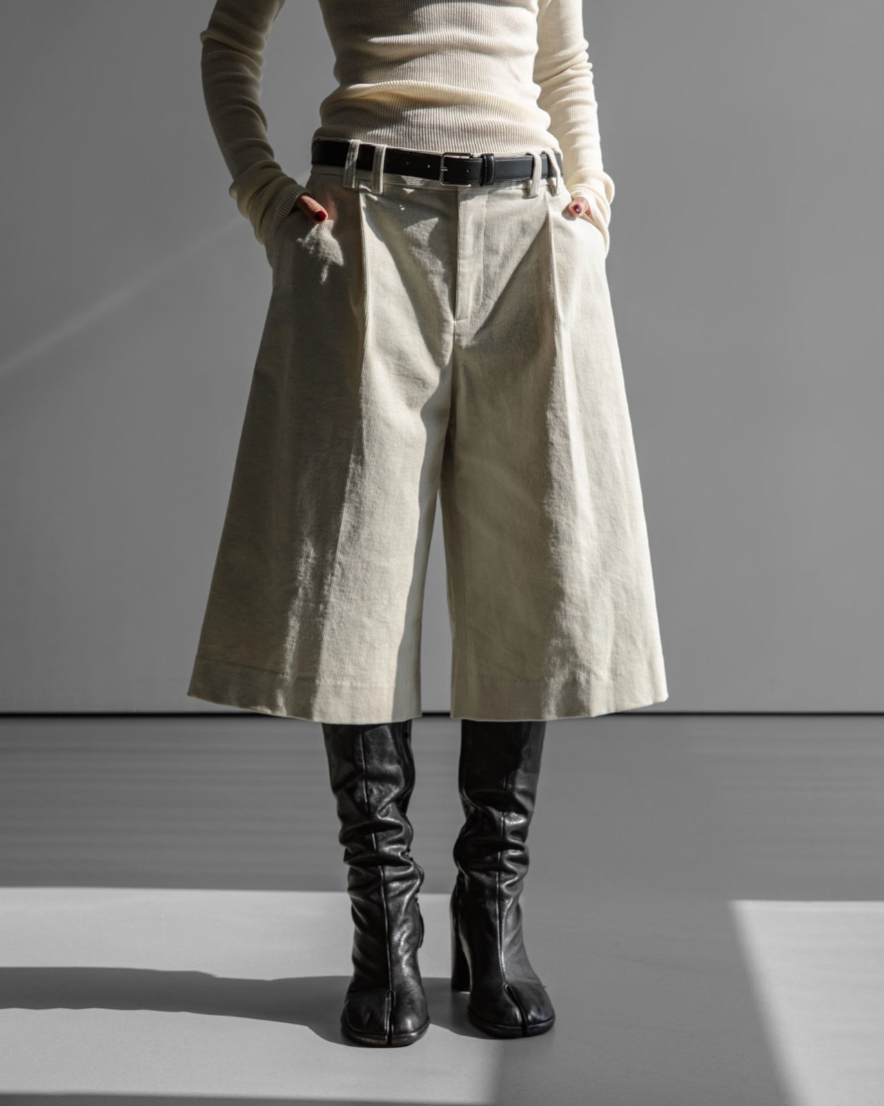 (PAPER MOON) CLASSIC CORDUROY BERMUDA PANTS : CREAM