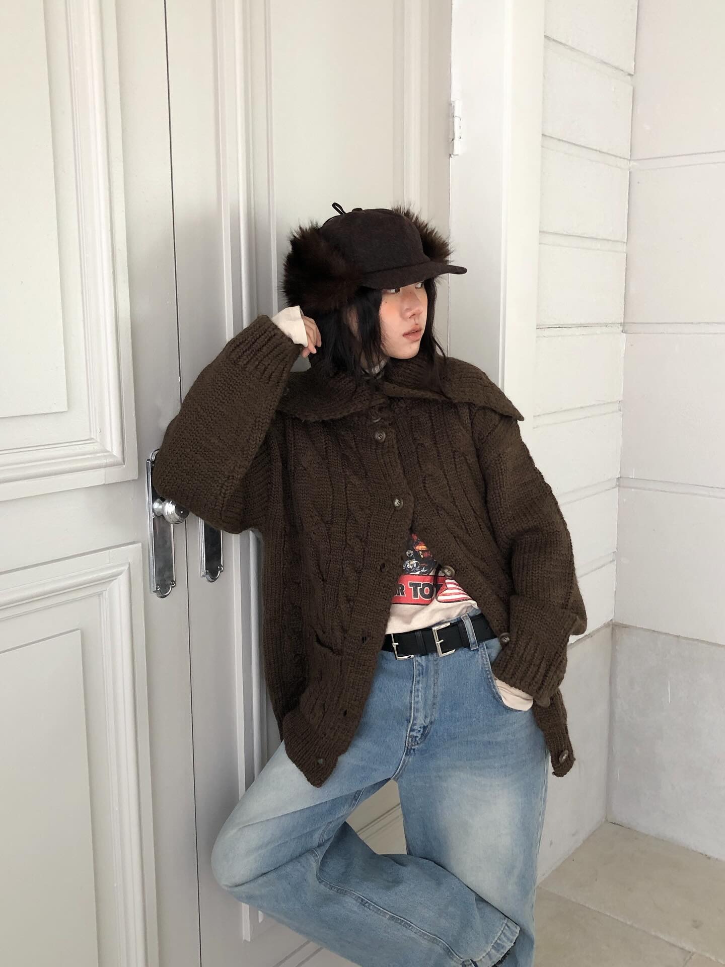 (TOM GIRL) CAPE CARDIGAN : BROWN