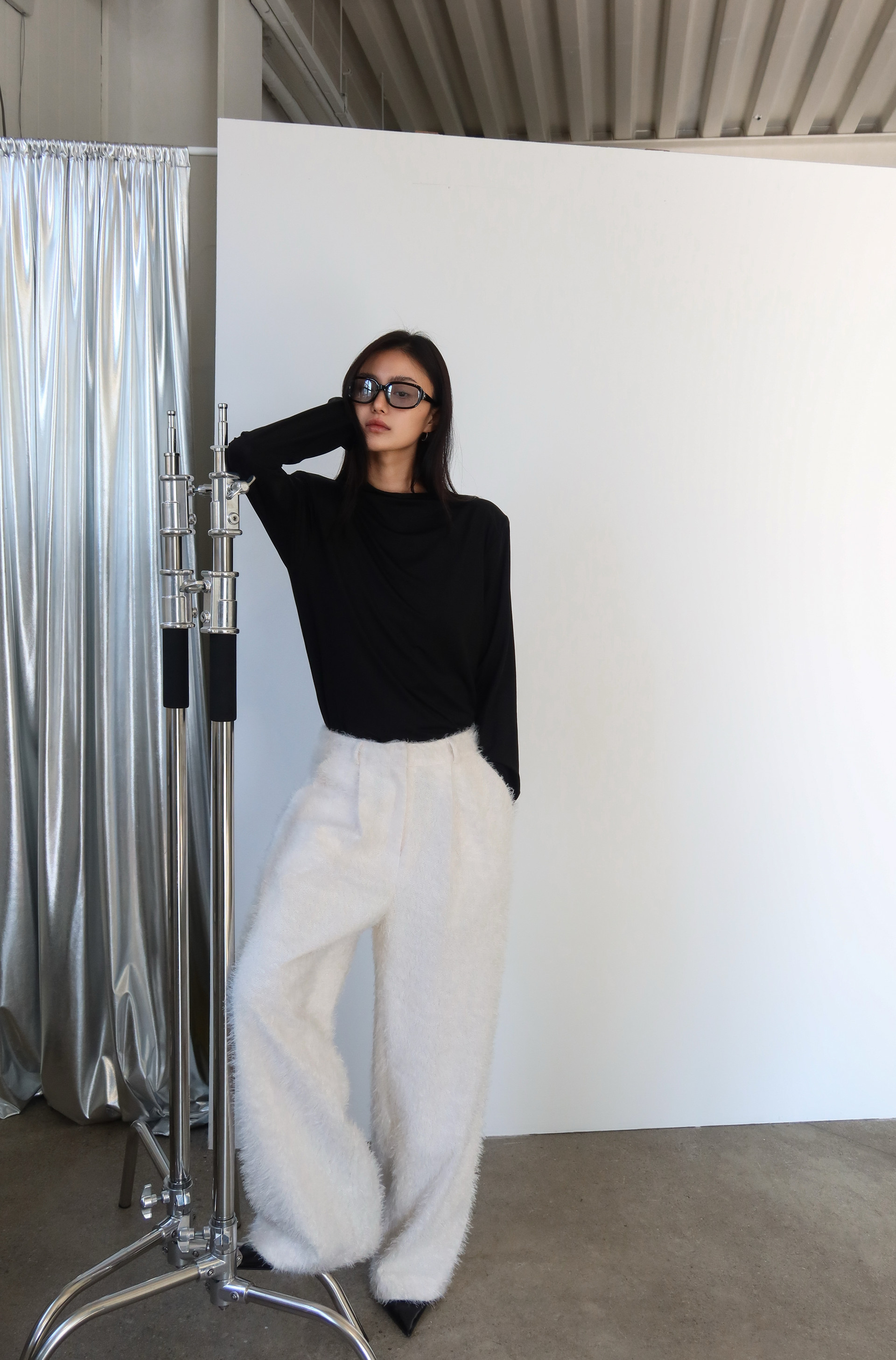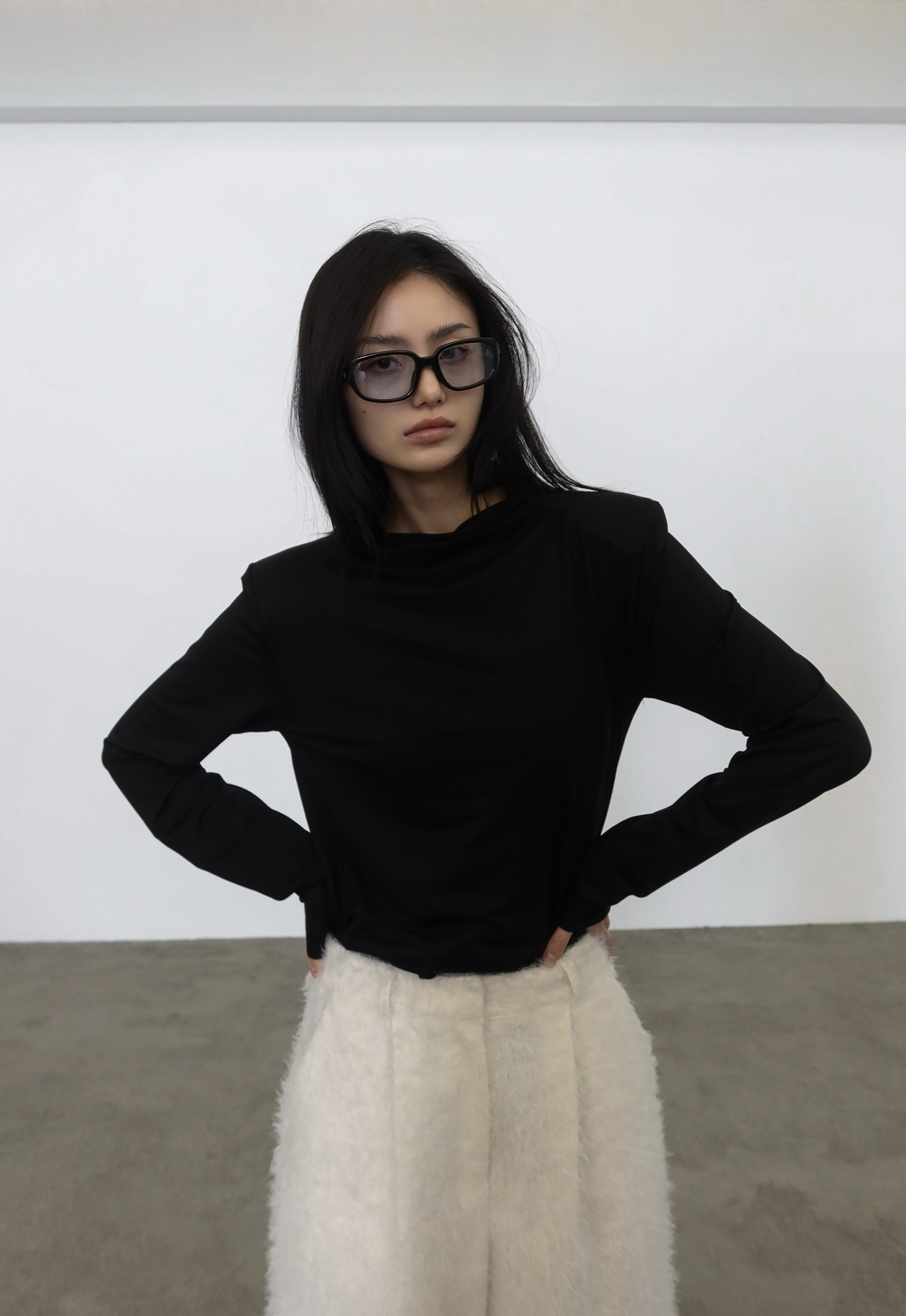 (BESIDE YOU) SILK PAD TOP_BLACK