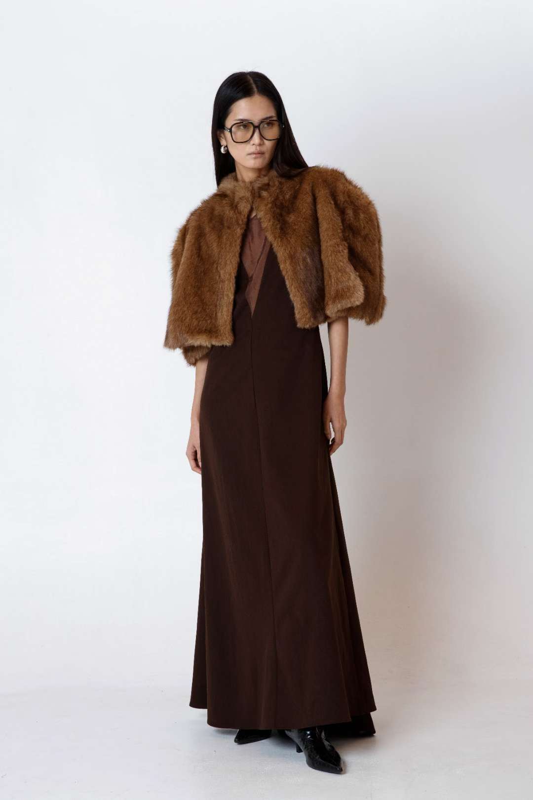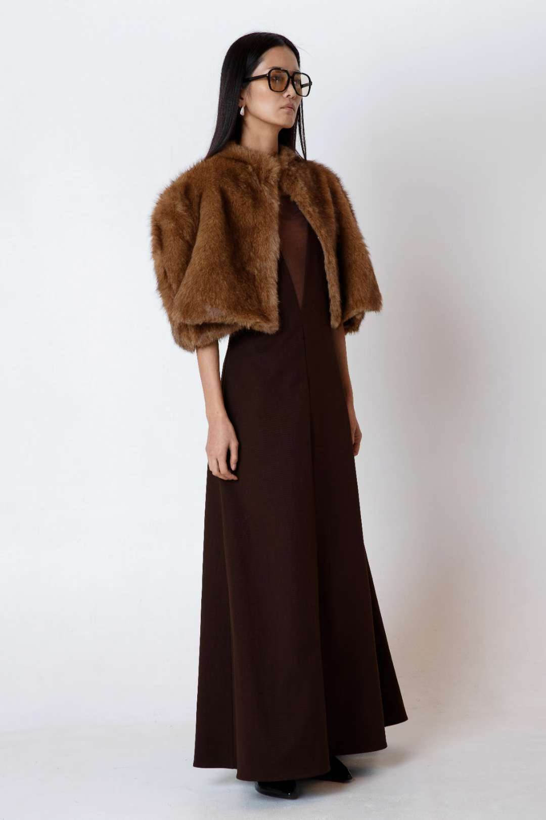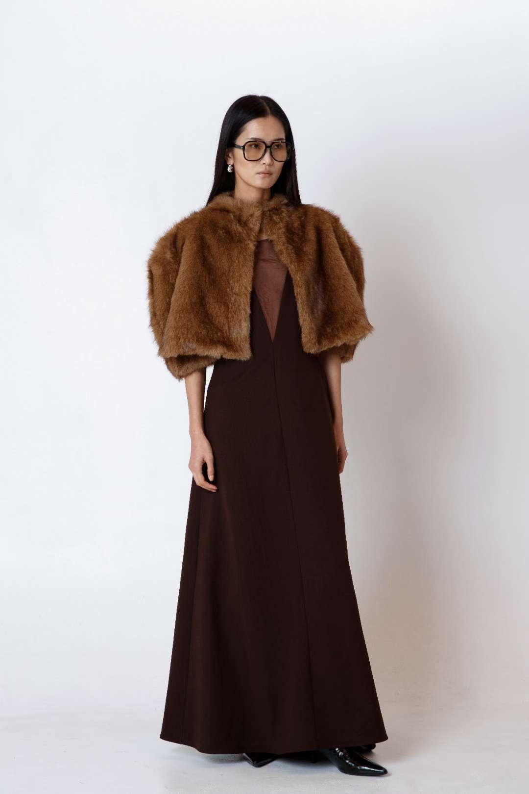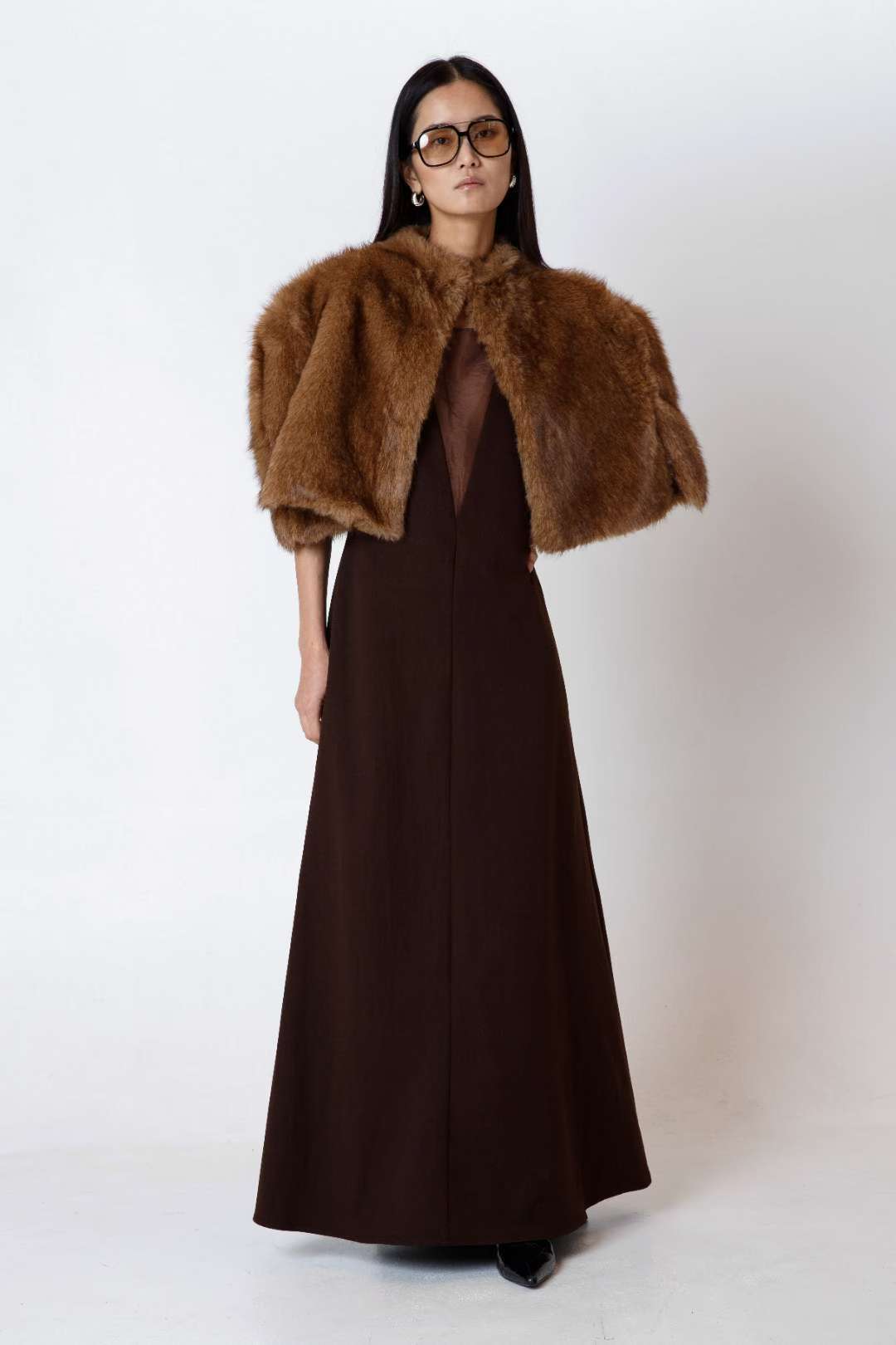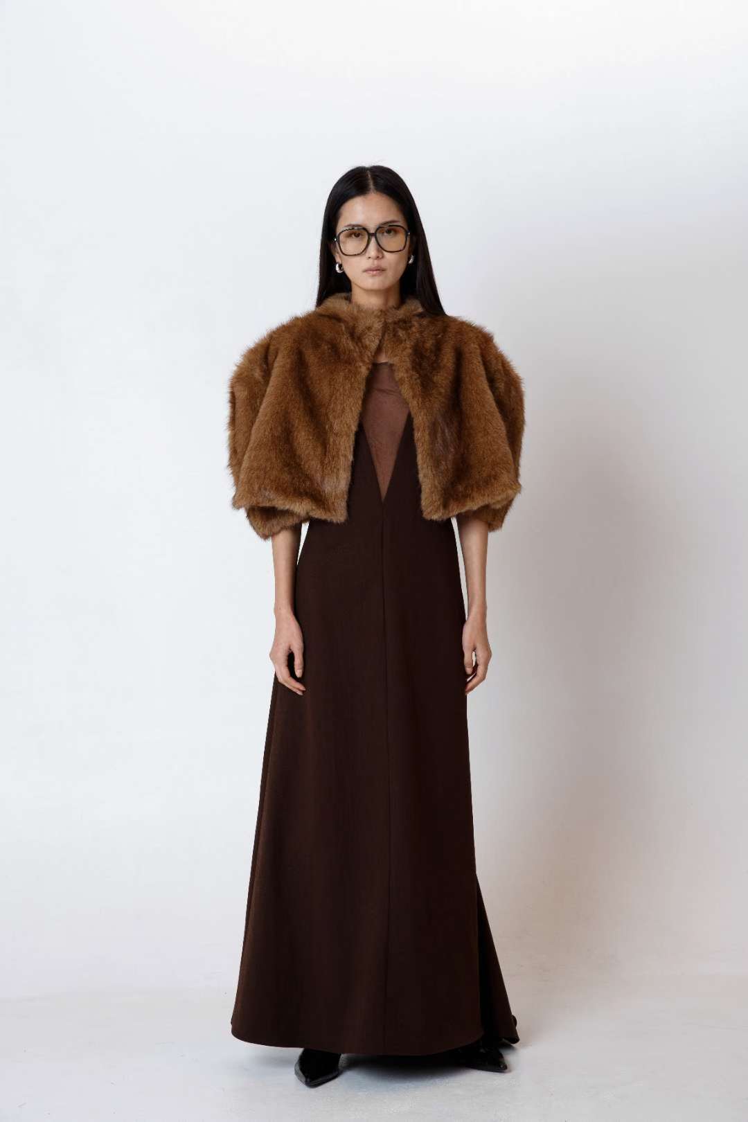 (ONE BY TWO) 25FW-4-10 FUR SHORT CAPE : BROWN