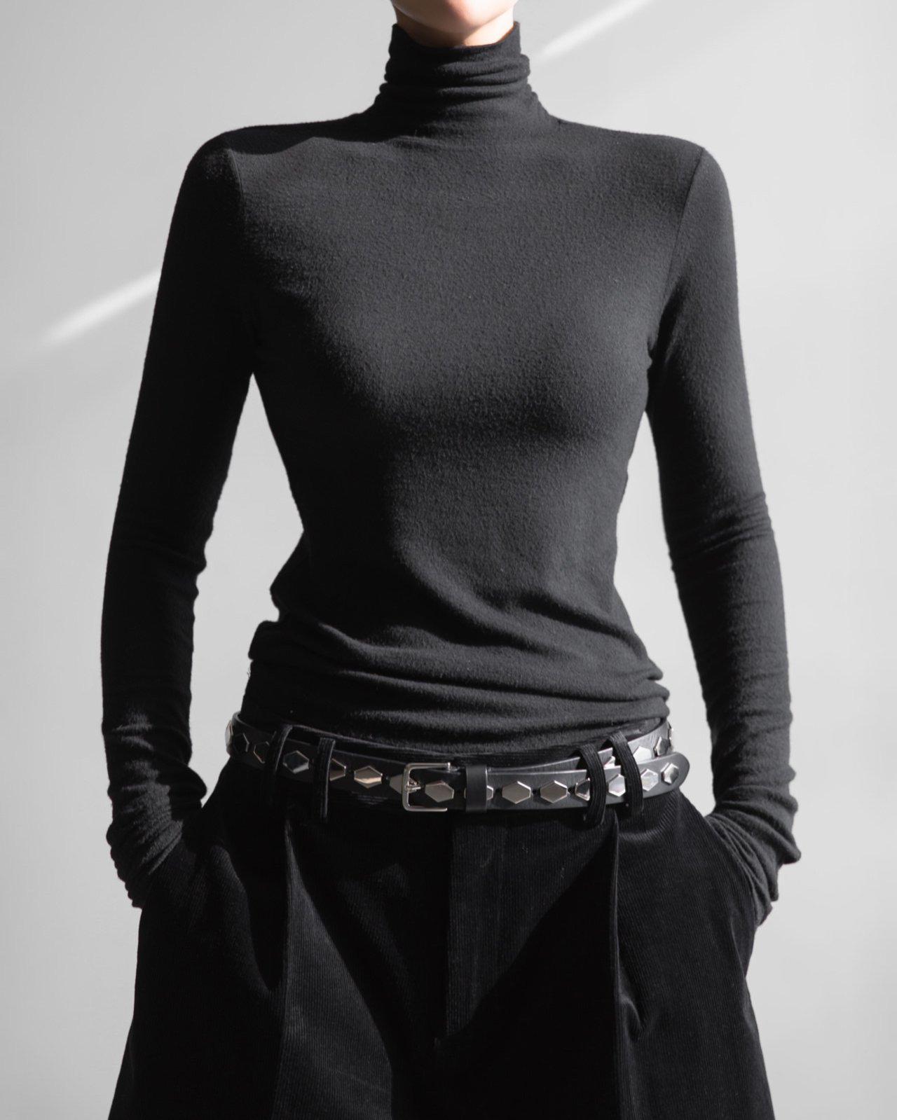 (PAPER MOON) SOFT WARM TEXTURE CLASSIC TURTLENECK T : CHARCOAL
