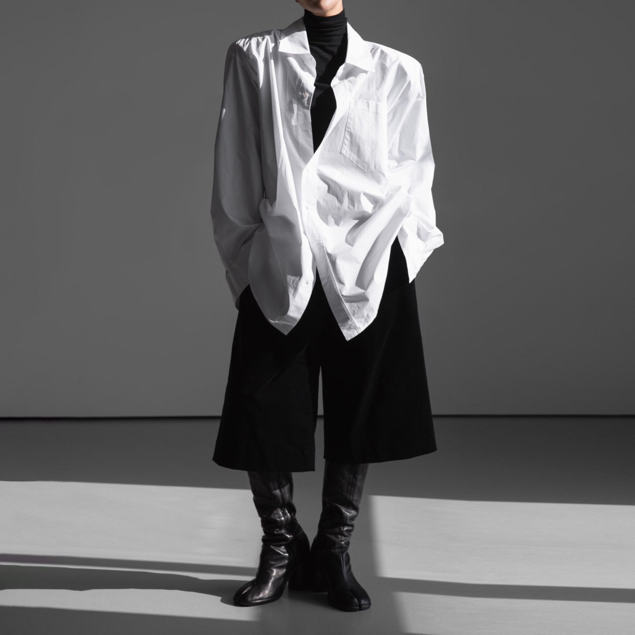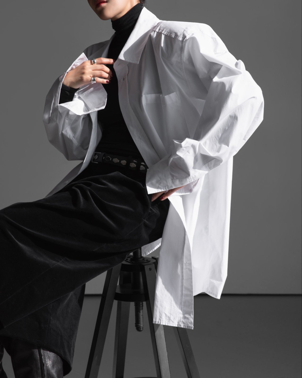 (PAPER MOON) MAXI OVERSIZED PADDED SHOULDER COTTON BUTTON DOWN SHIRT : WHITE