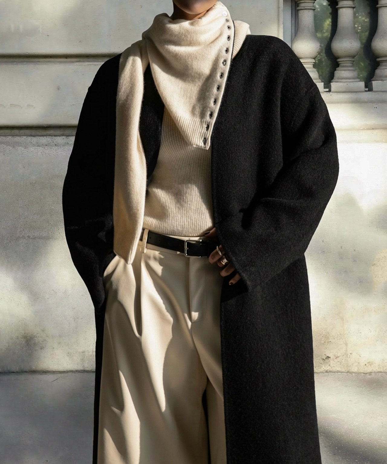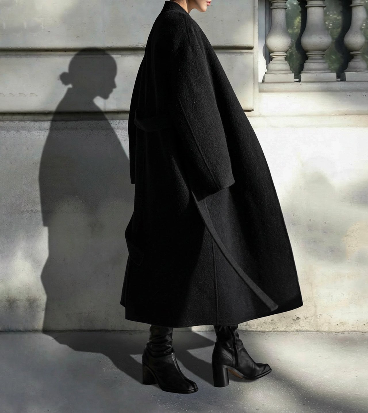 (PAPER MOON) LUX SURI ALPACA FUZZY HAND MADE ROBE COAT : BLACK