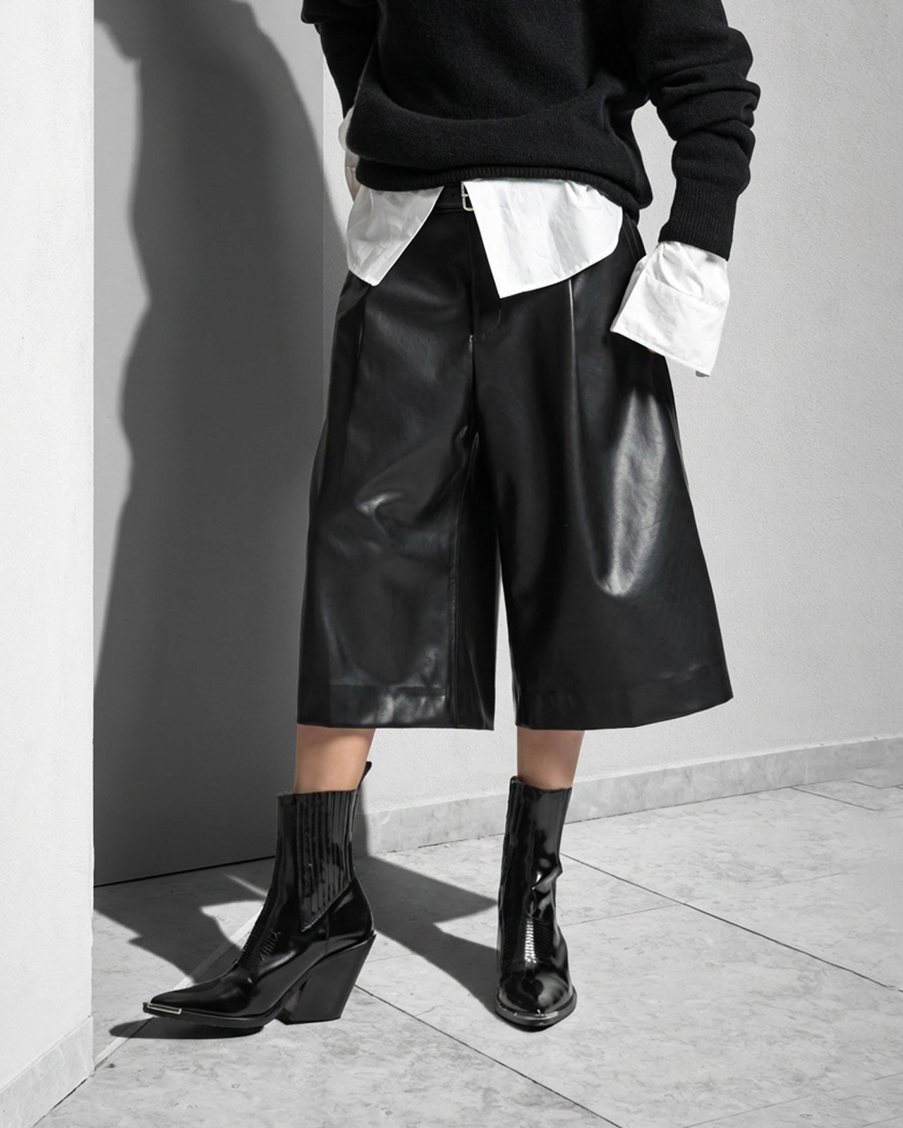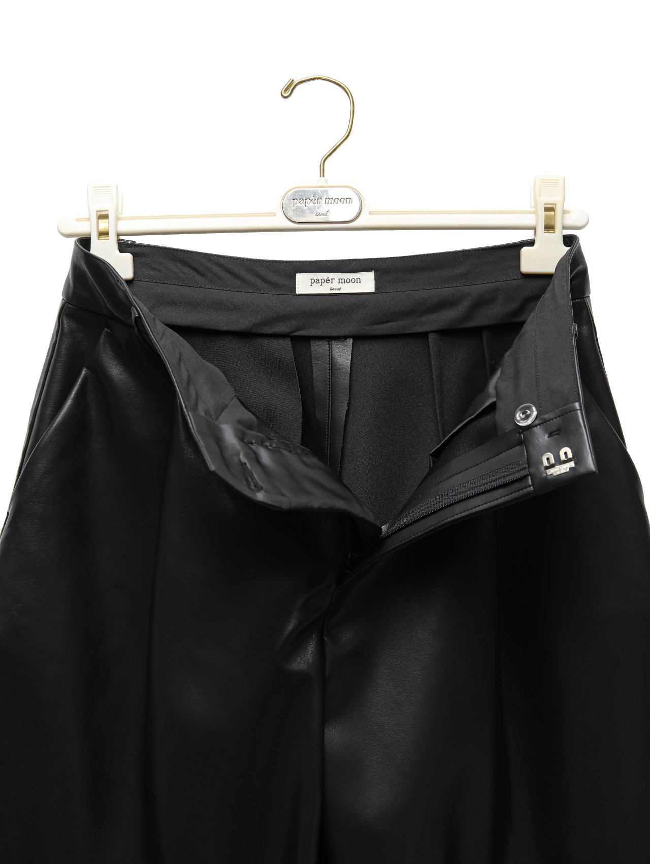 (PAPER MOON) CLASSIC WIDE FIT SHINY LEATHER BERMUDA TROUSERS : BLACK