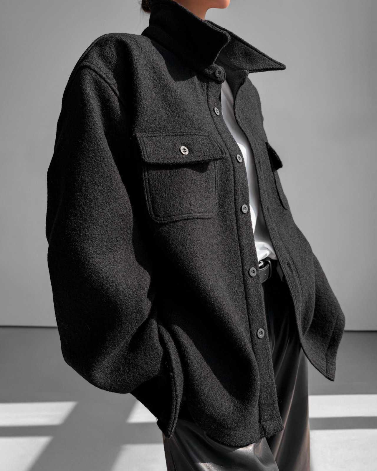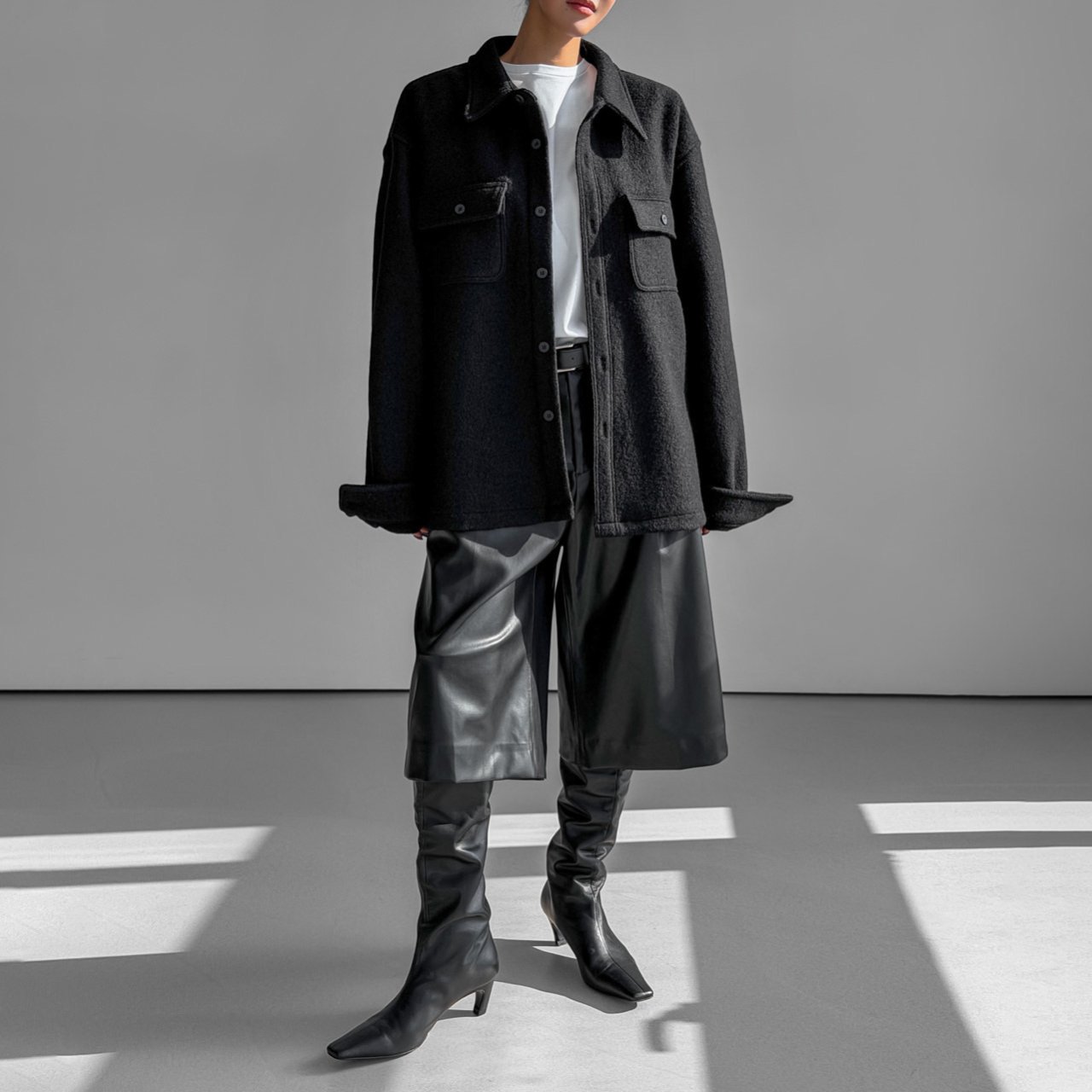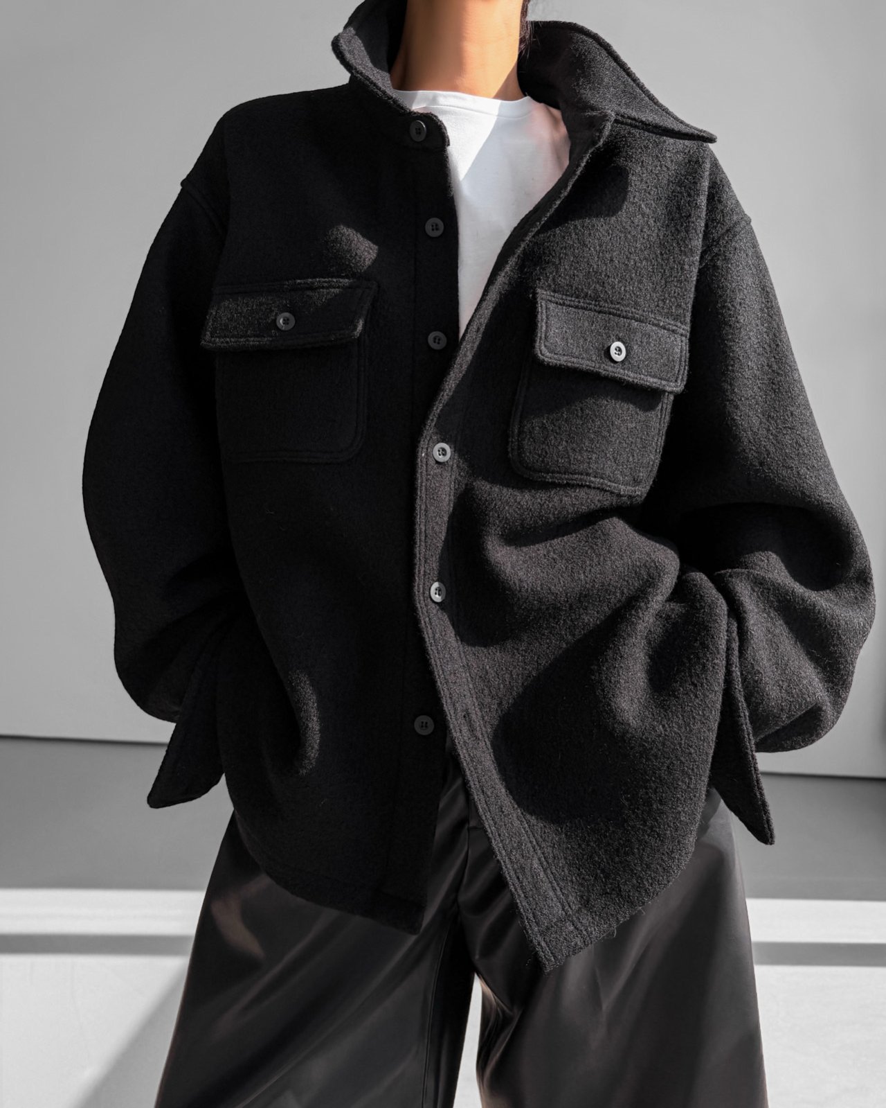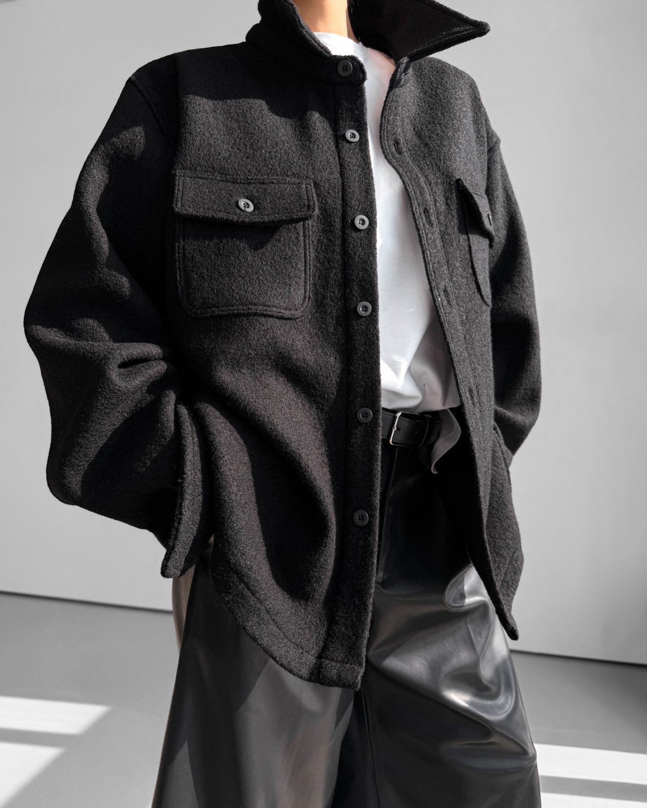 (PAPER MOON) CASENTINO WOOL OVERSIZED POCKET BUTTON DOWN SHIRT : BLACK