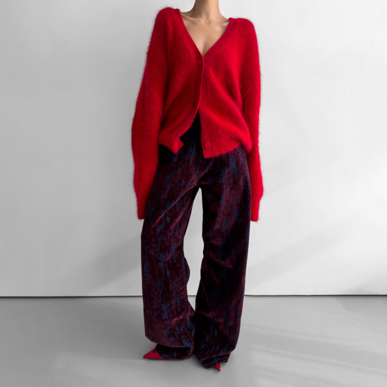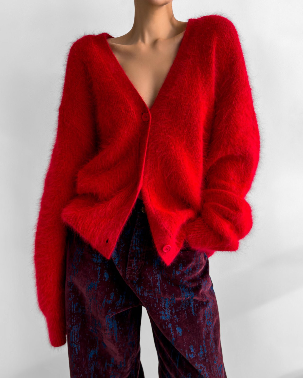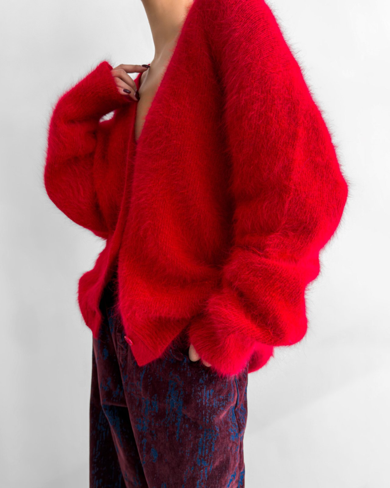 (PAPER MOON) LUX MINK ANGORA OVERSIZED KNIT CARDIGAN : RED