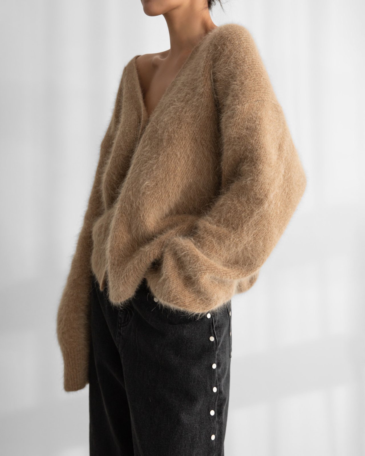 (PAPER MOON) LUX MINK ANGORA OVERSIZED KNIT CARDIGAN : CAMEL BEIGE
