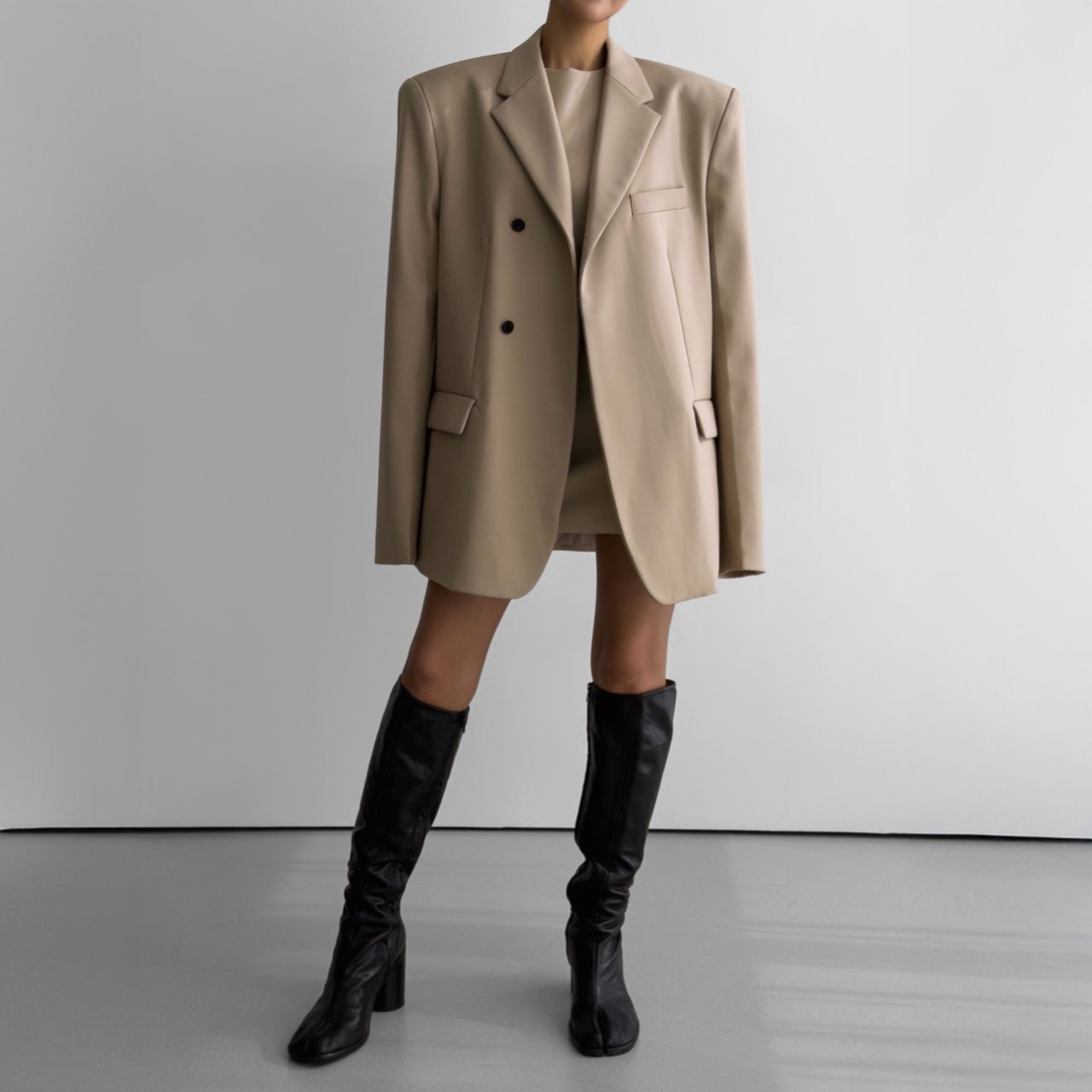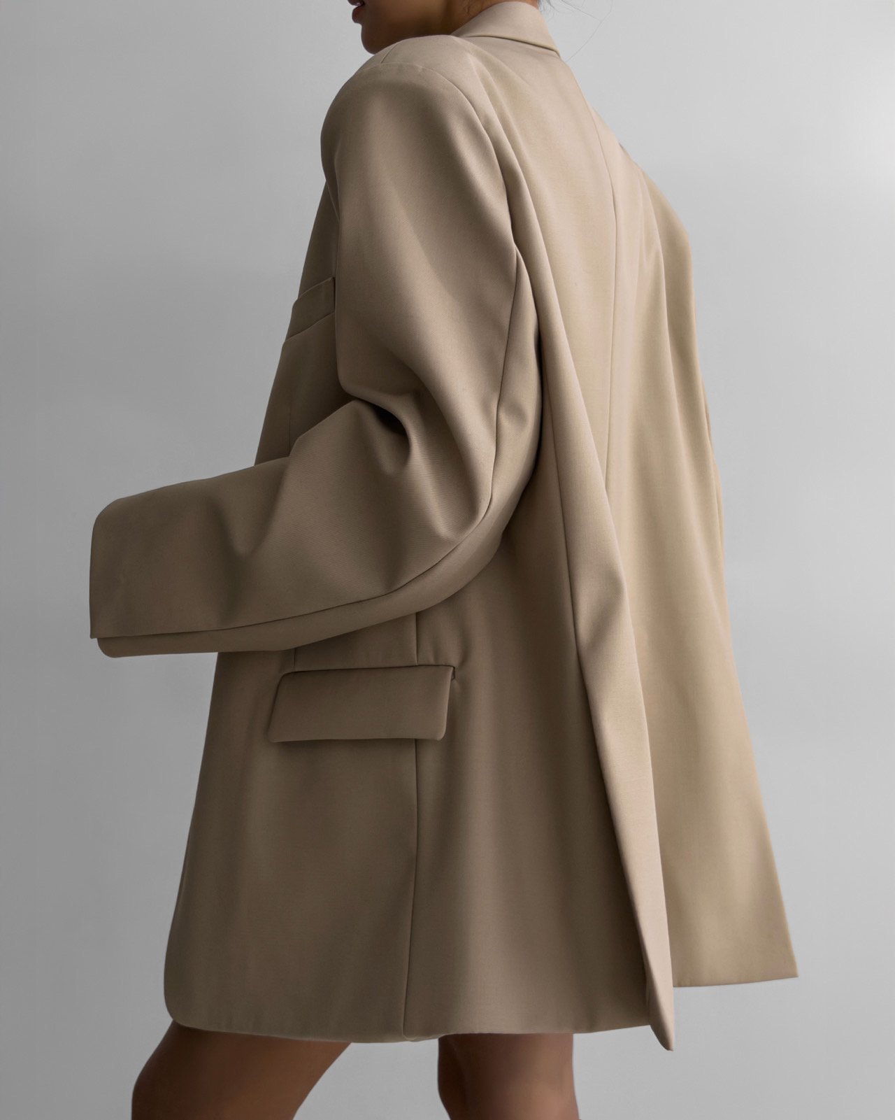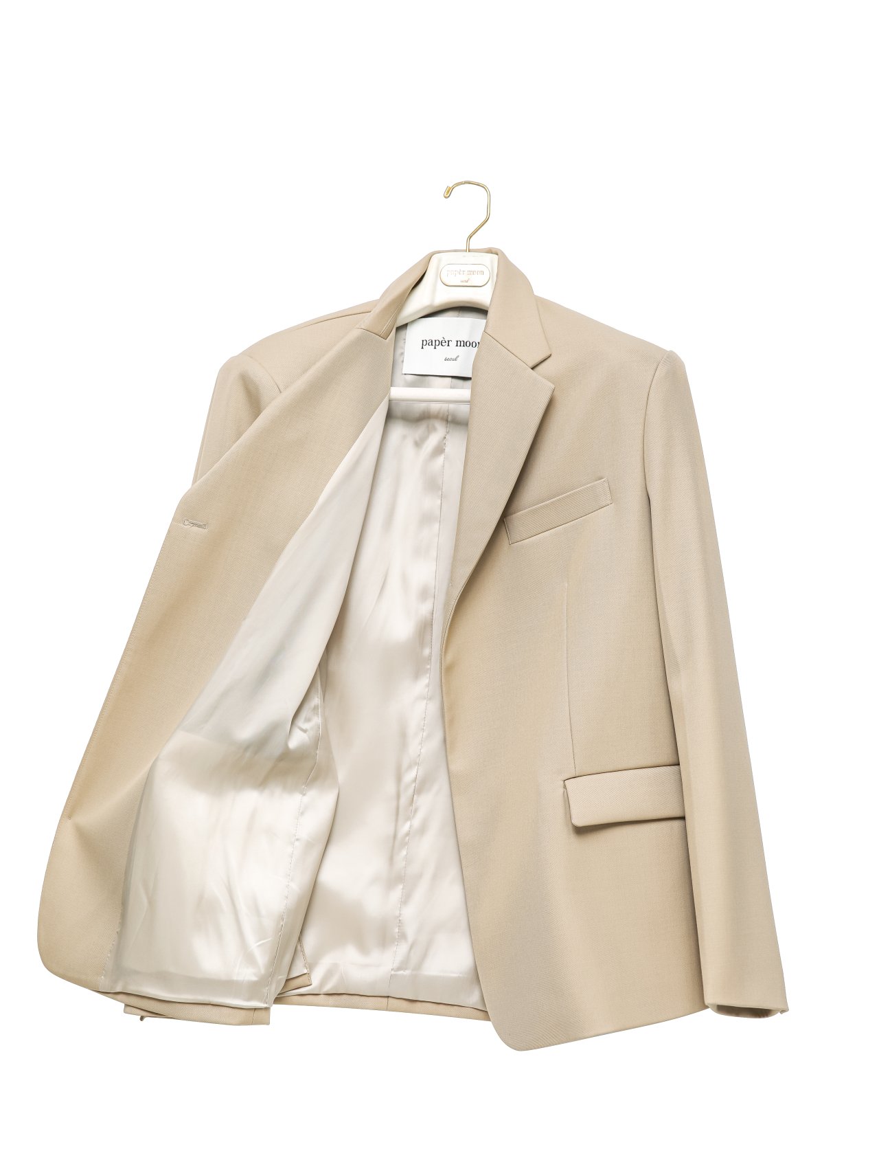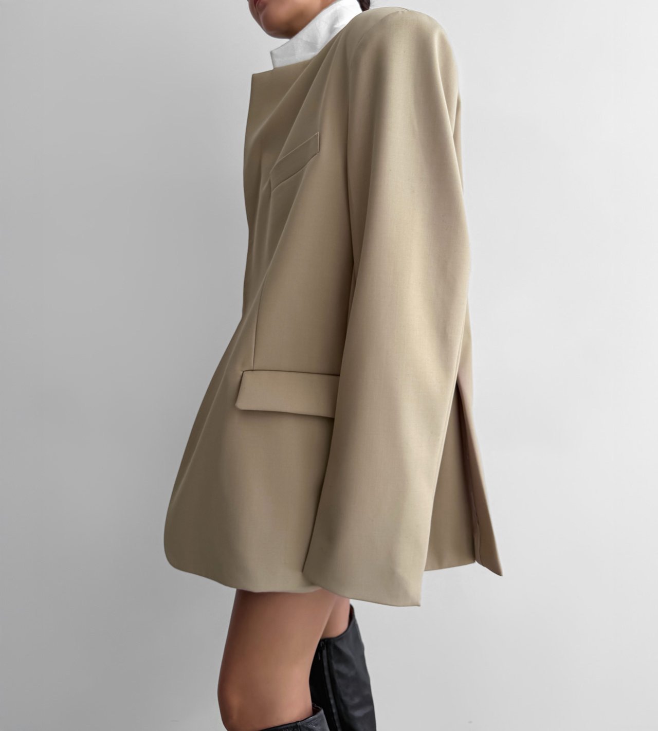 (PAPER MOON) ASYMMETRY WRAP DETAIL OVERSIZED BLAZER : BEIGE