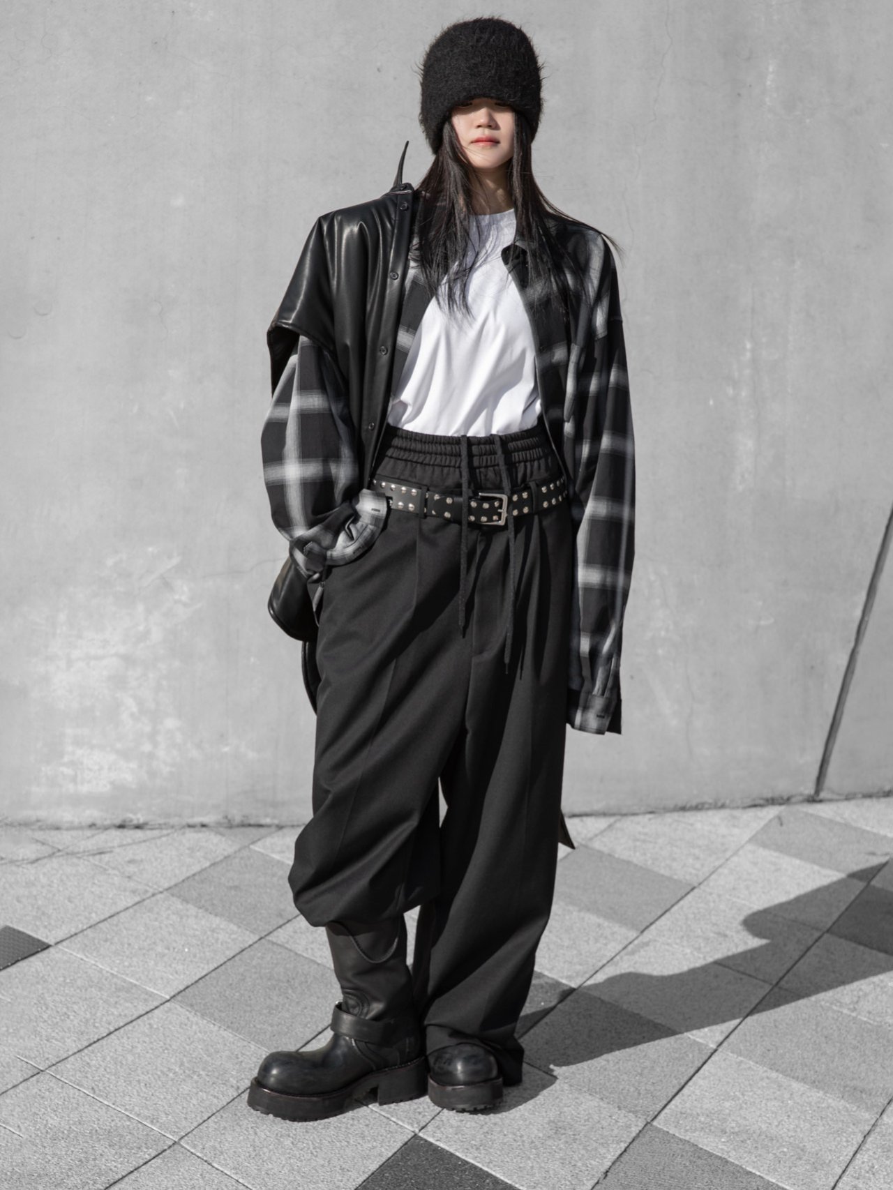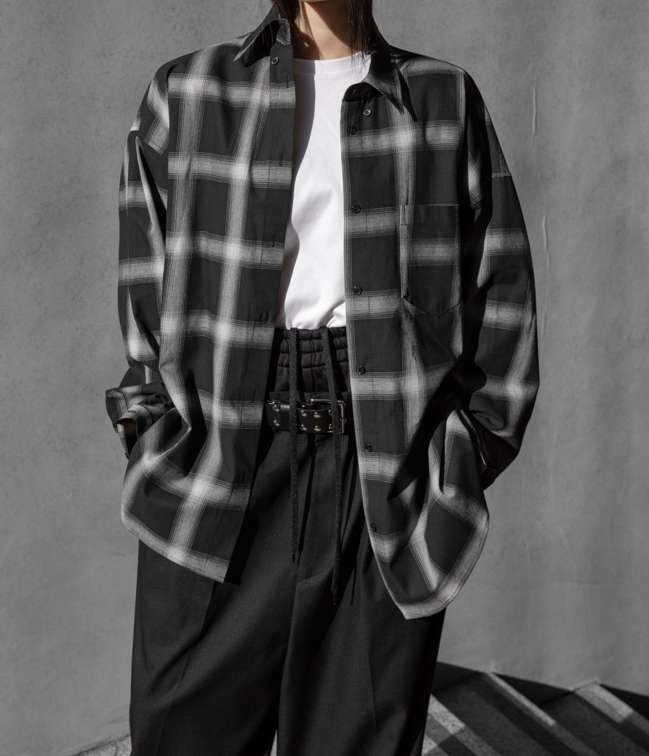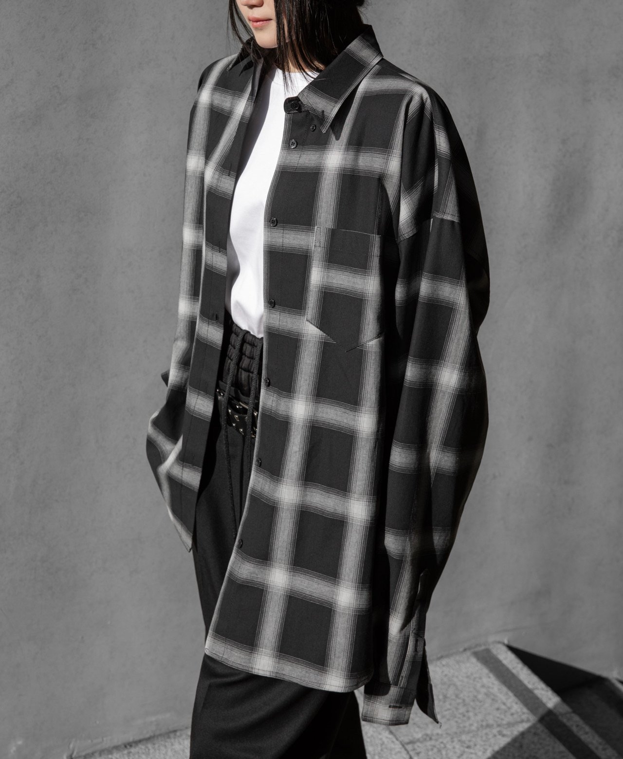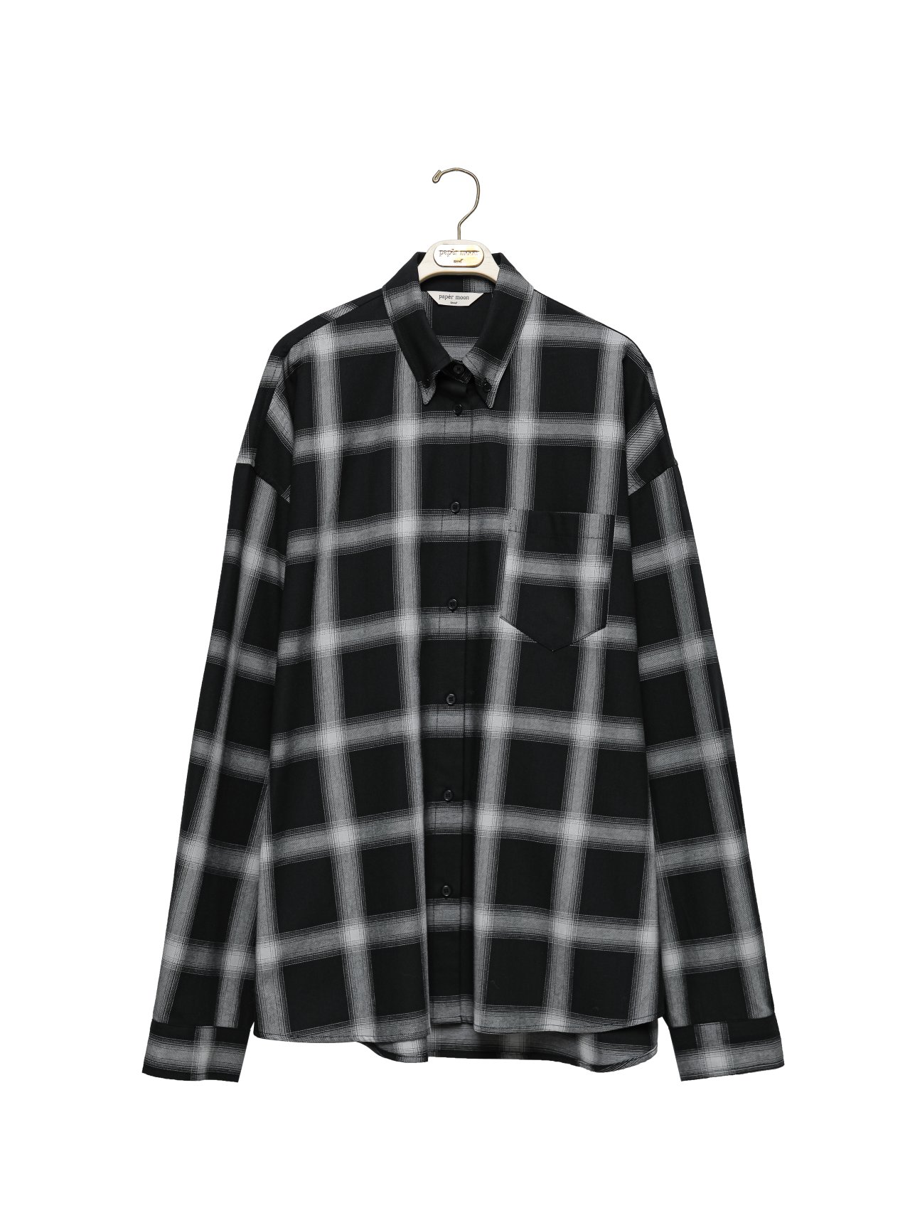 (PAPER MOON) OVERSIZED PLAID CHECK BUTTON DOWN SHIRT : BLACK