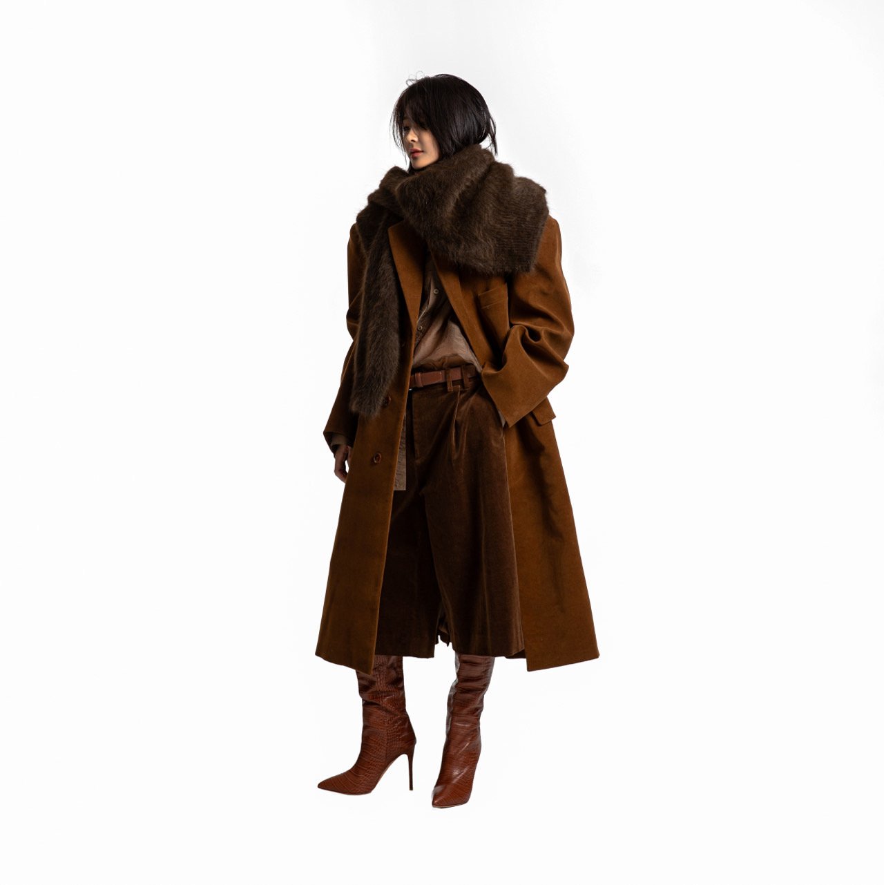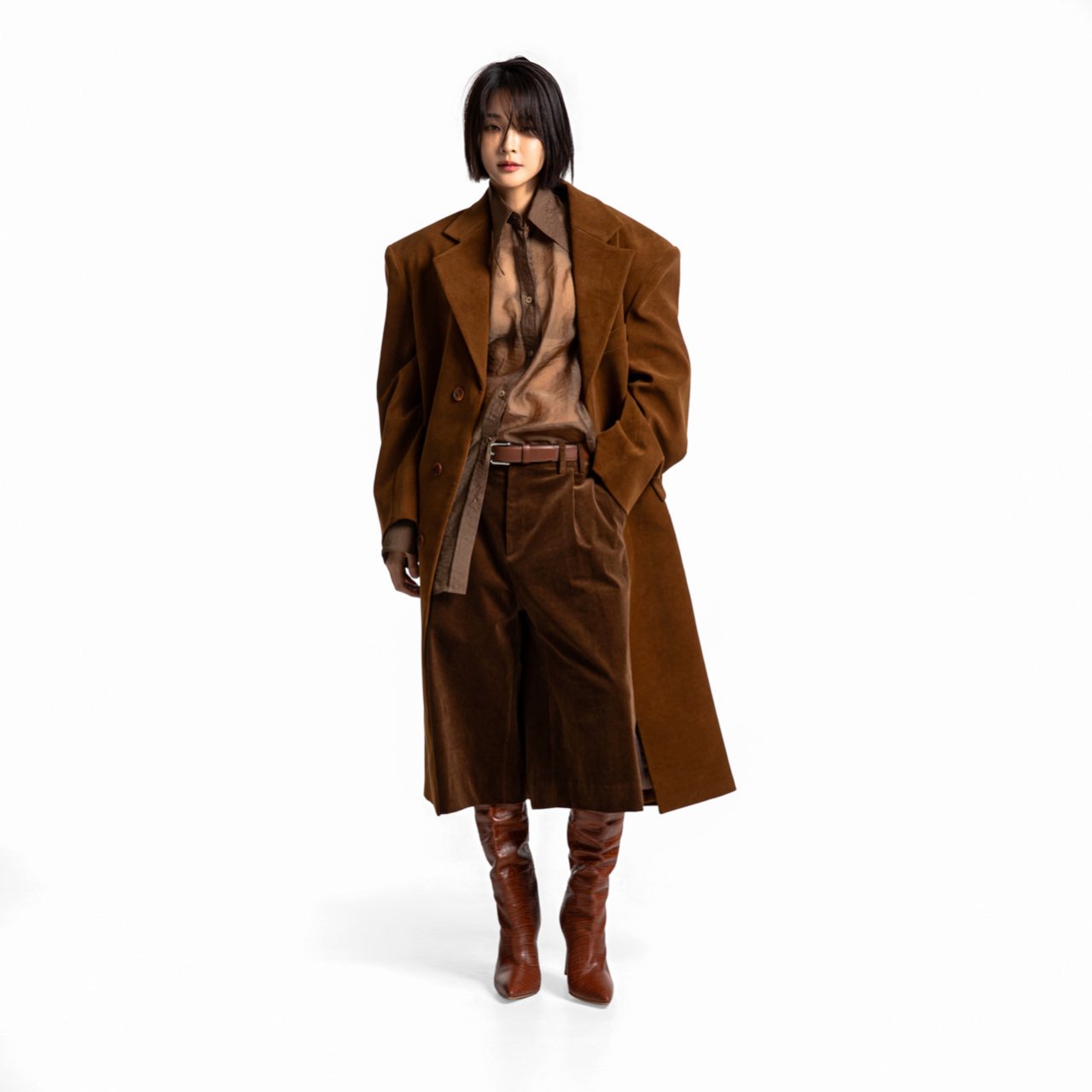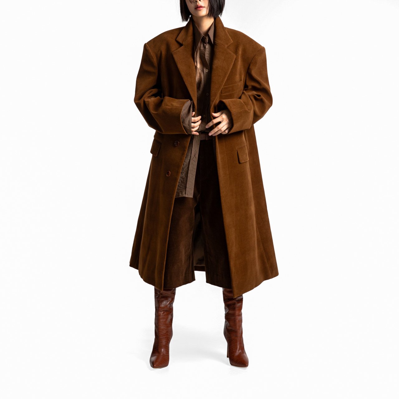 (PAPER MOON) OVERSIZED HIDDEN BUTTON SINGLE DOBBY COAT : CAMEL