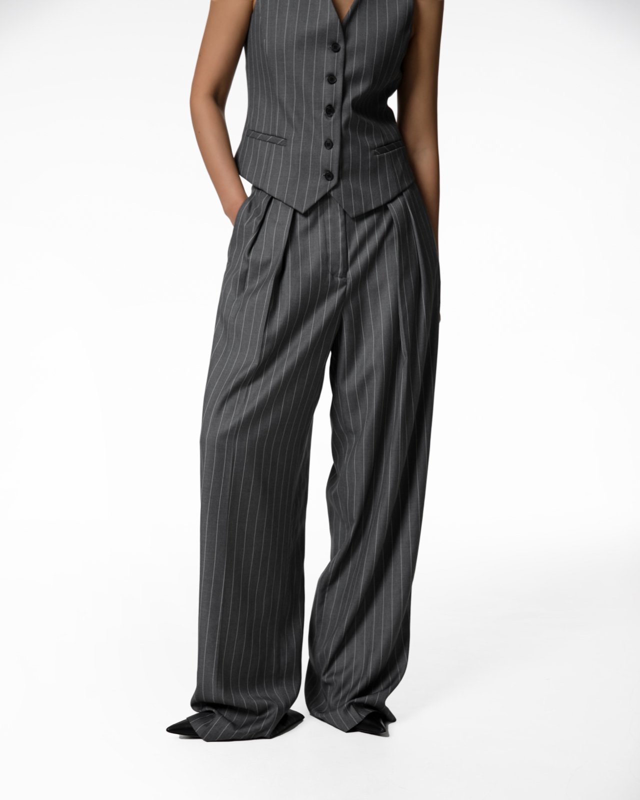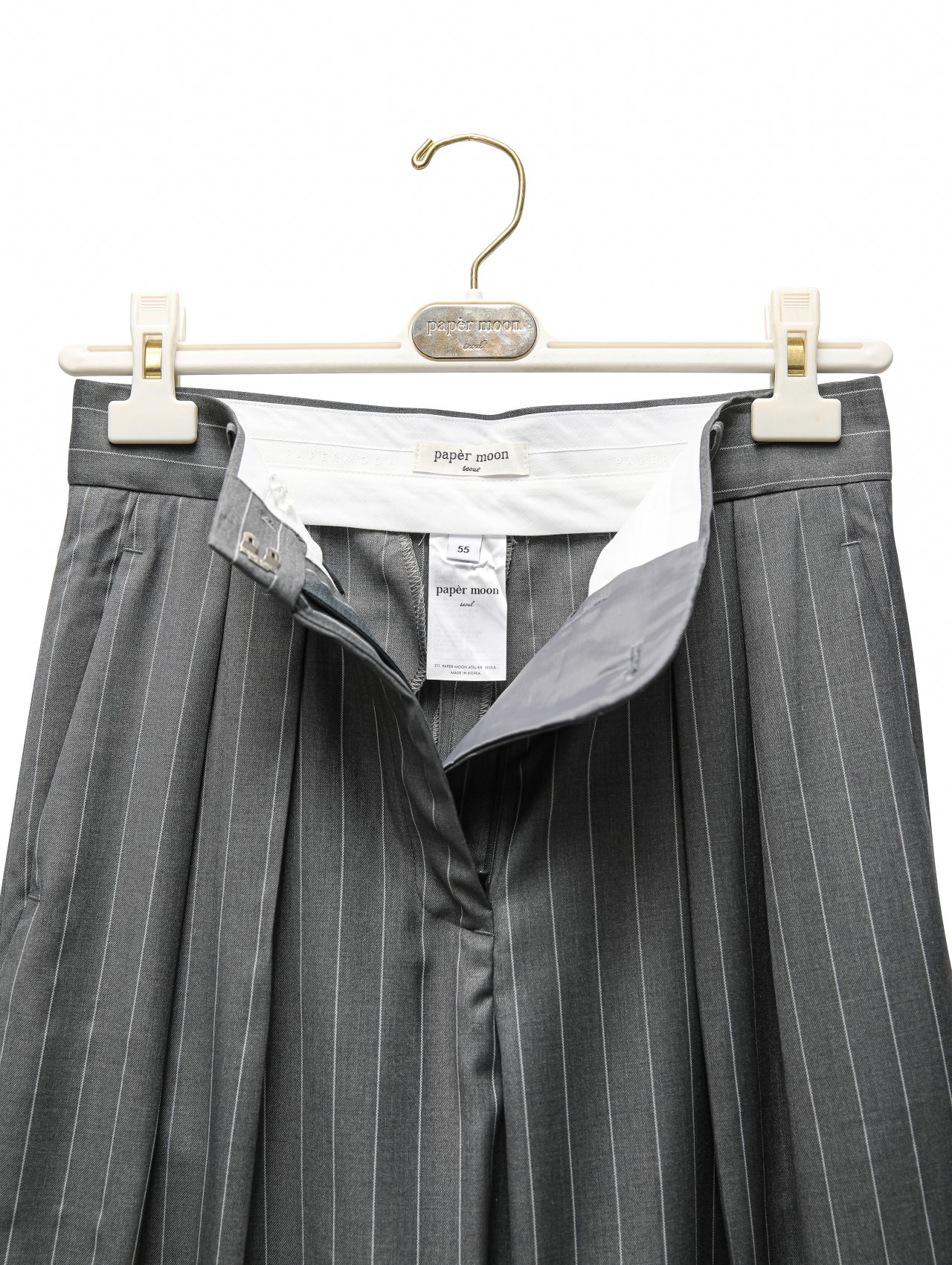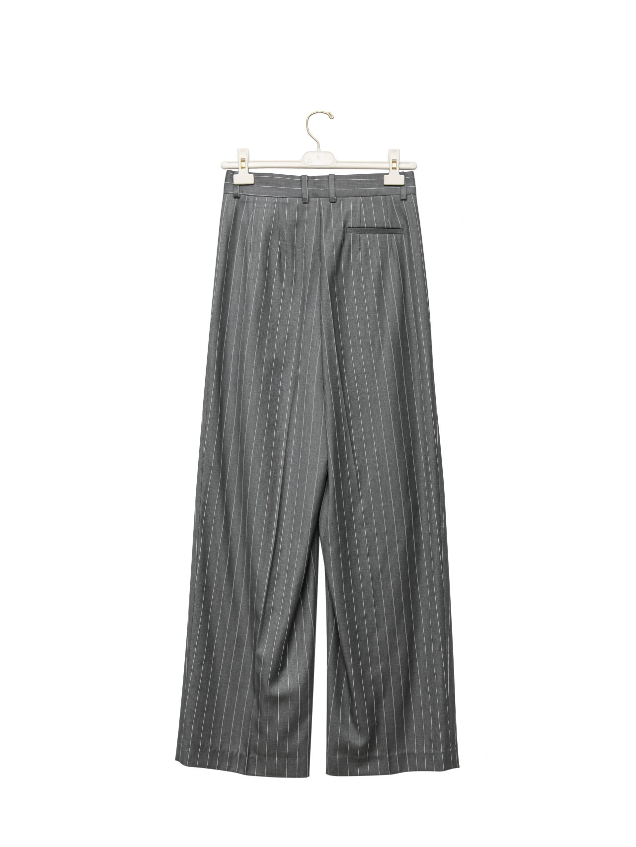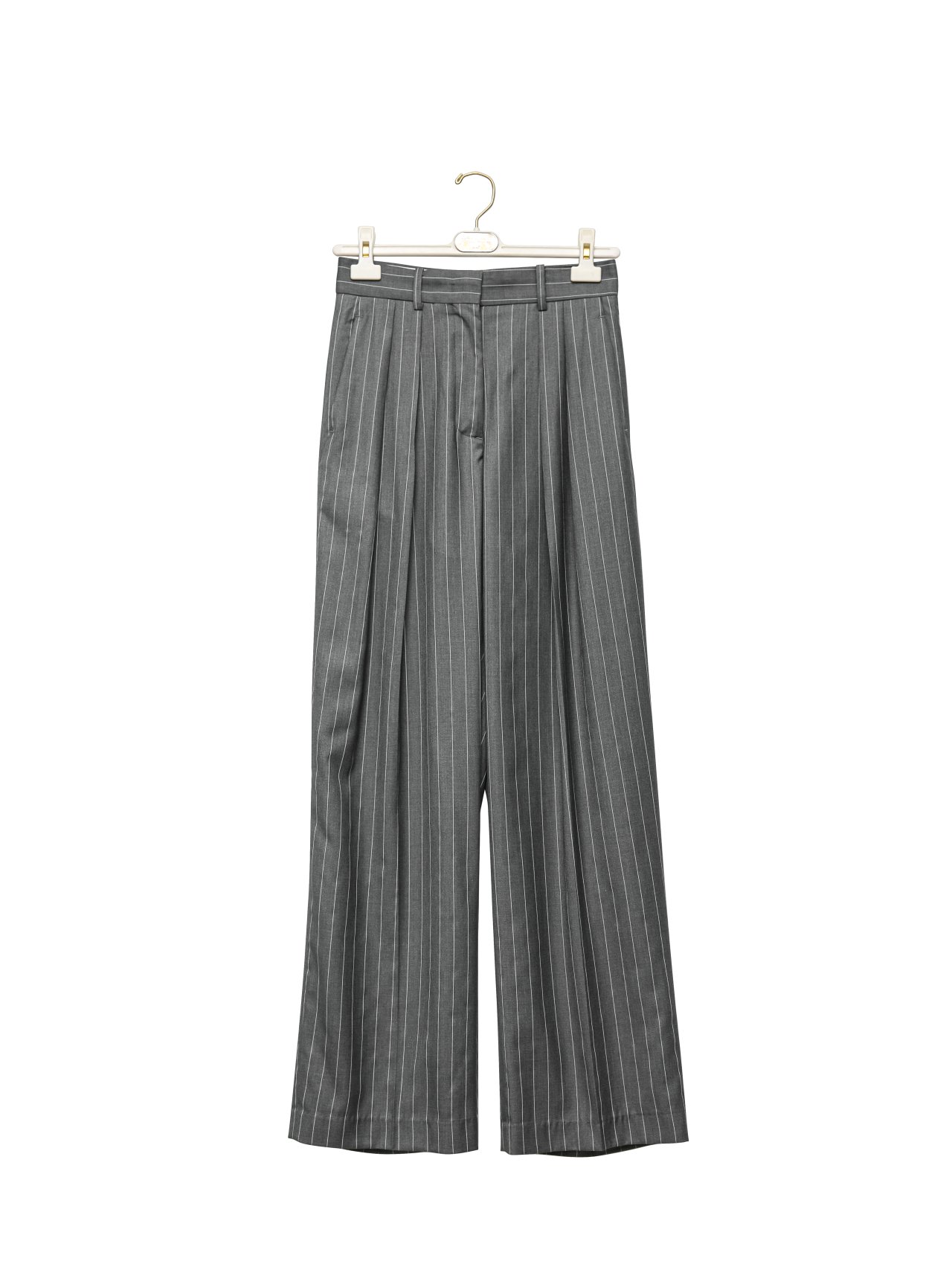 (PAPER MOON) WIDE PIN STRIPE SET UP SUIT PLEATED TROUSERS : GREY PIN STRIPE