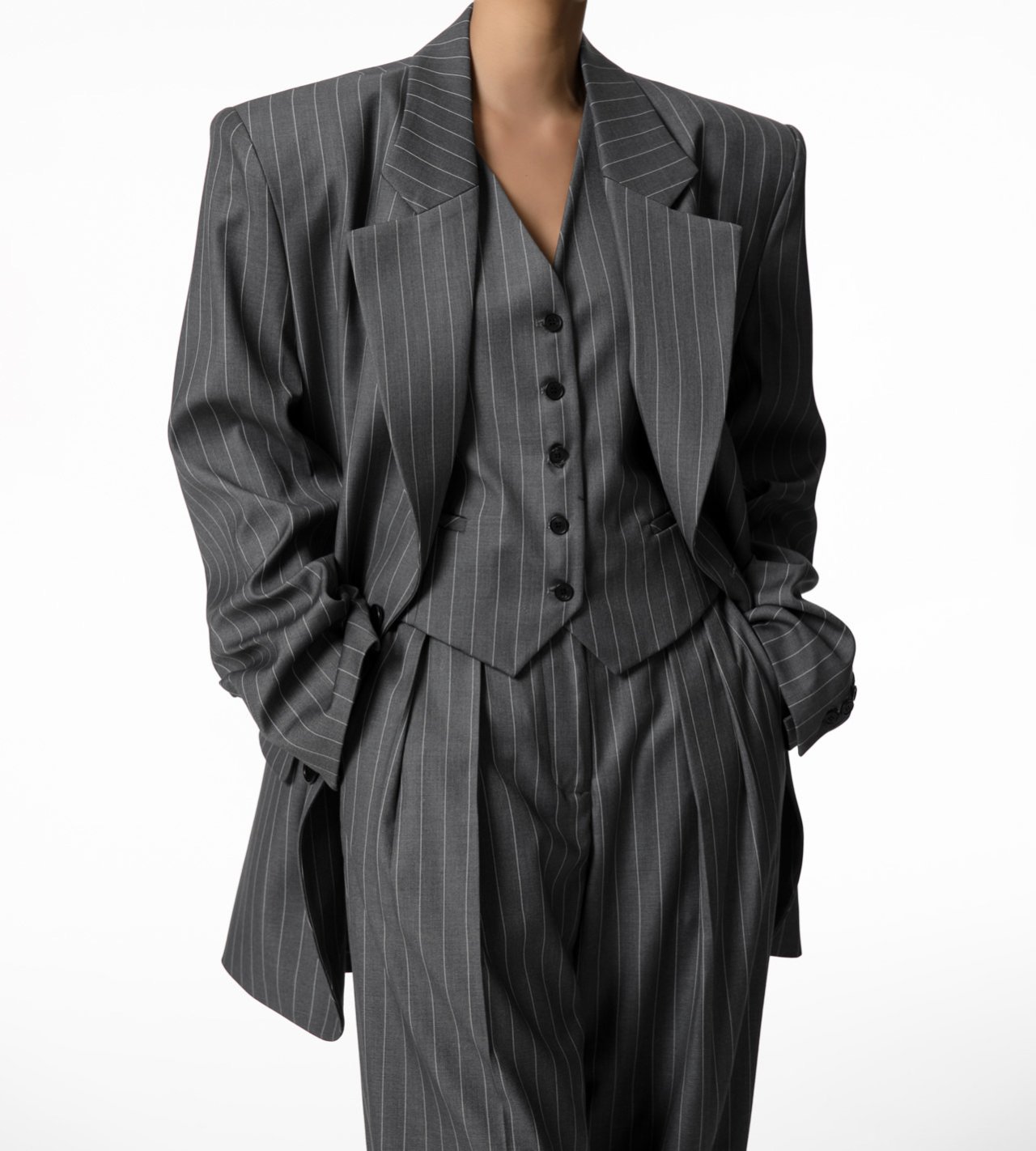 (PAPER MOON) WIDE PIN STRIPE SET UP SUIT SINGLE BLAZER : GREY PIN STRIPE