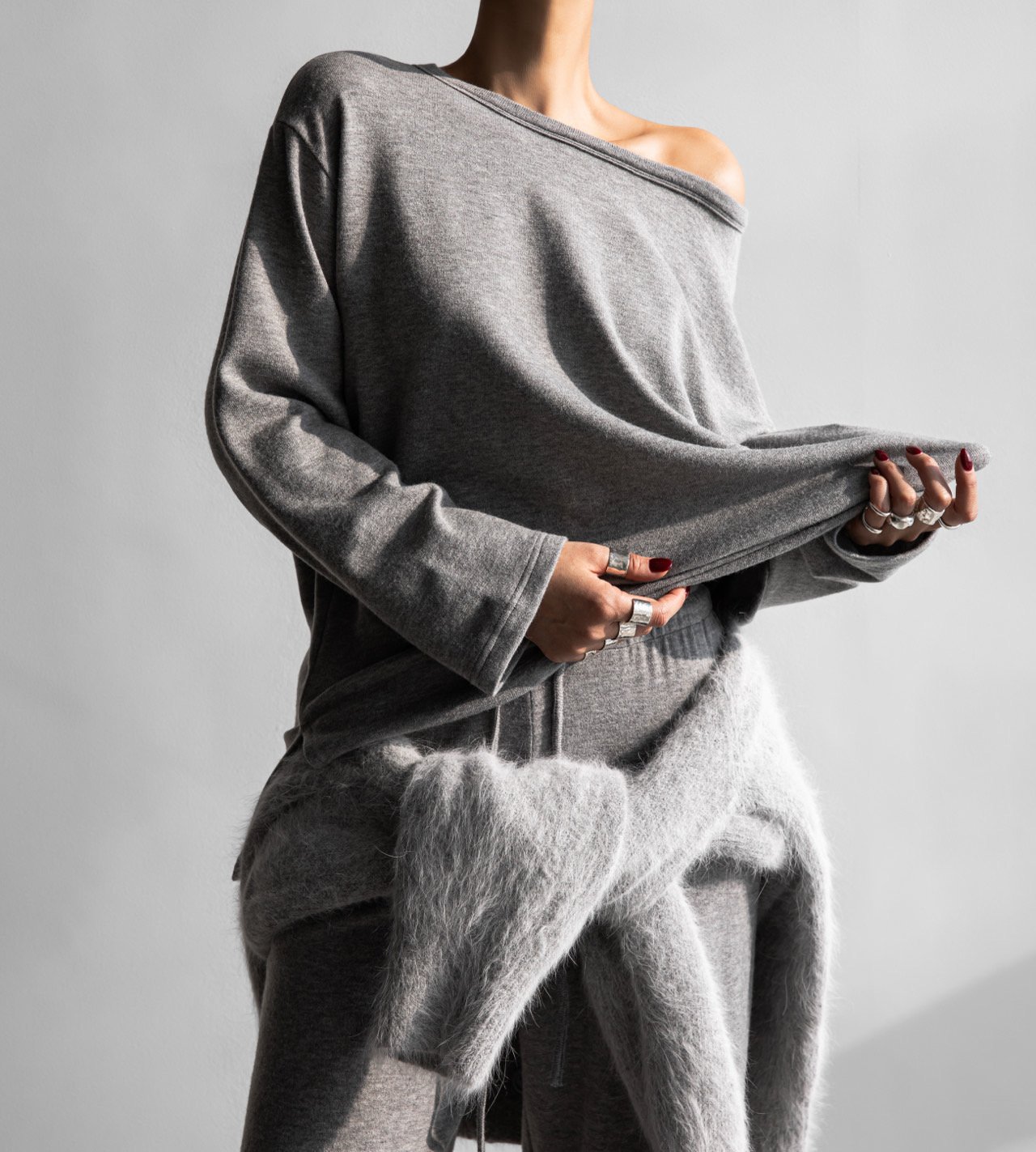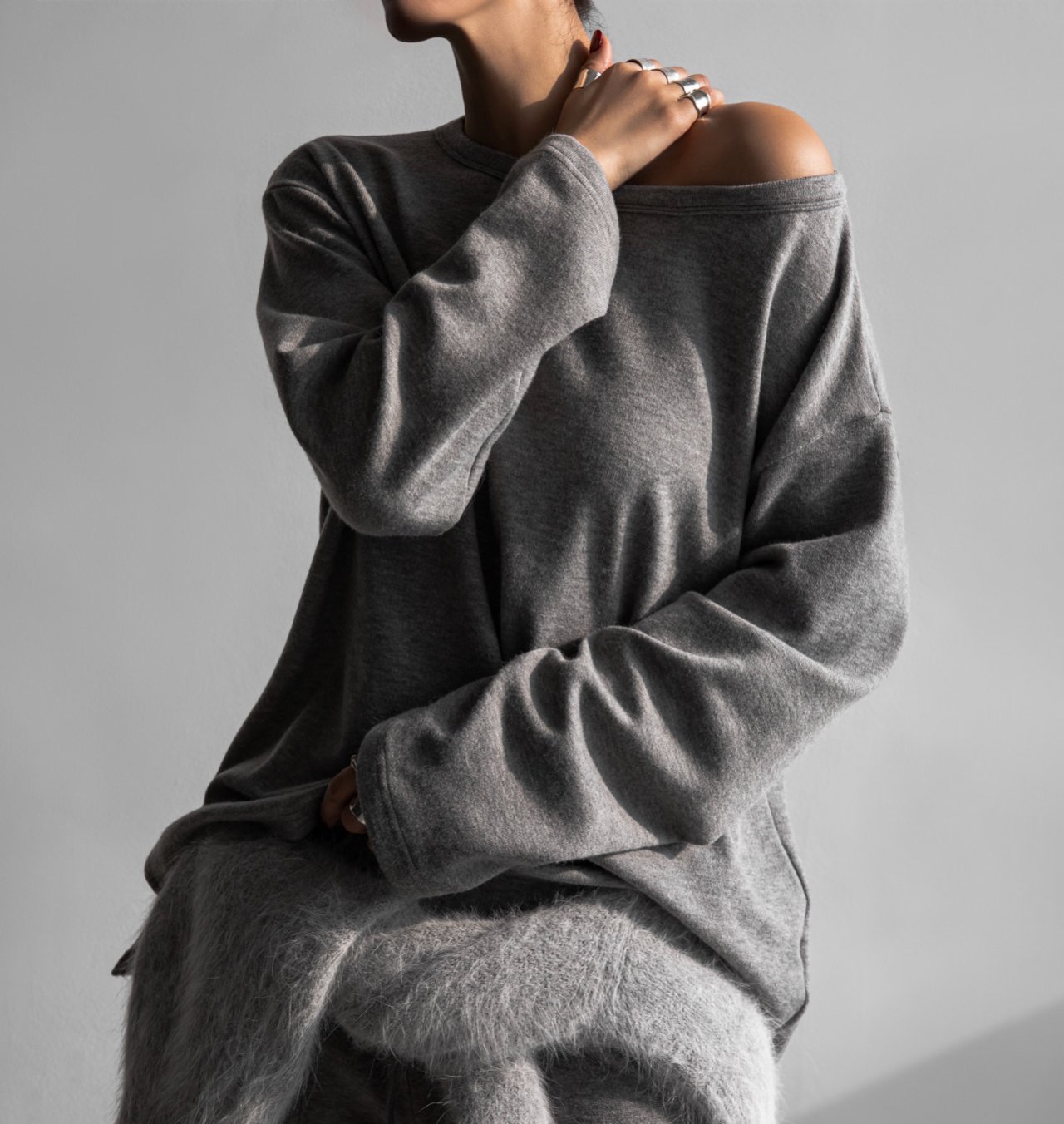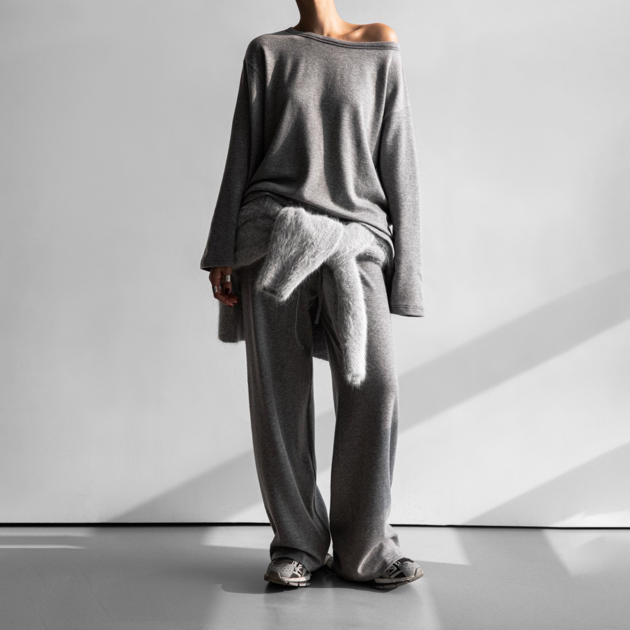 (PAPER MOON) SOFT LOUNGE SET - UP BOATNECK TEE : HEATHER GREY
