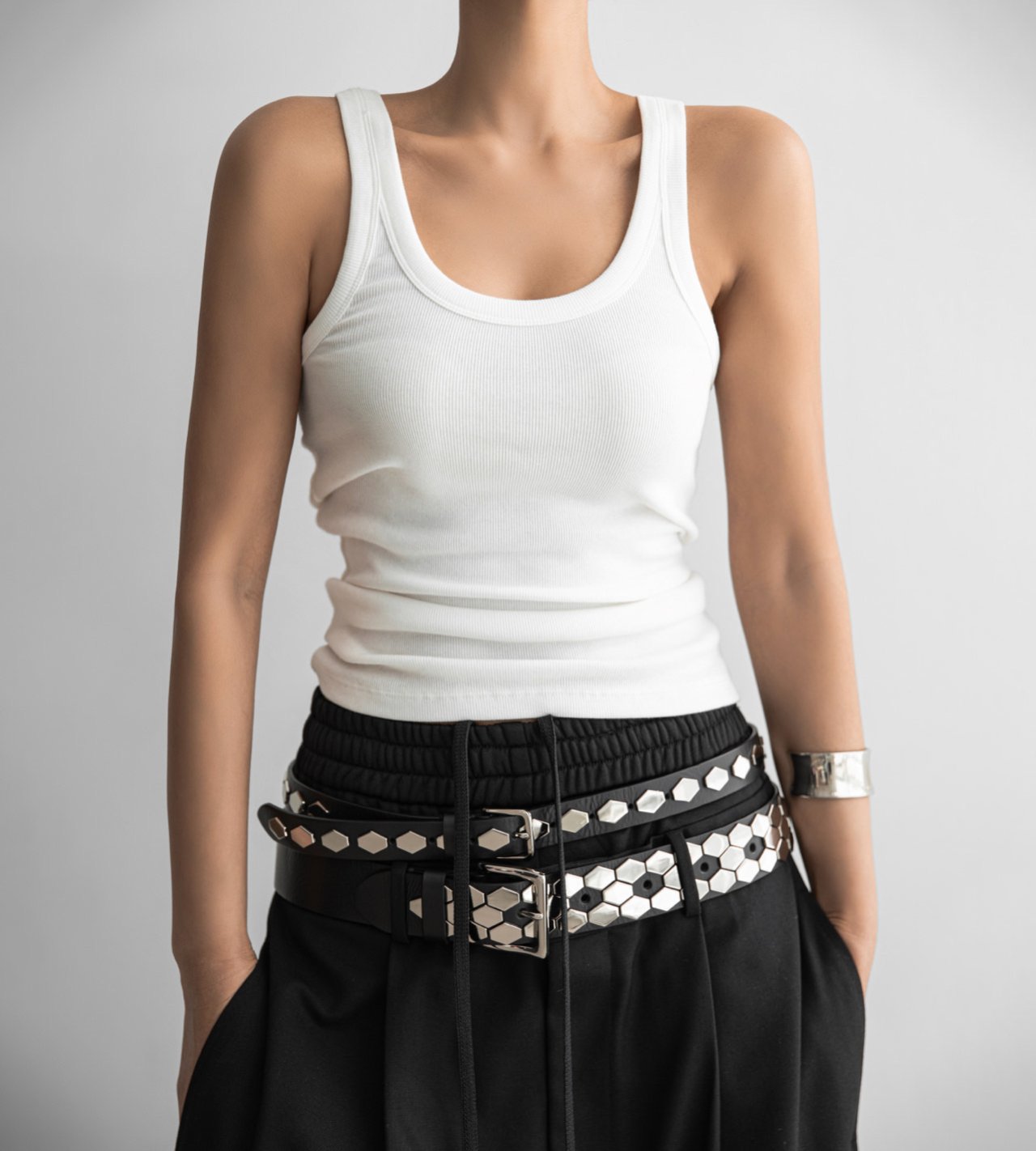 (PAPER MOON) SLEEVELESS RIB JERSEY TANK TOP : WHITE