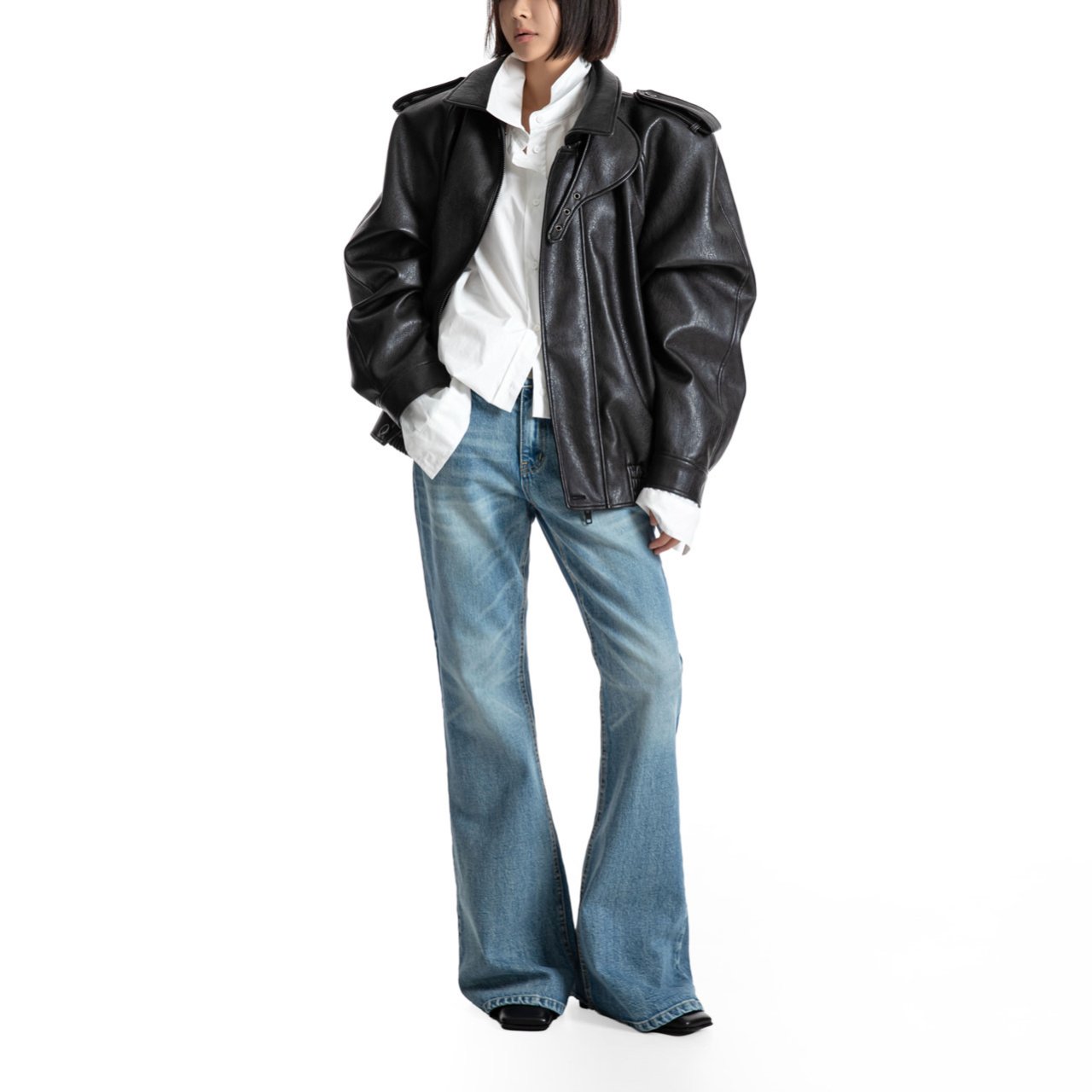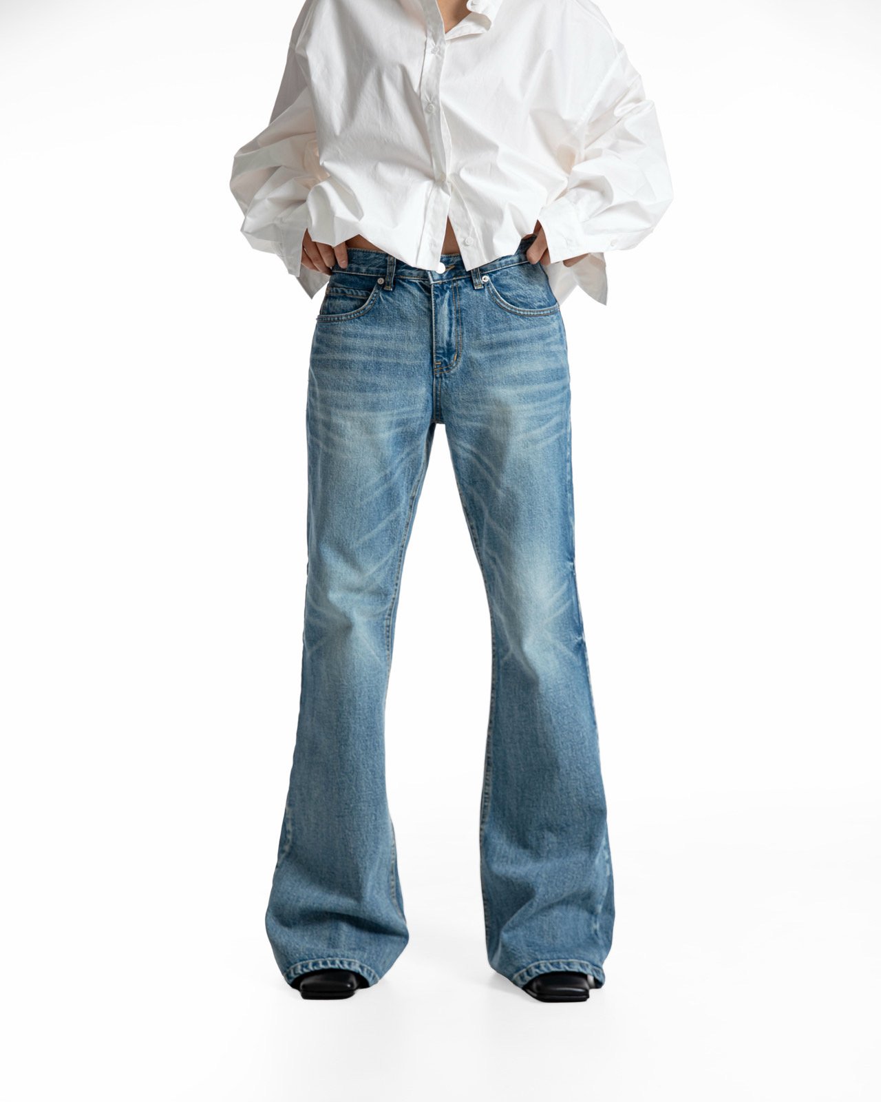 (PAPER MOON) CLASSIC FLARED DENIM BLUE JEANS : WASHED BLUE